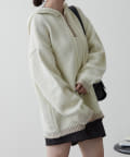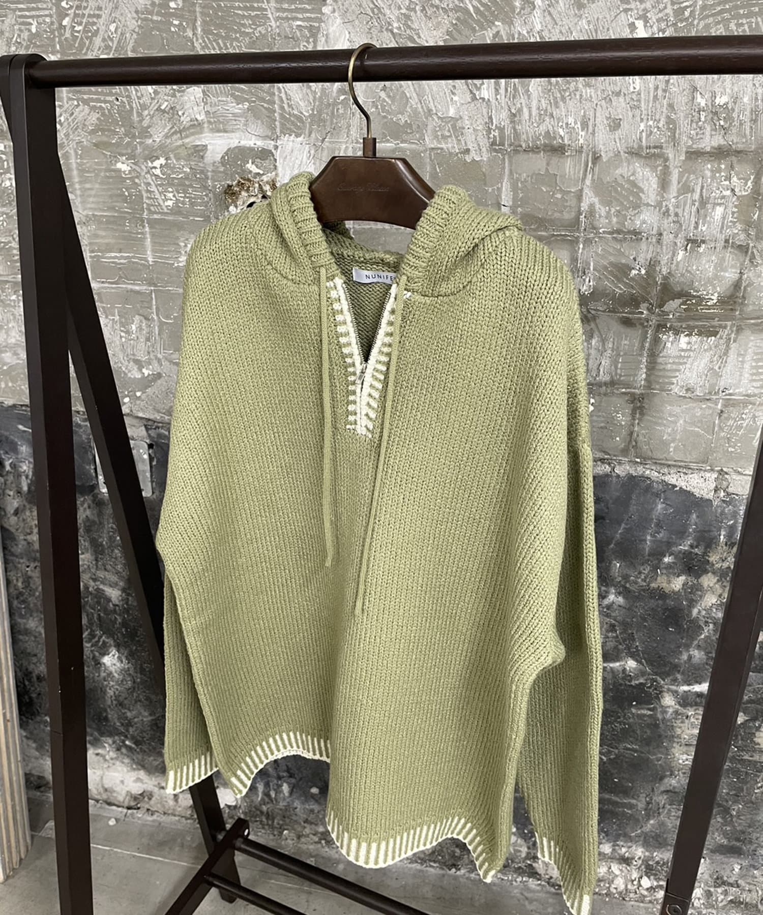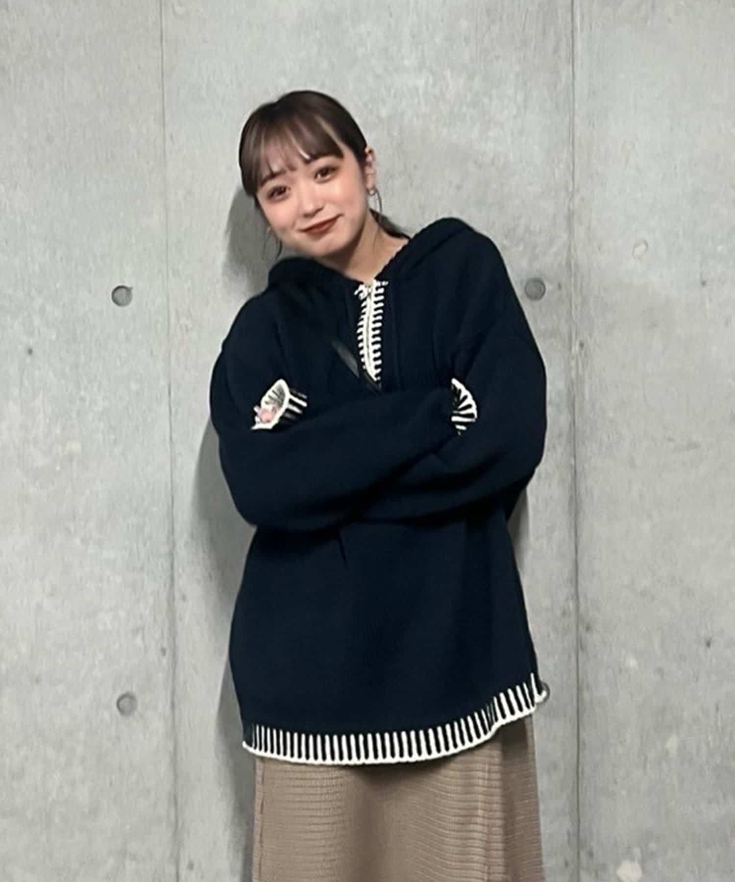 【NUNIFE】《さやべびコラボ》配色ステッチニットパーカー