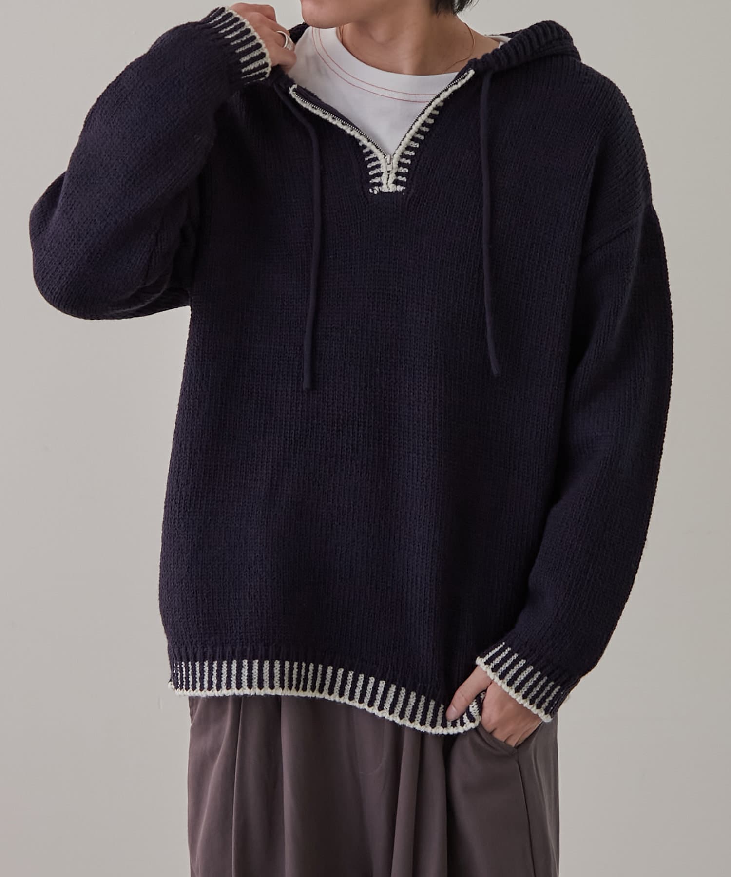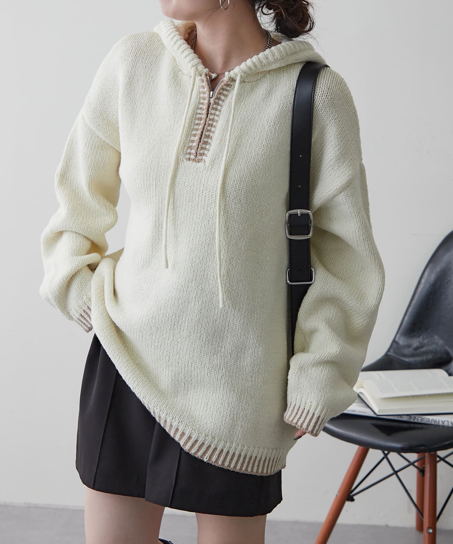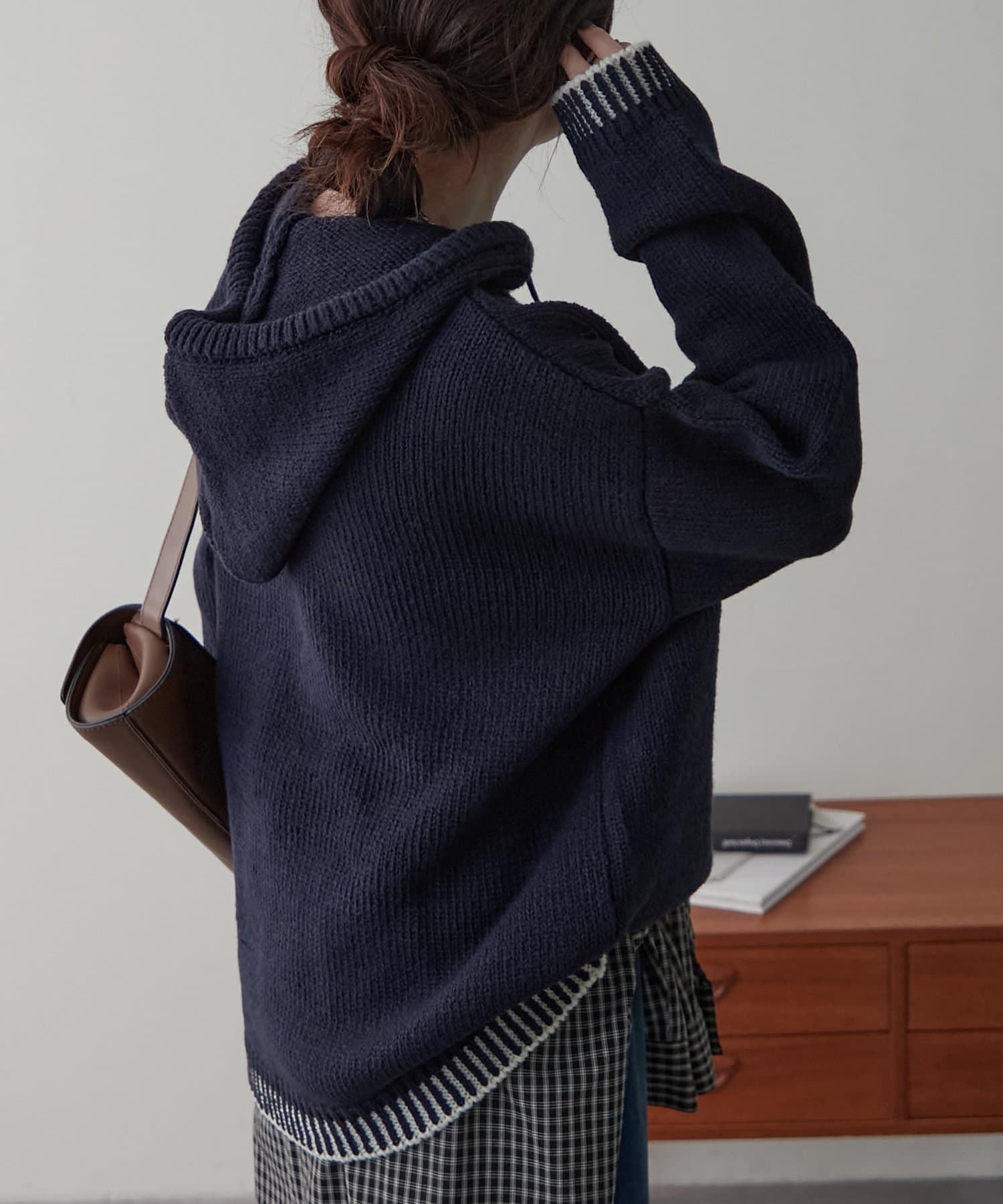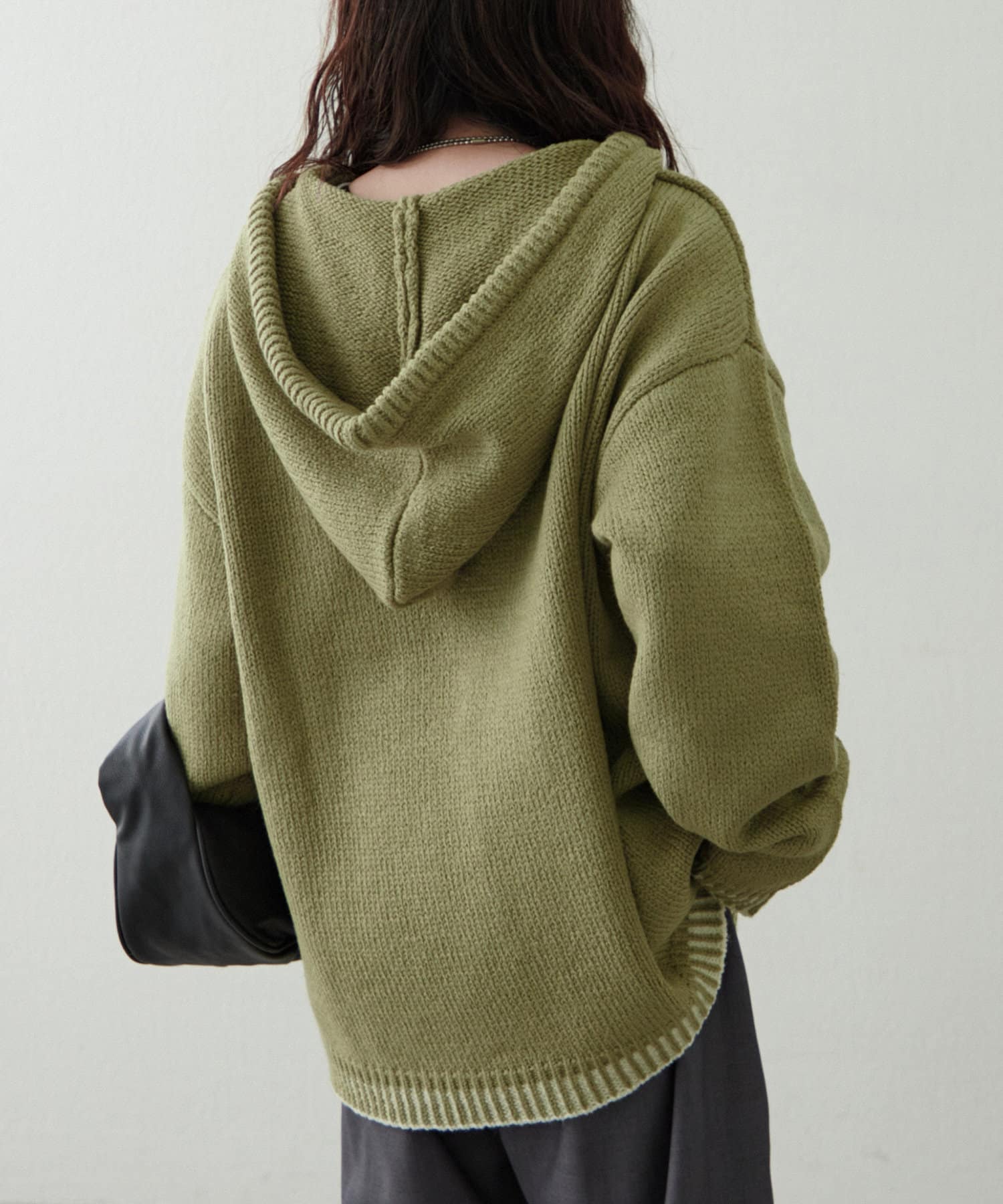 ・配色ステッチがコーデのアクセントになるニットパーカー