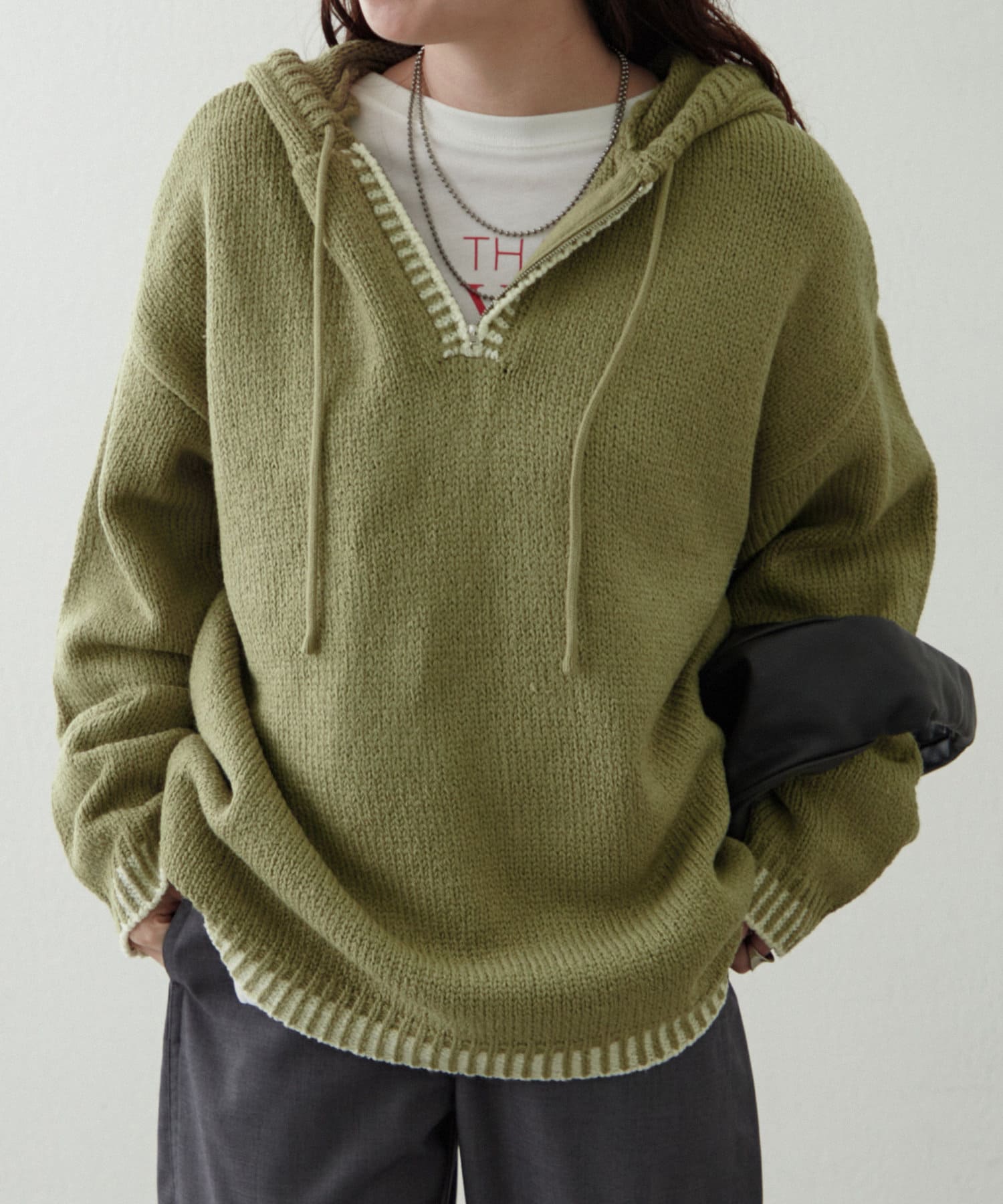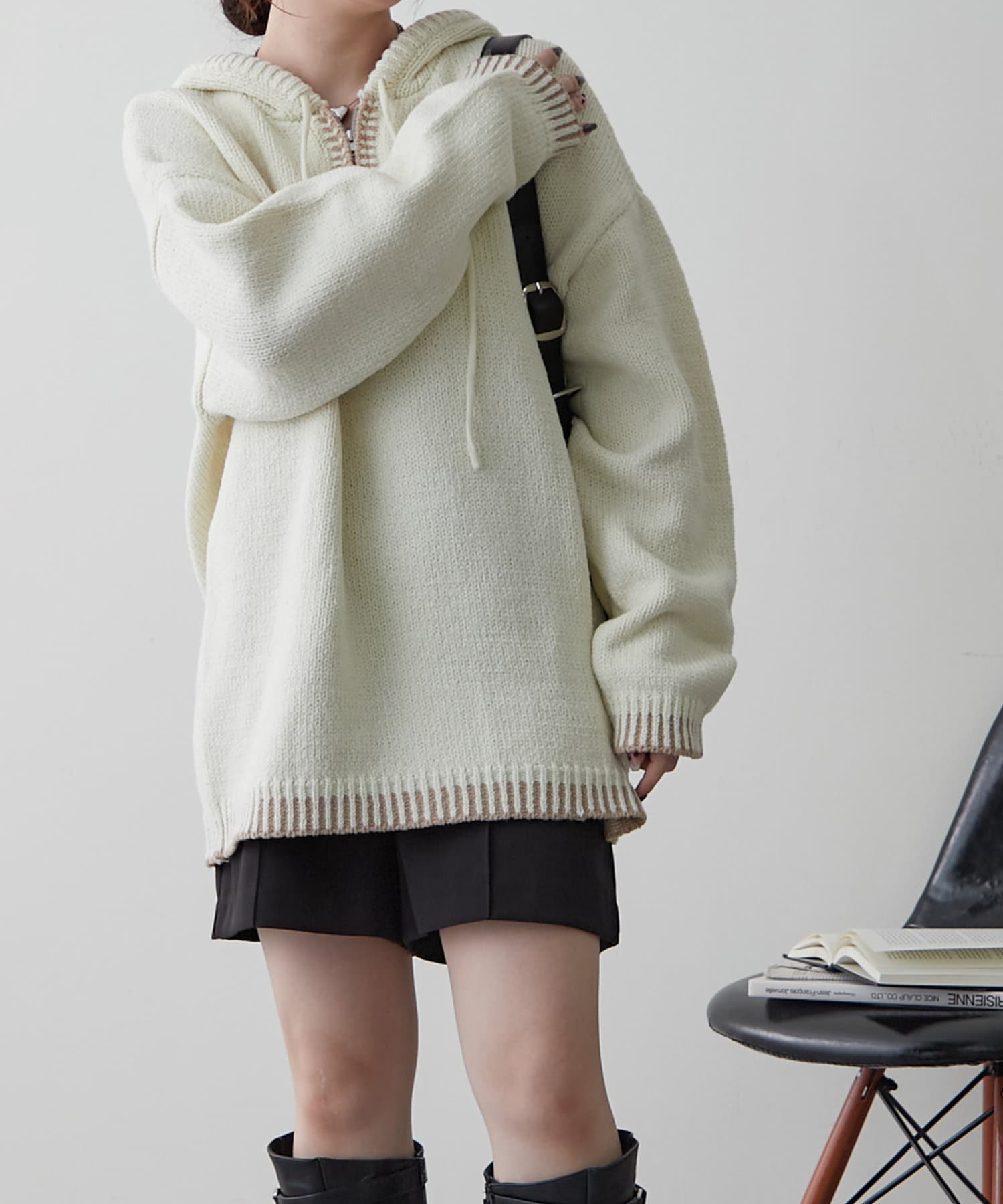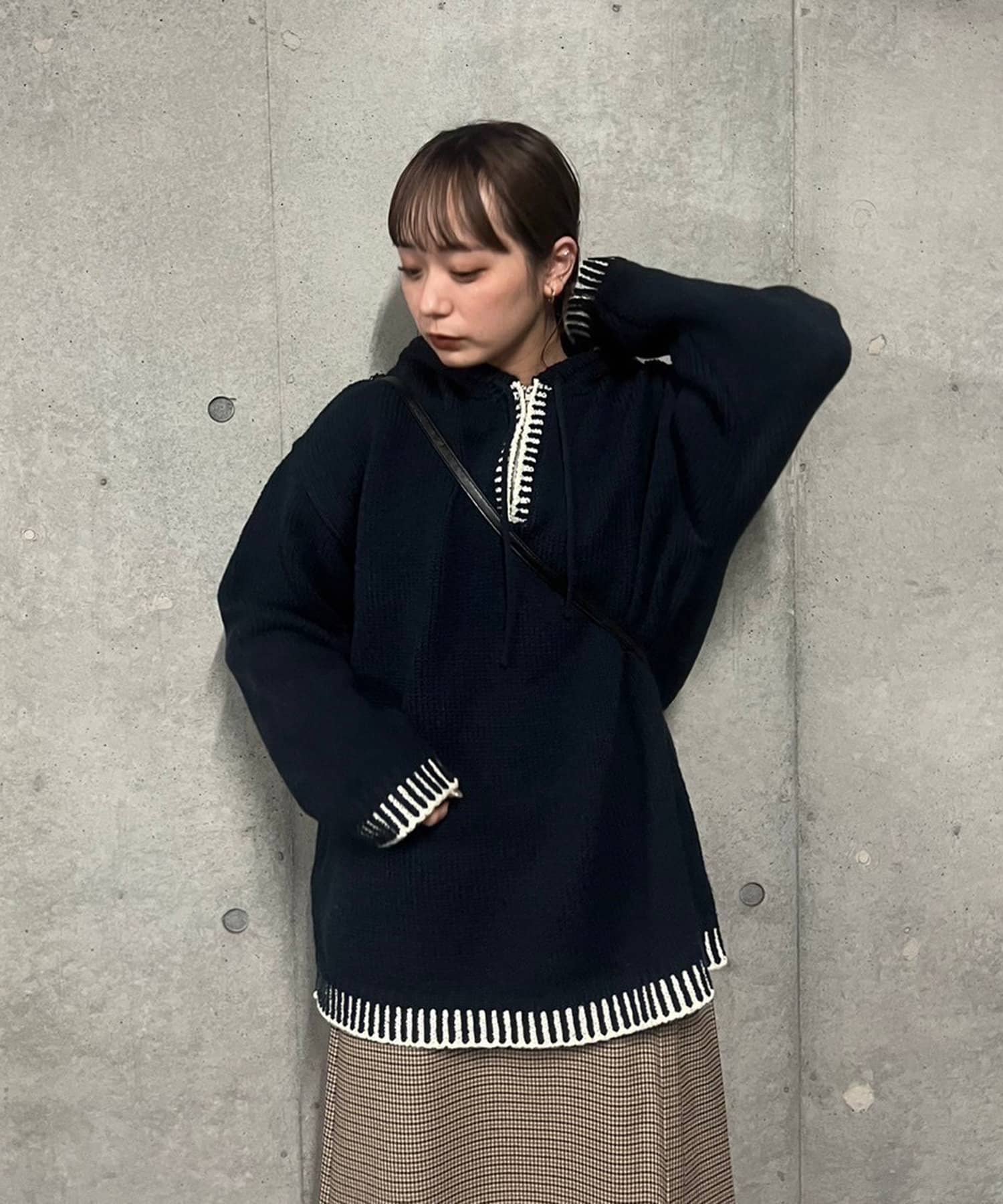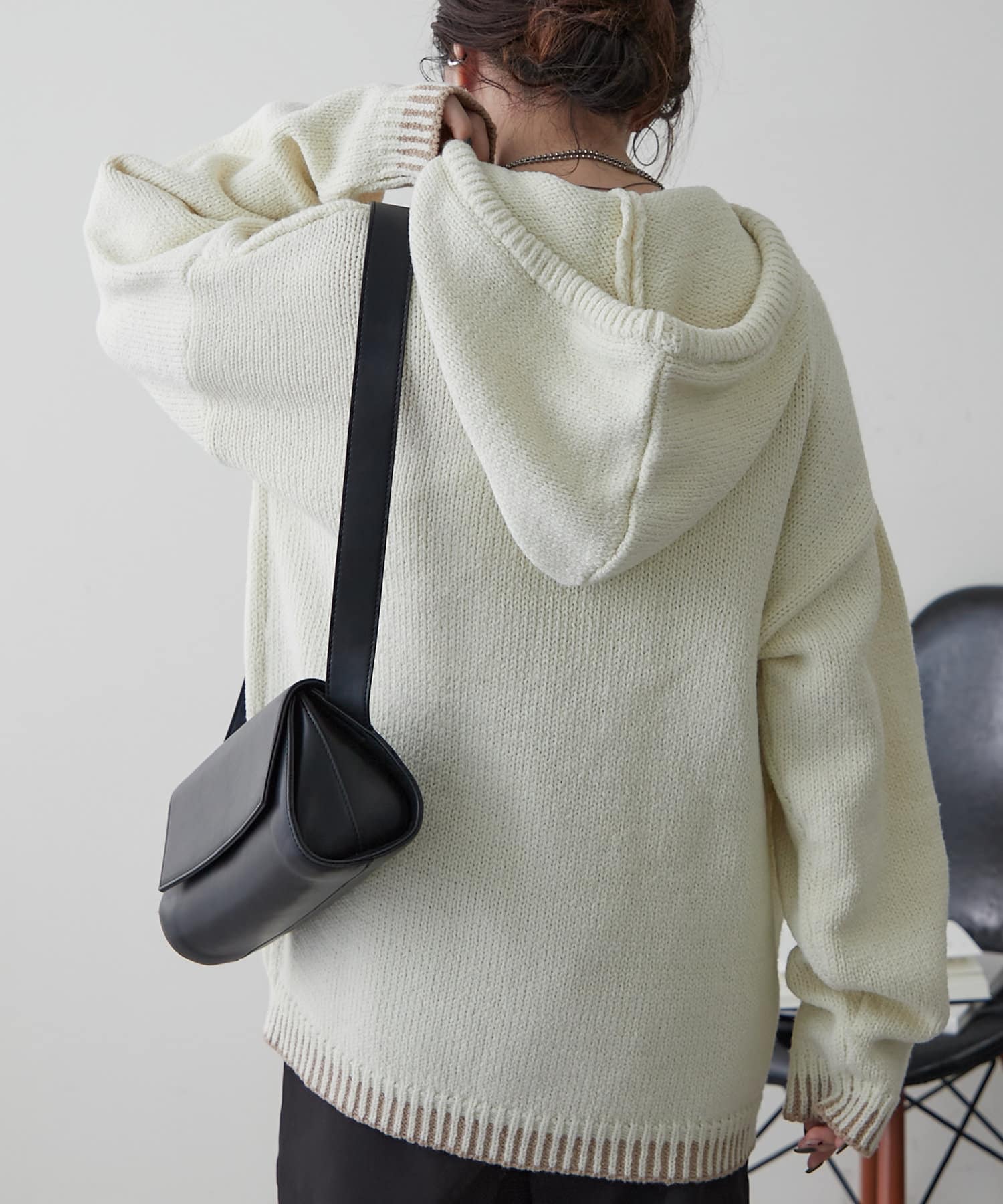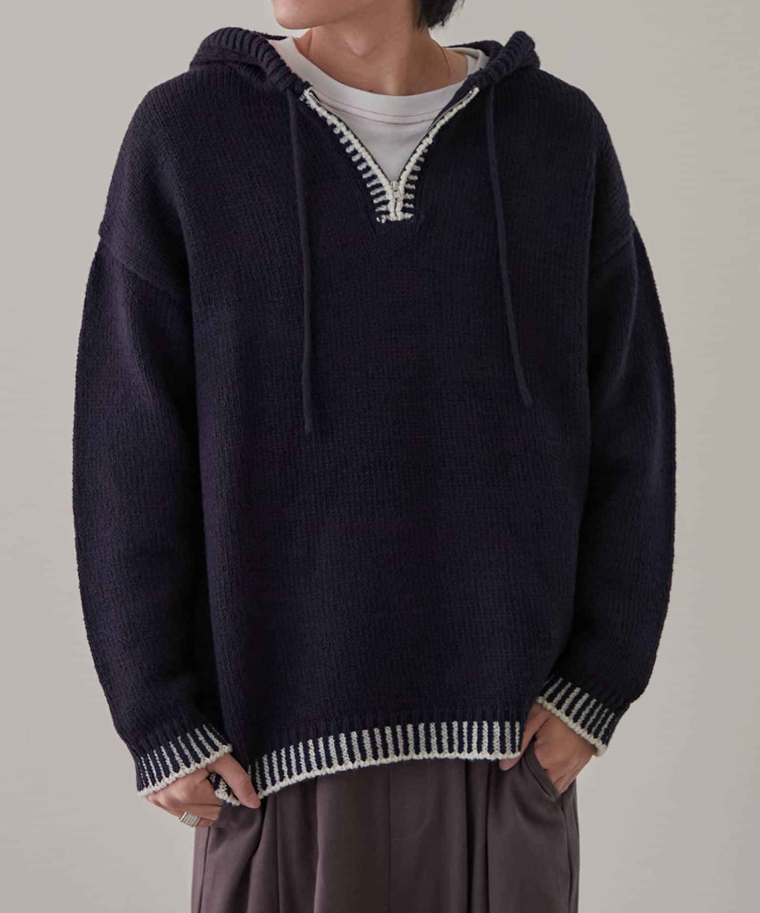・配色ステッチがコーデのアクセントになるニットパーカー