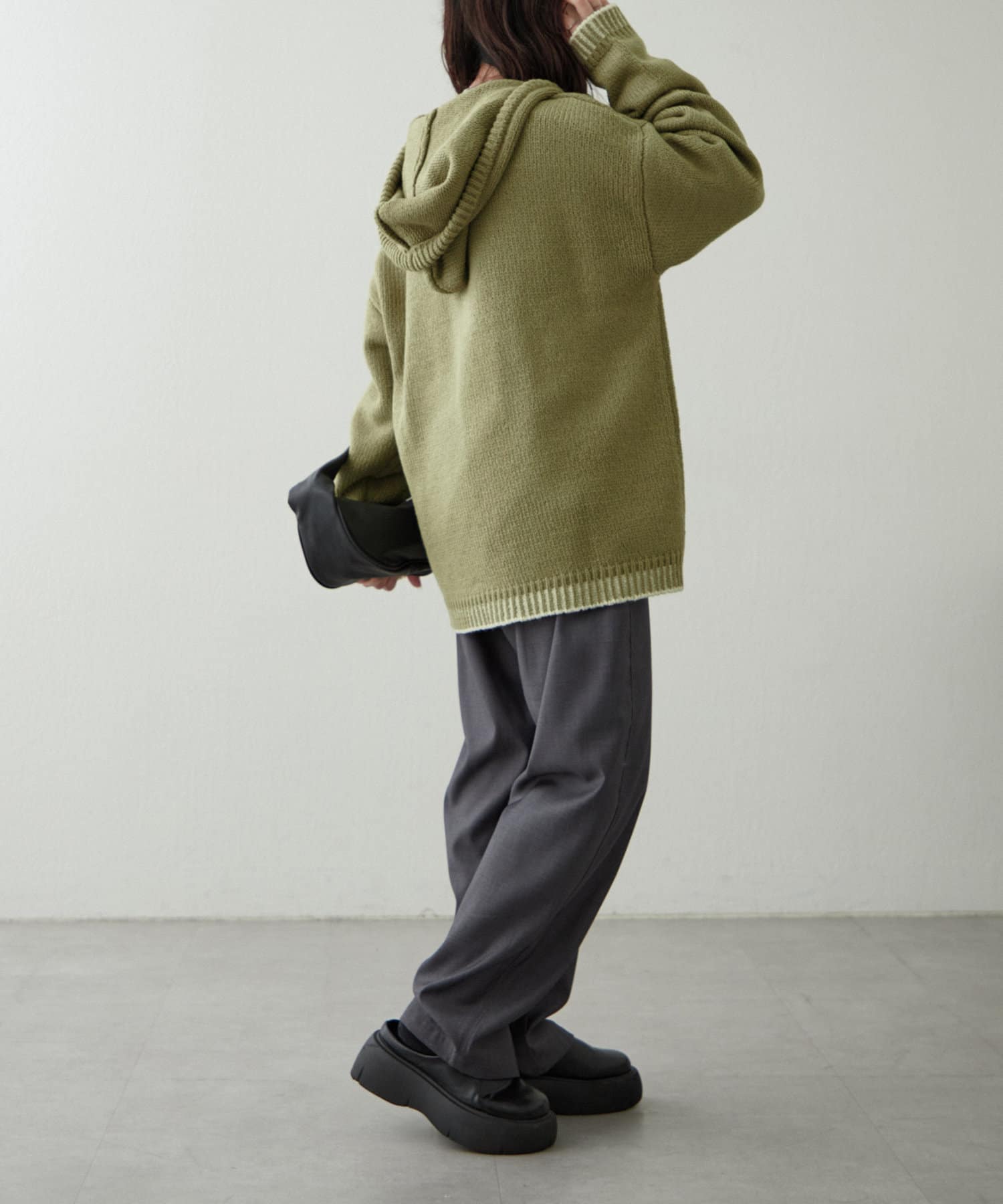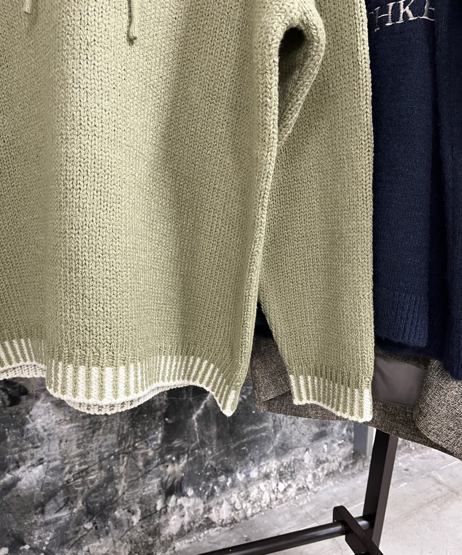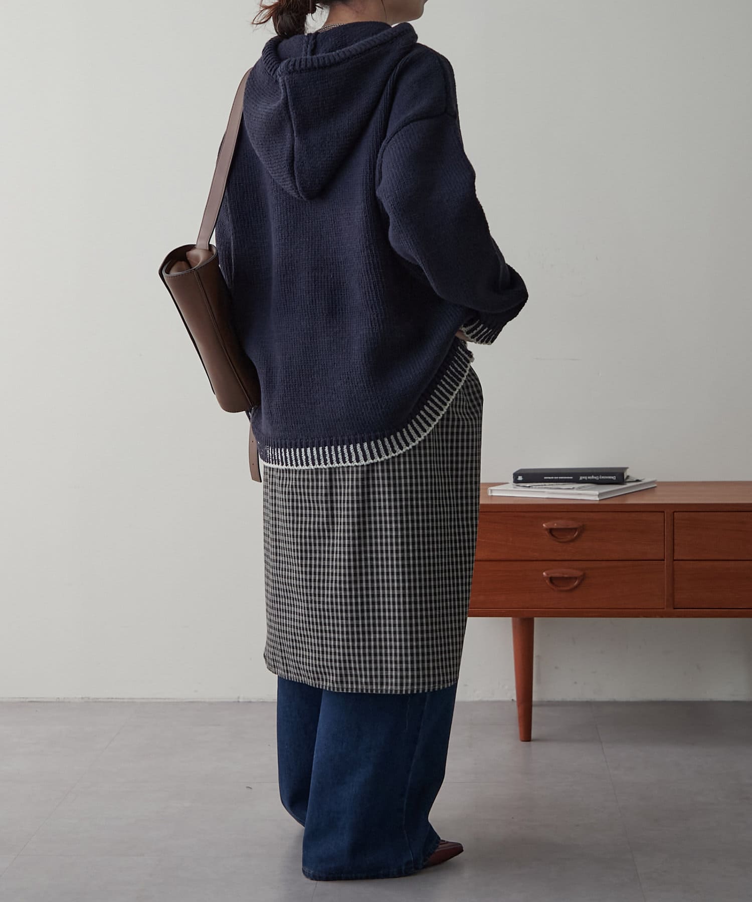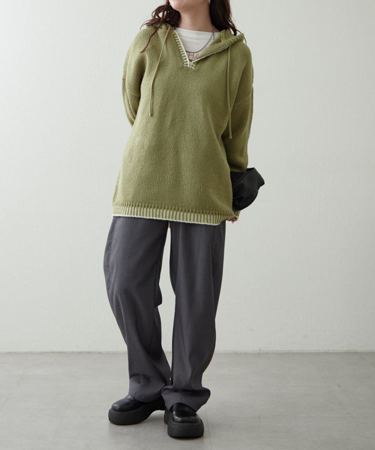 ・配色ステッチがコーデのアクセントになるニットパーカー