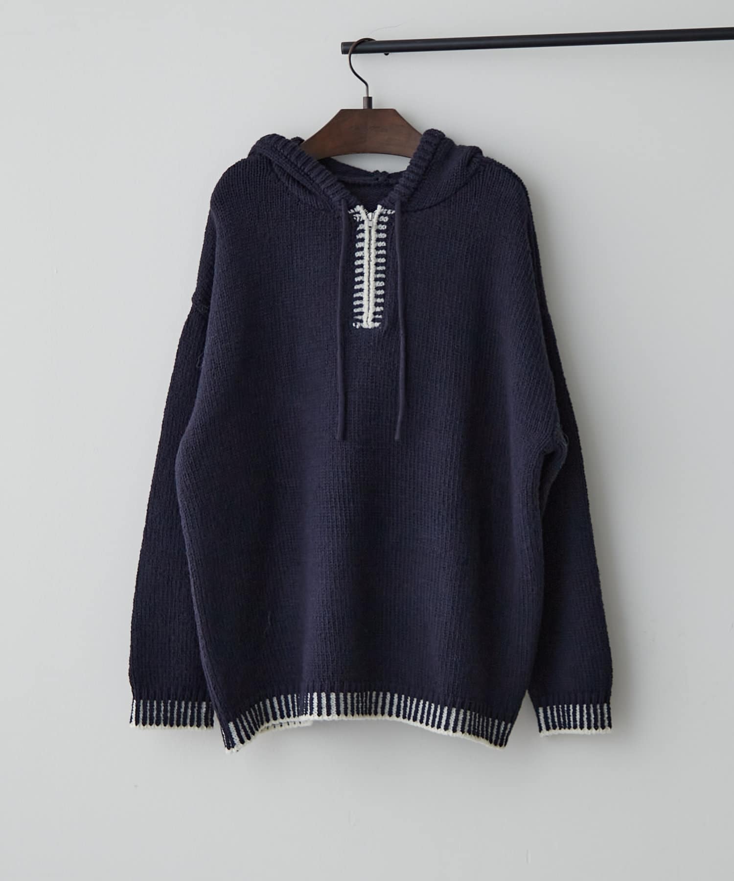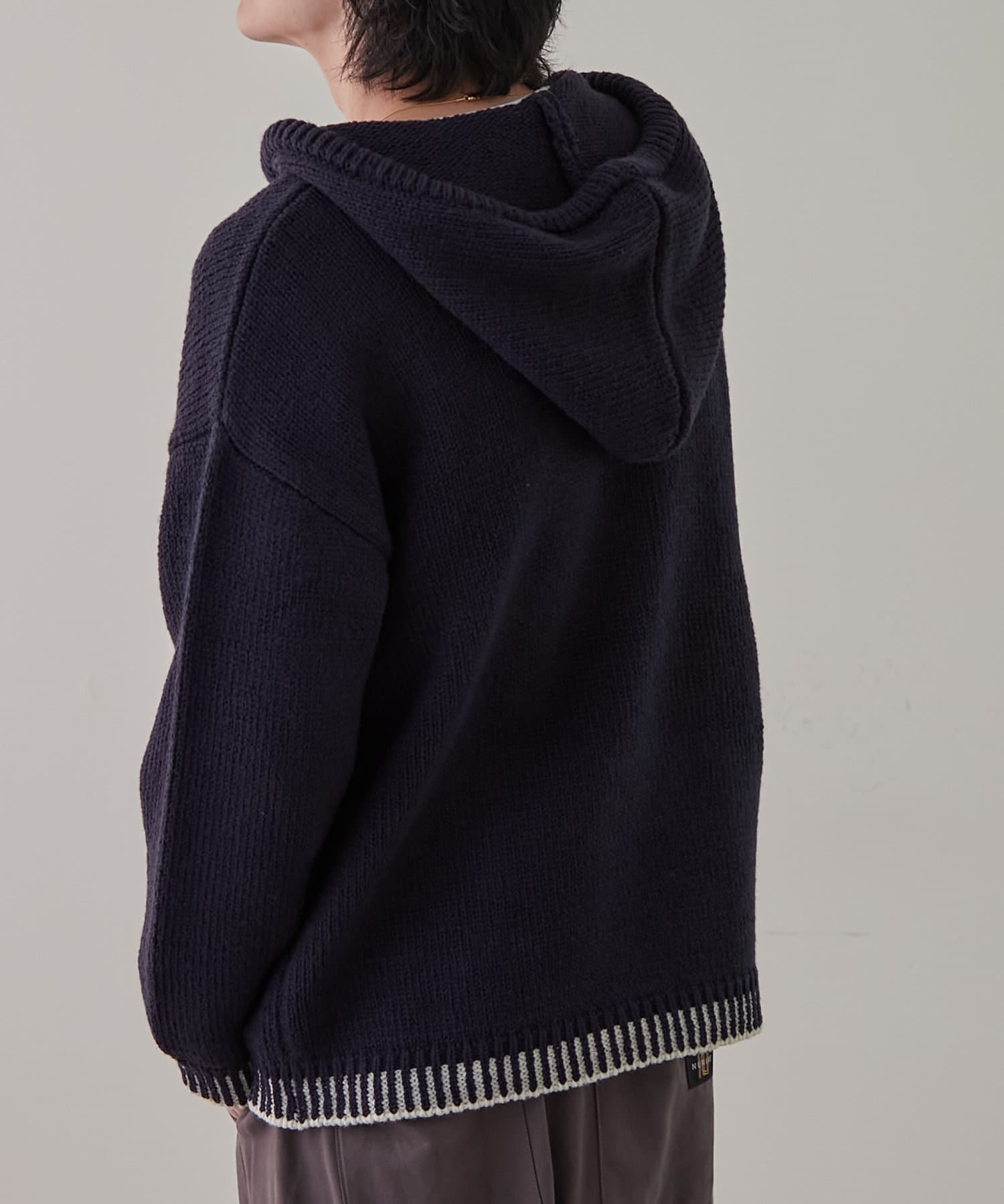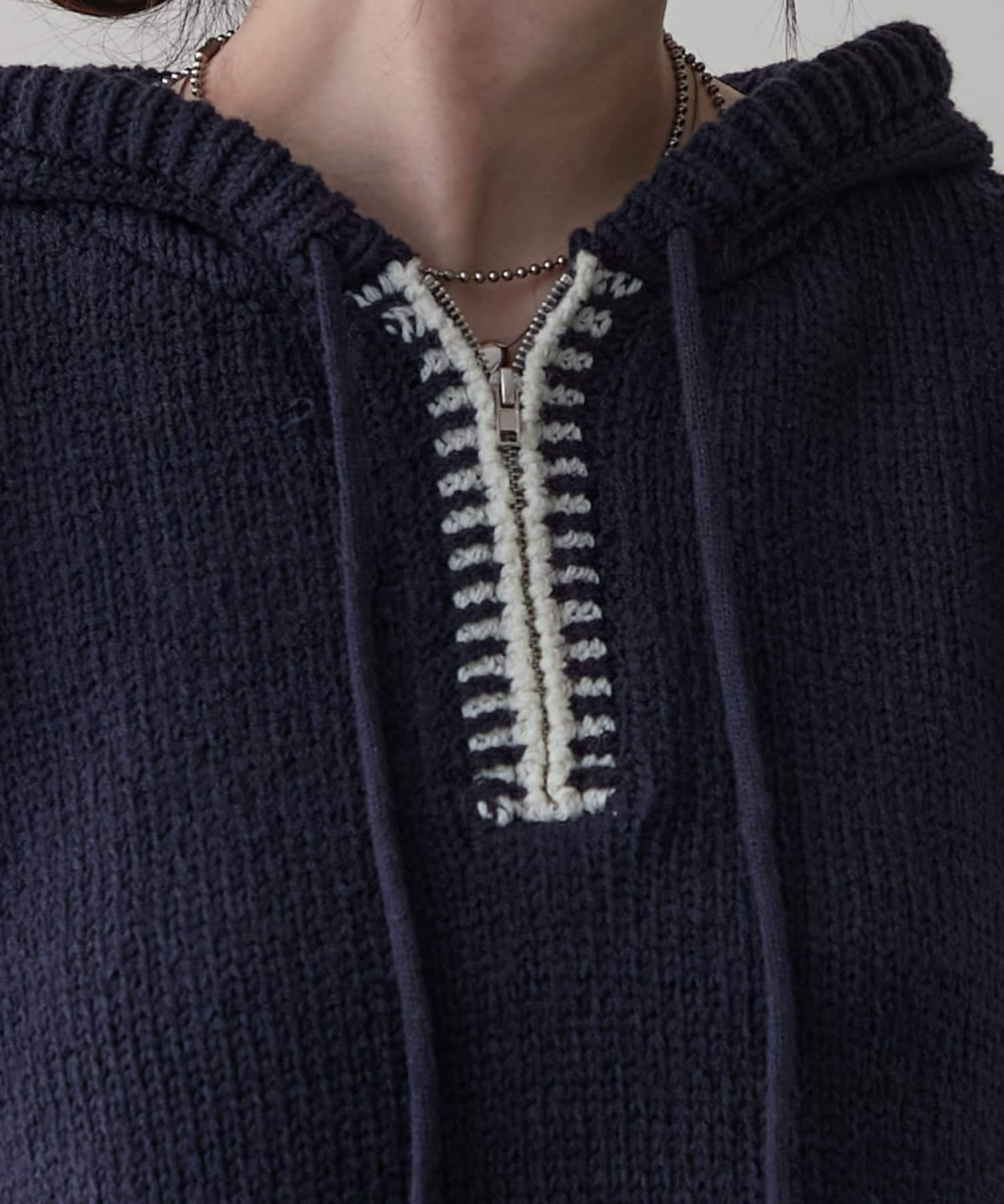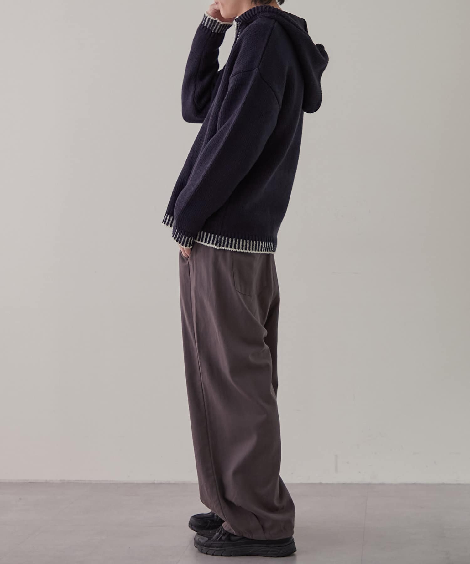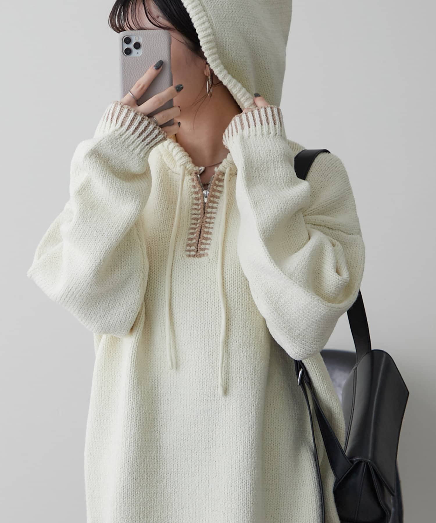 ・配色ステッチがコーデのアクセントになるニットパーカー