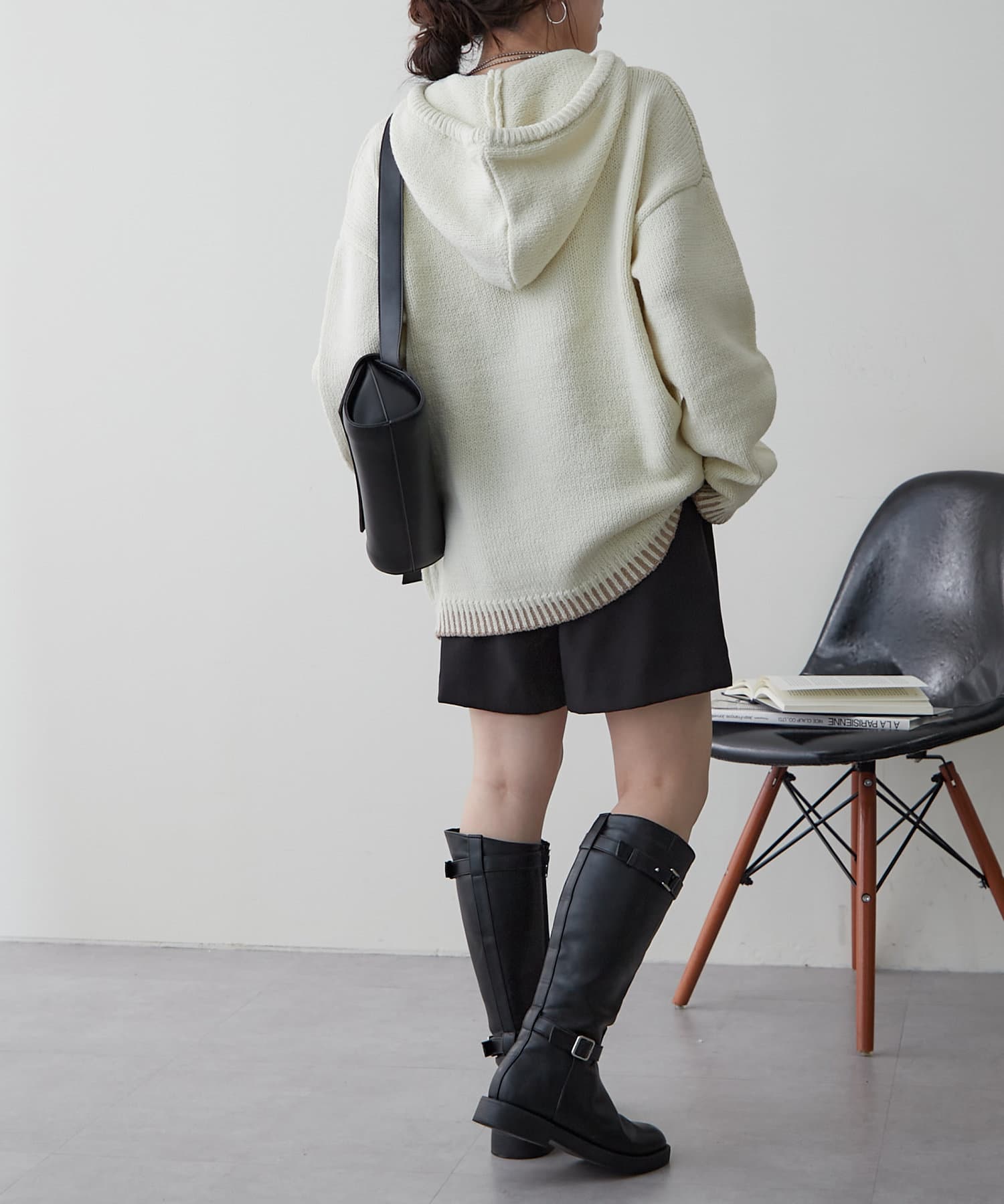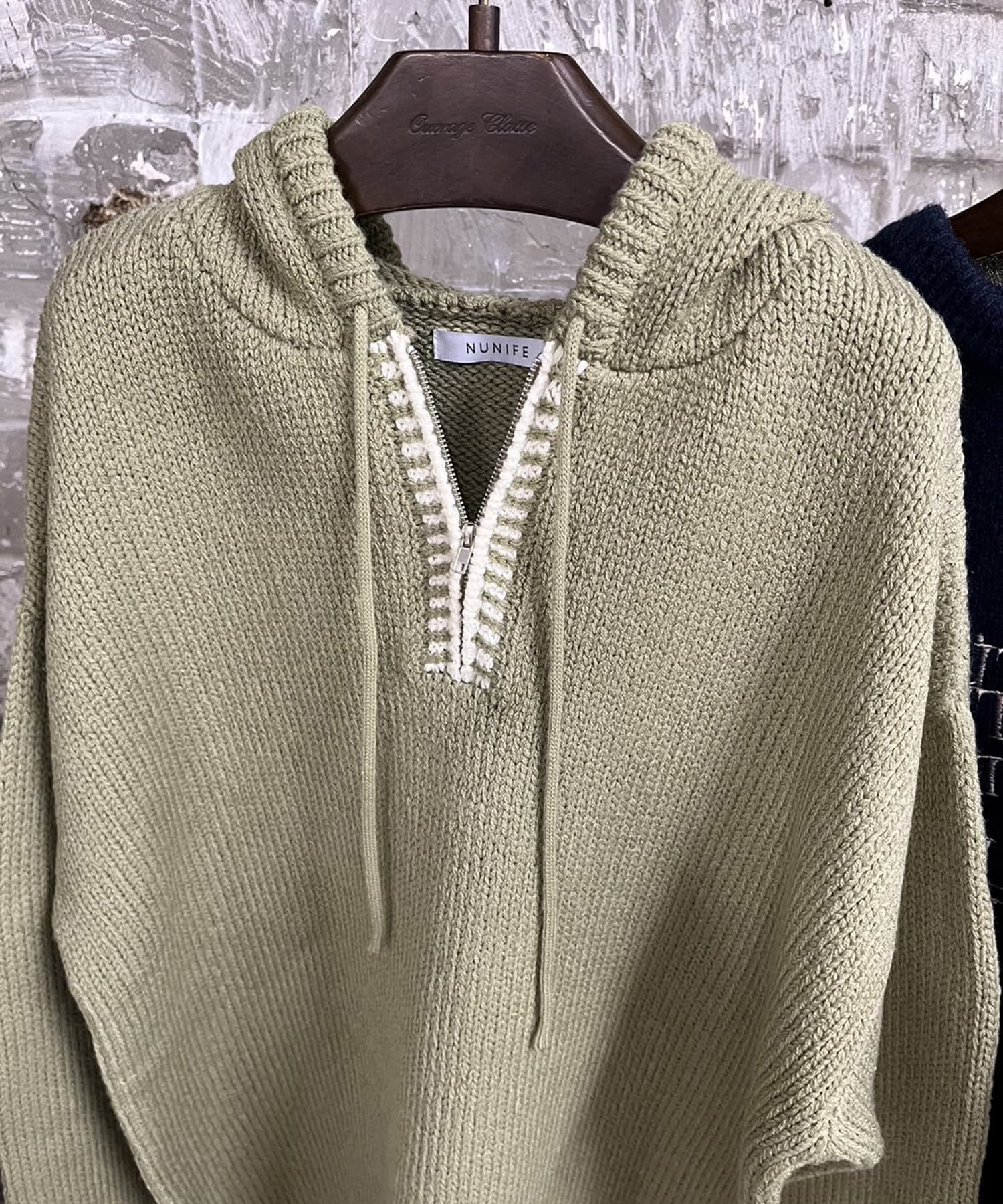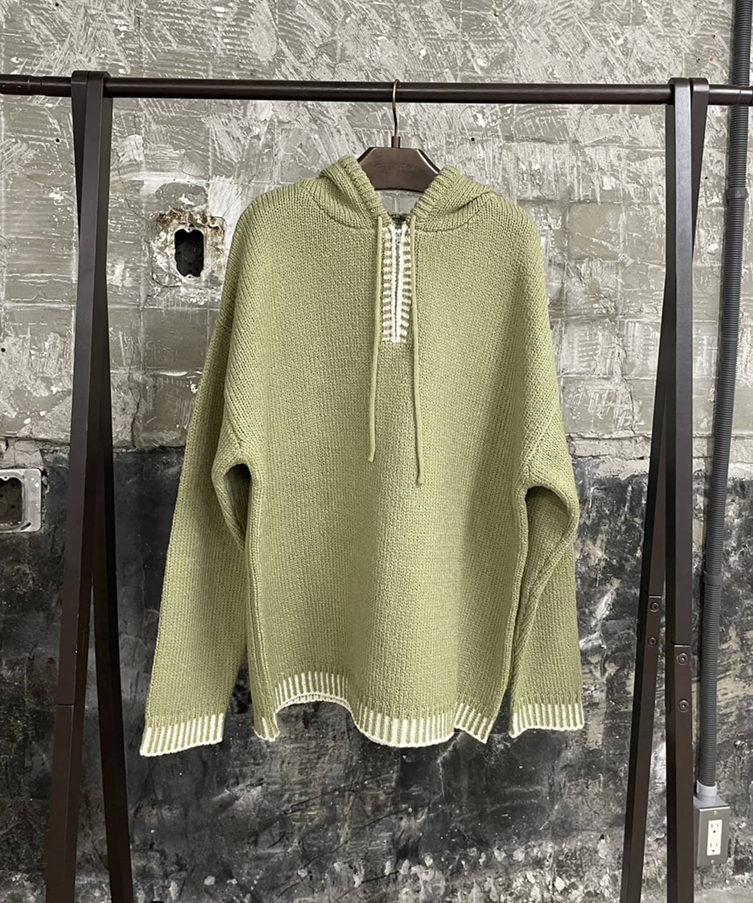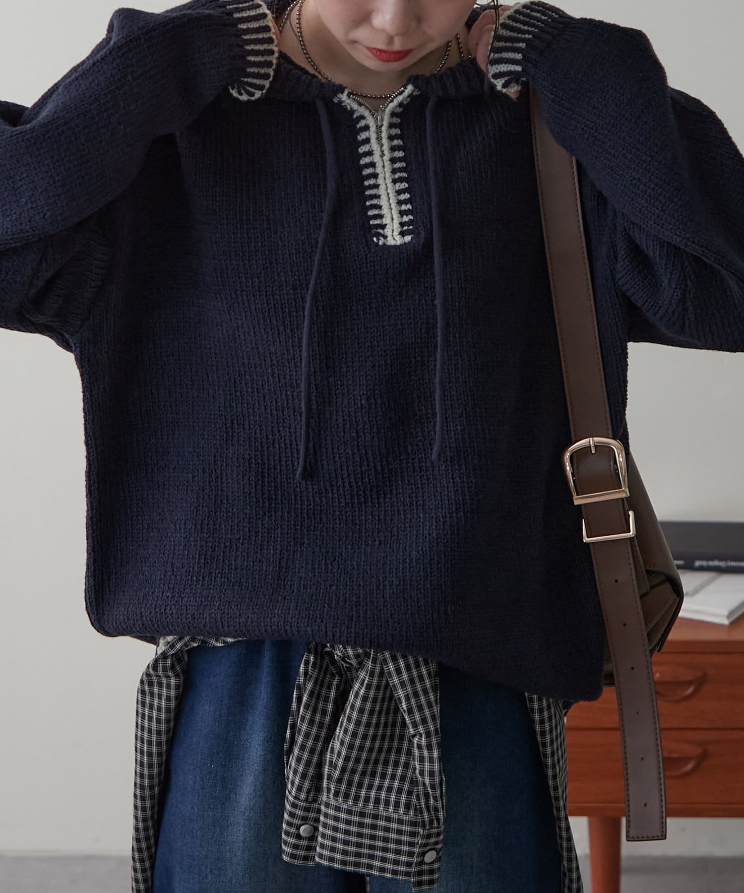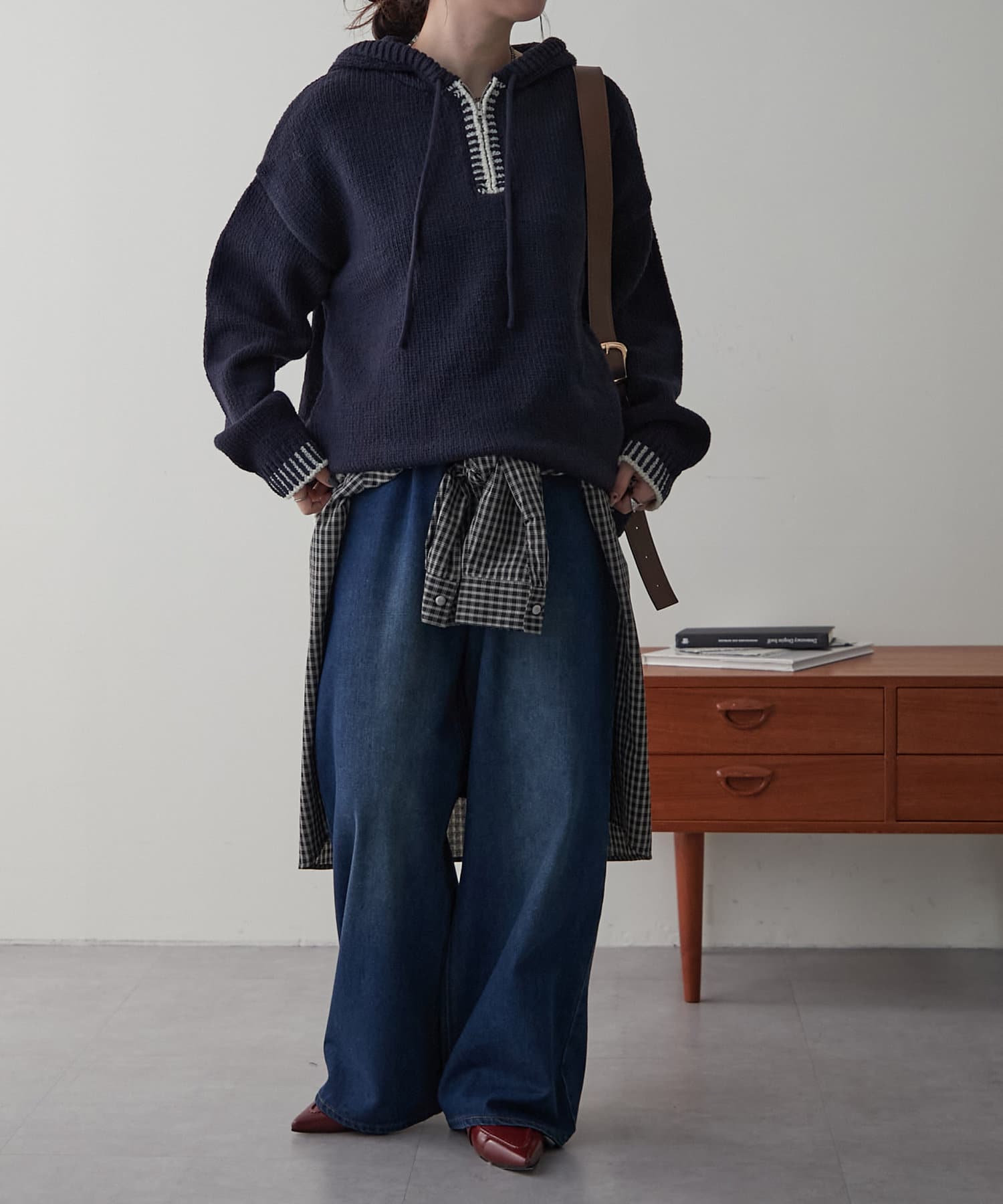 ・配色ステッチがコーデのアクセントになるニットパーカー