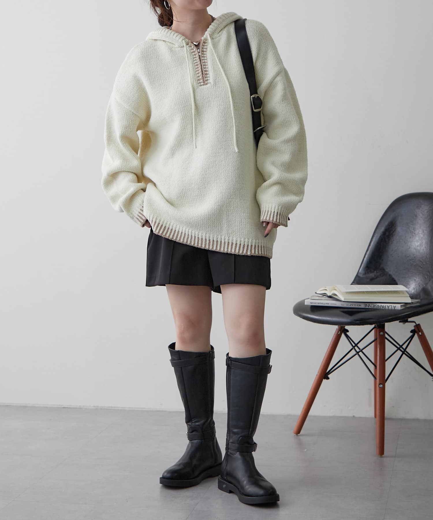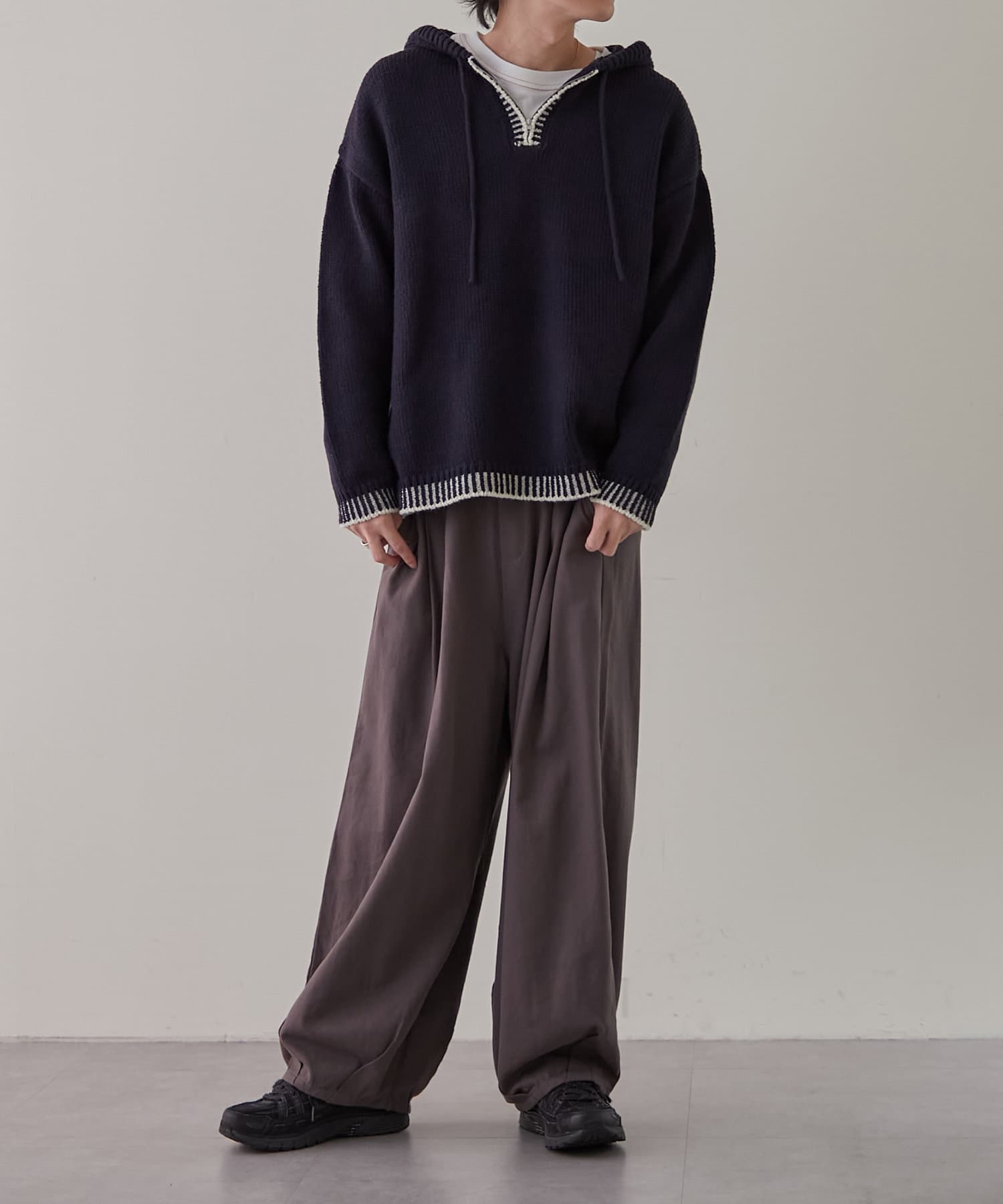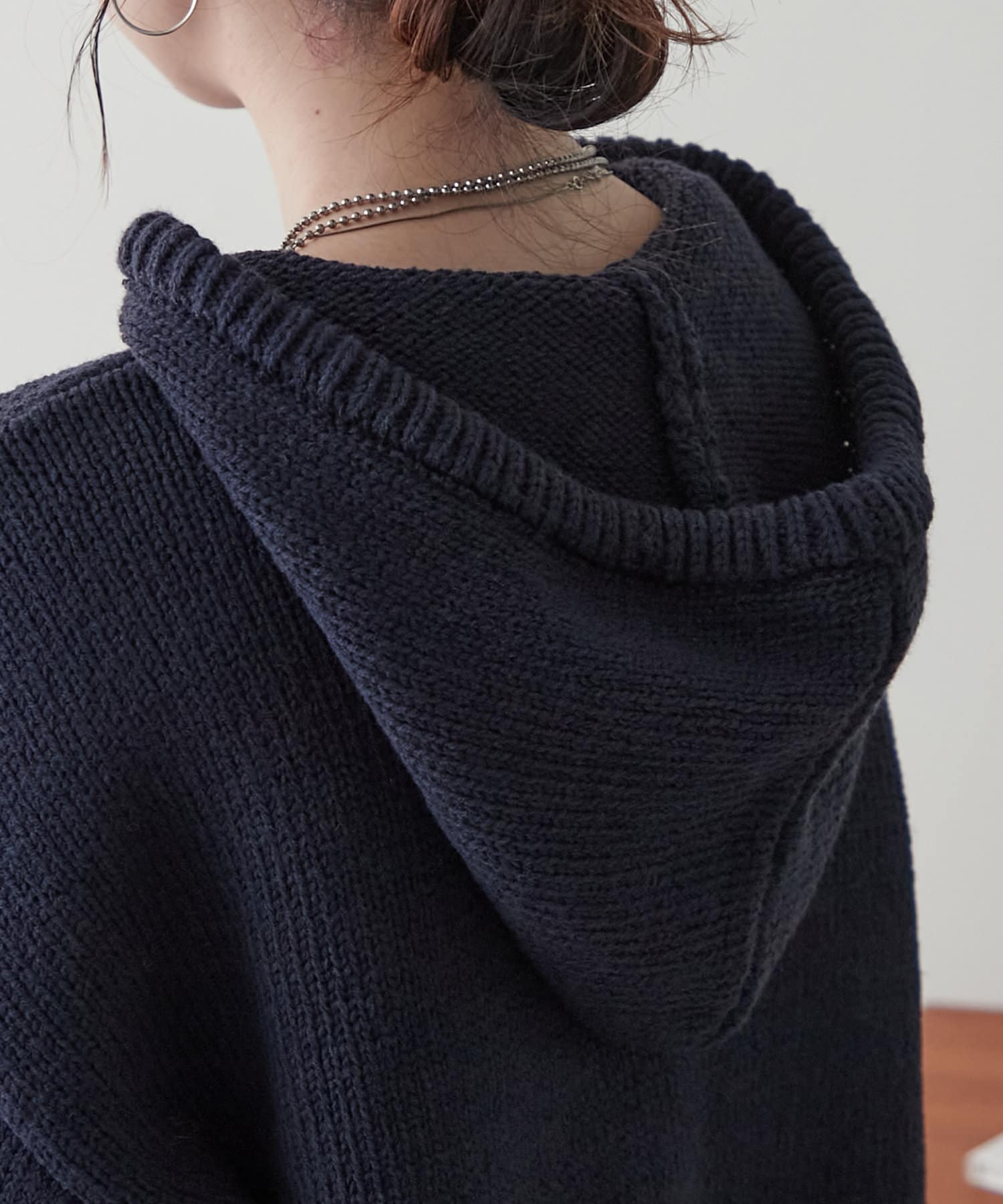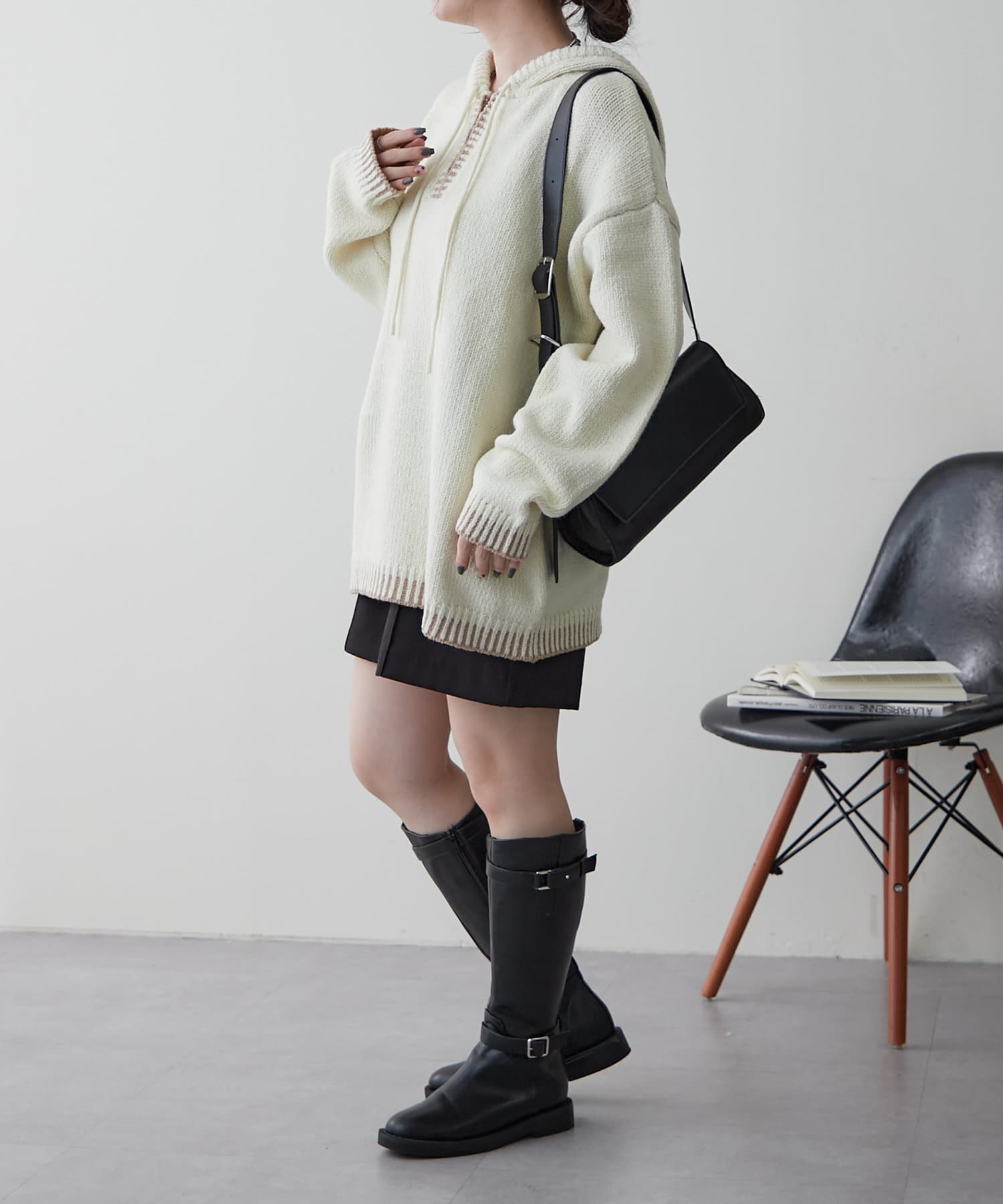 ・配色ステッチがコーデのアクセントになるニットパーカー