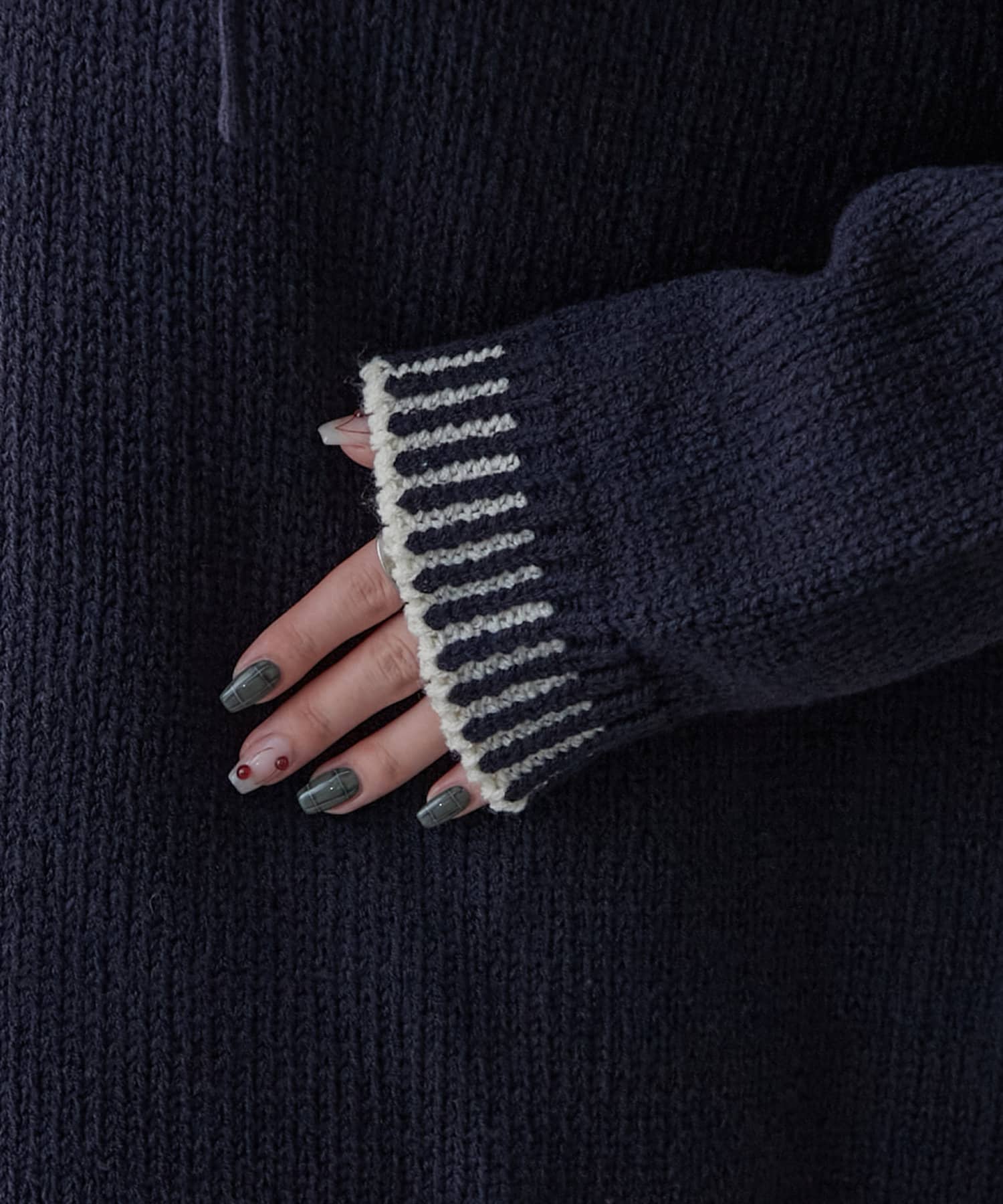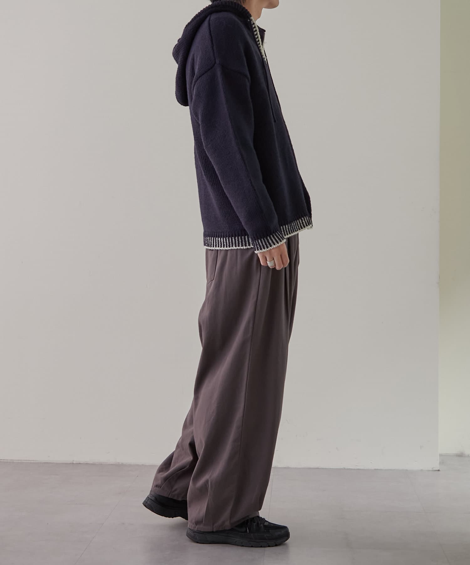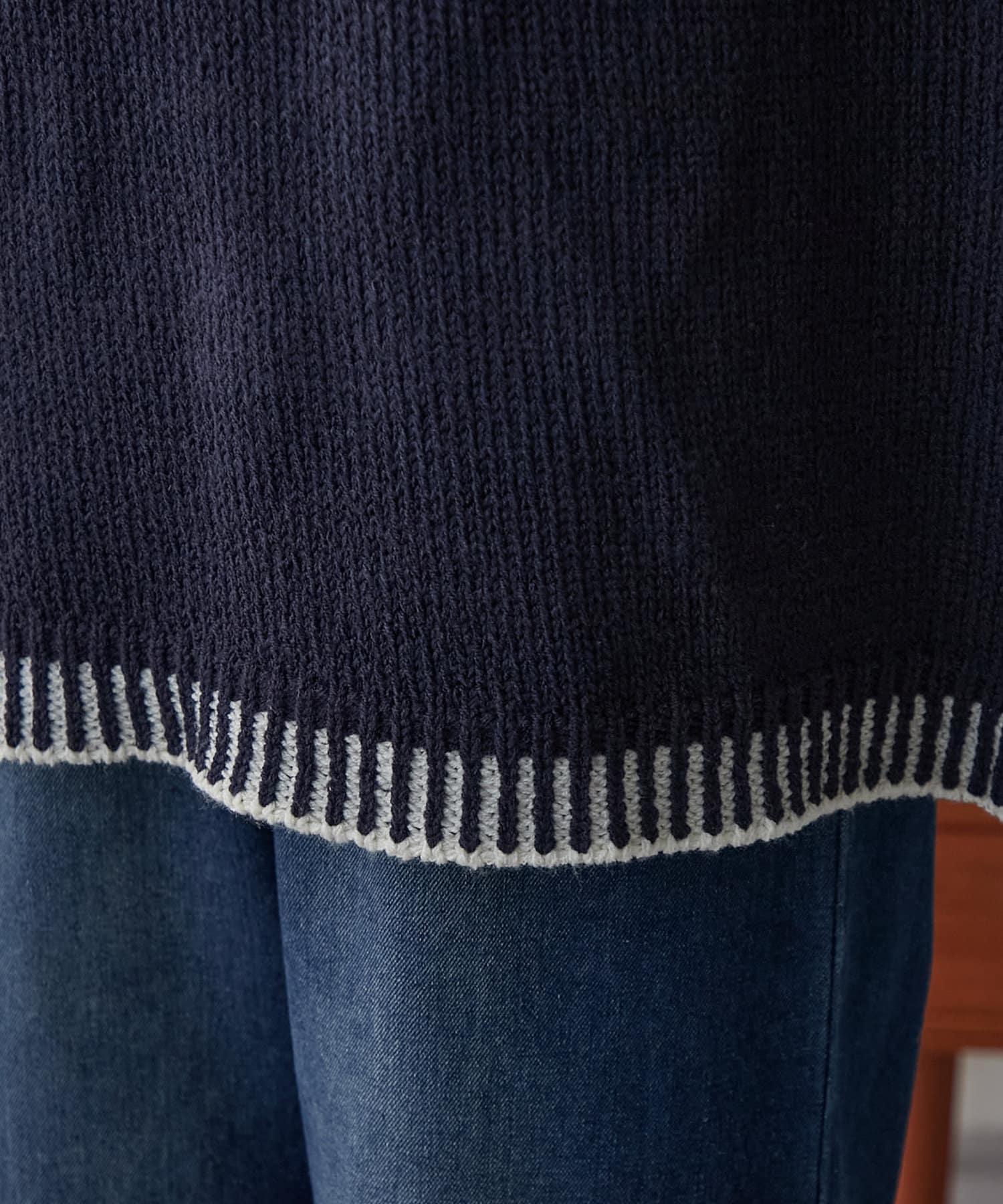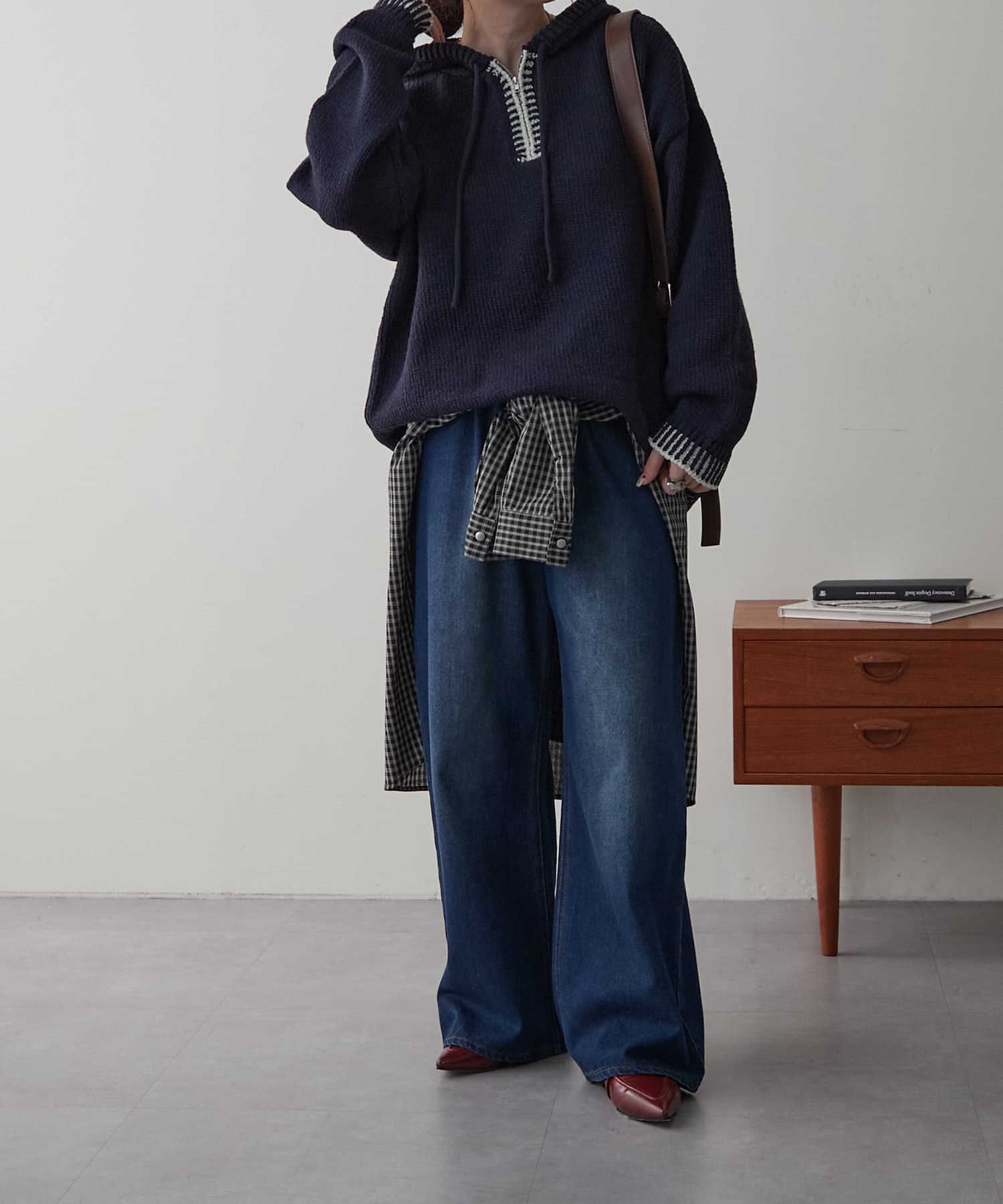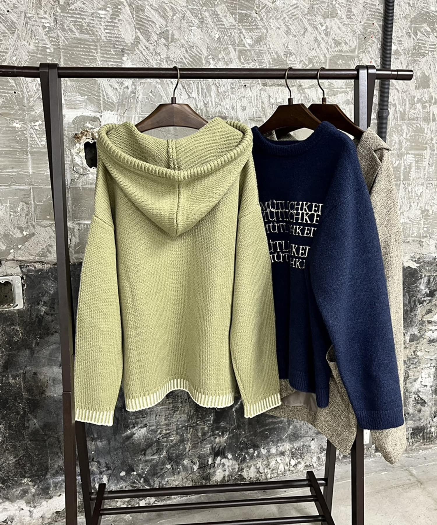 ・配色ステッチがコーデのアクセントになるニットパーカー