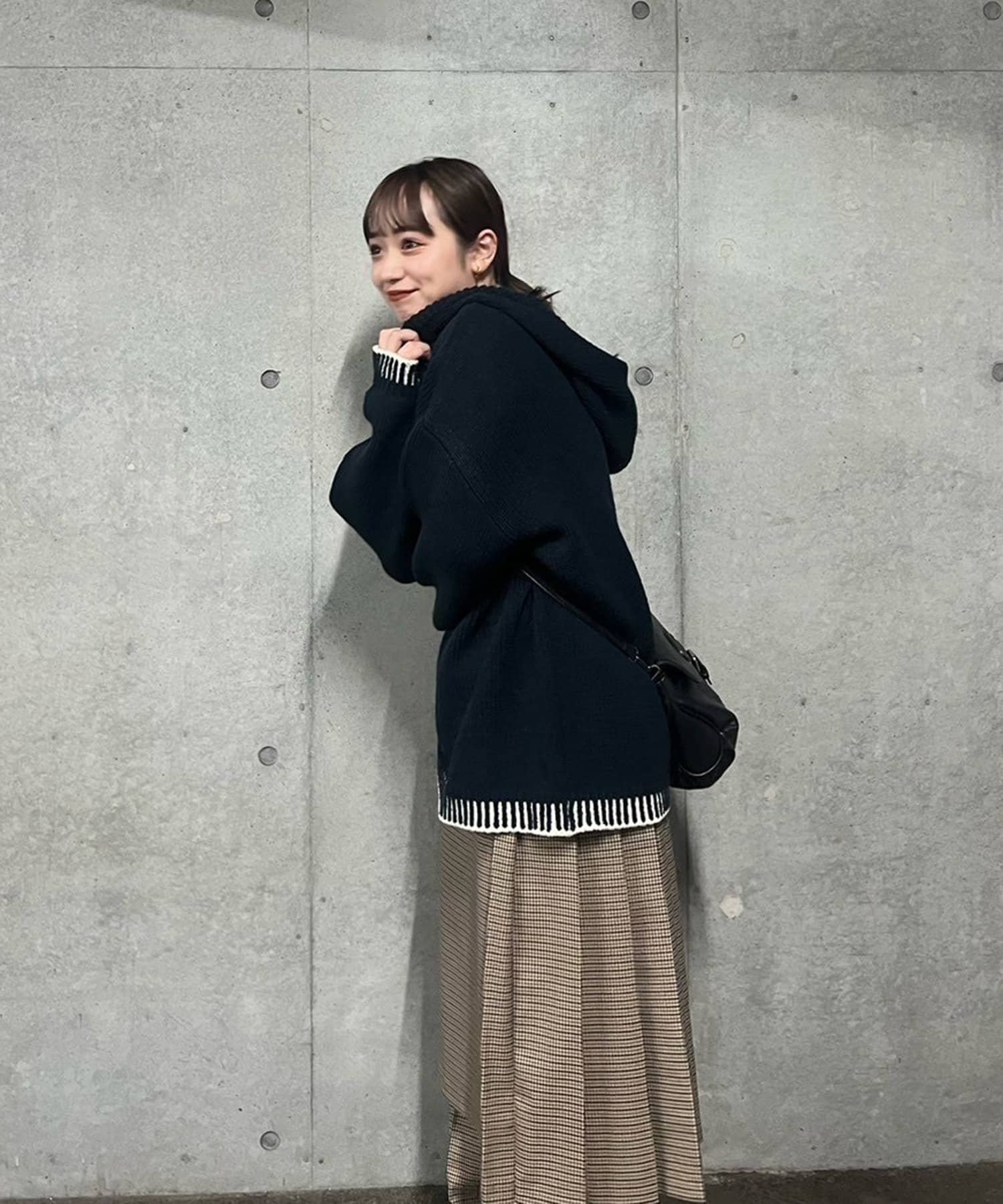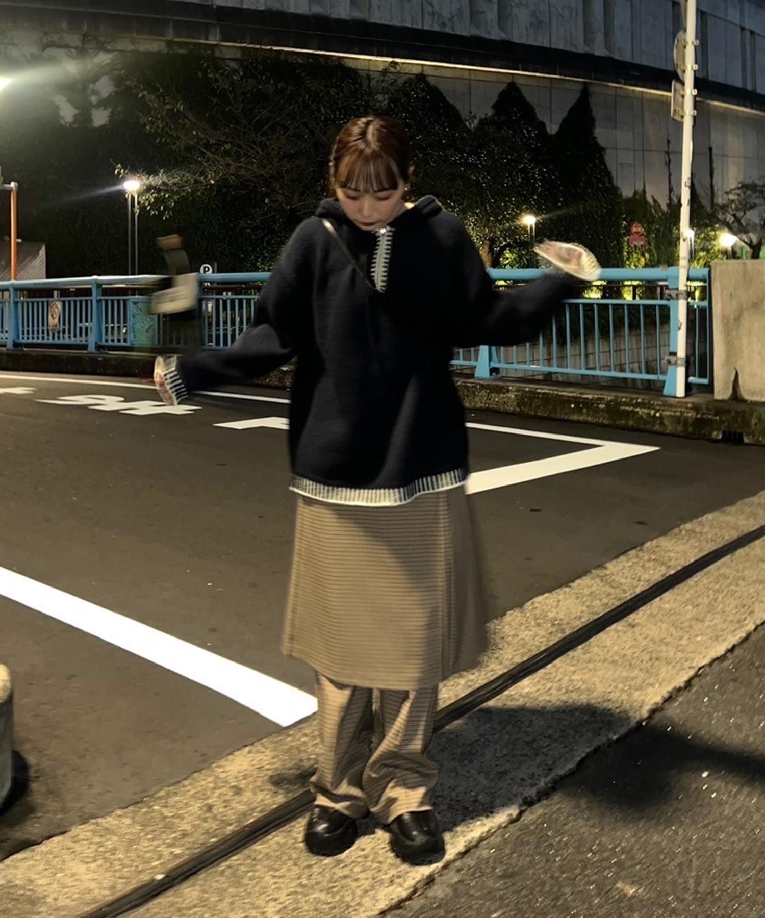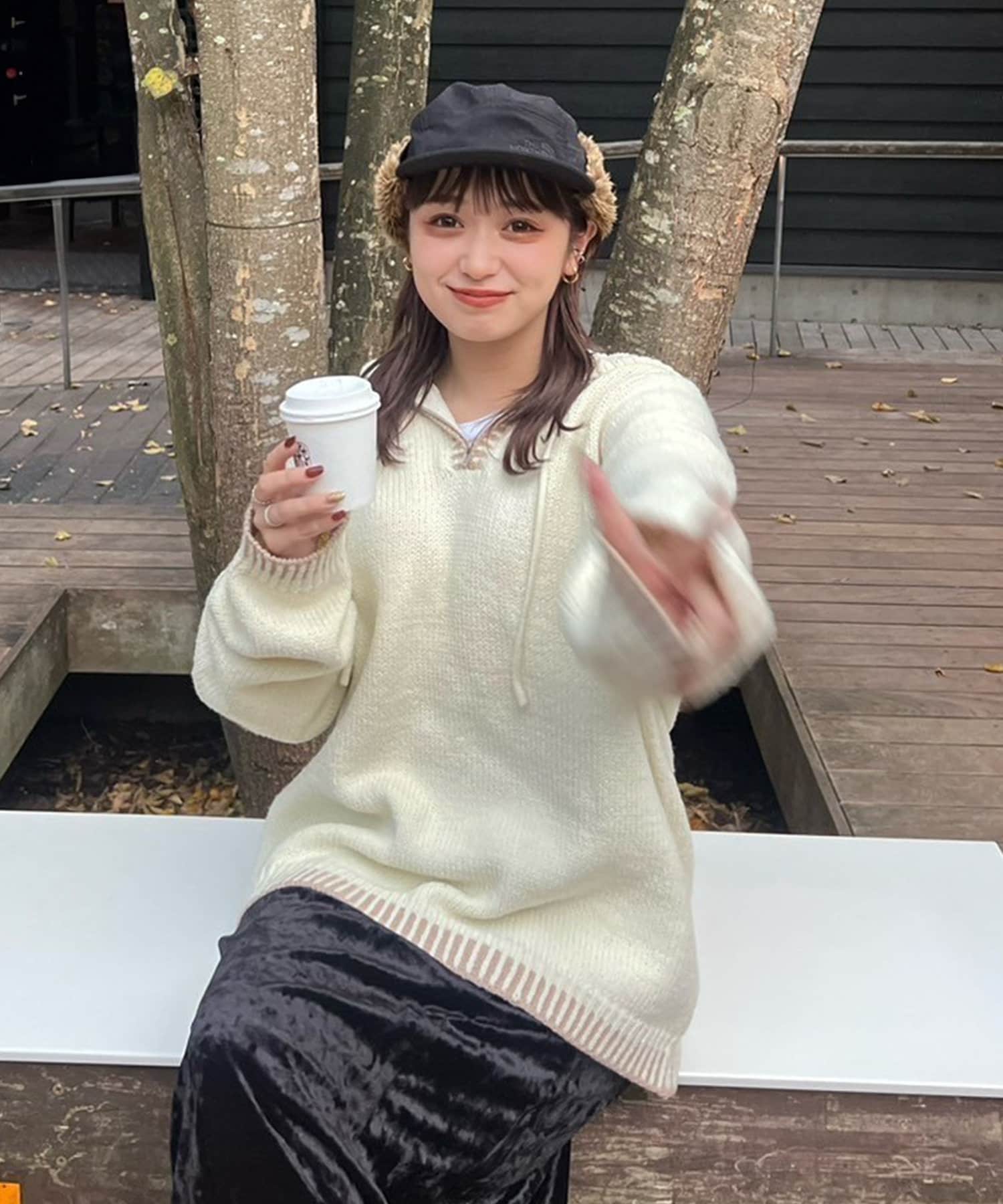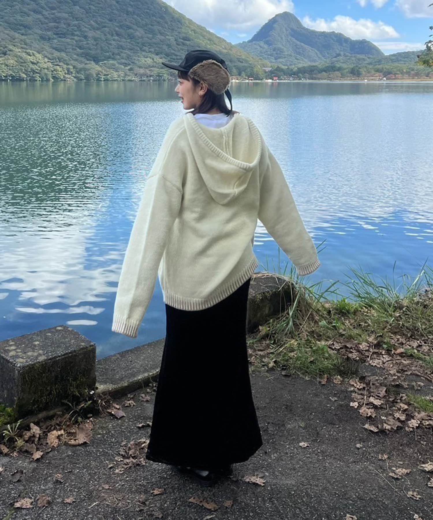 ・カジュアルイメージのパーカーもニット素材にすることで柔らかい印象に!