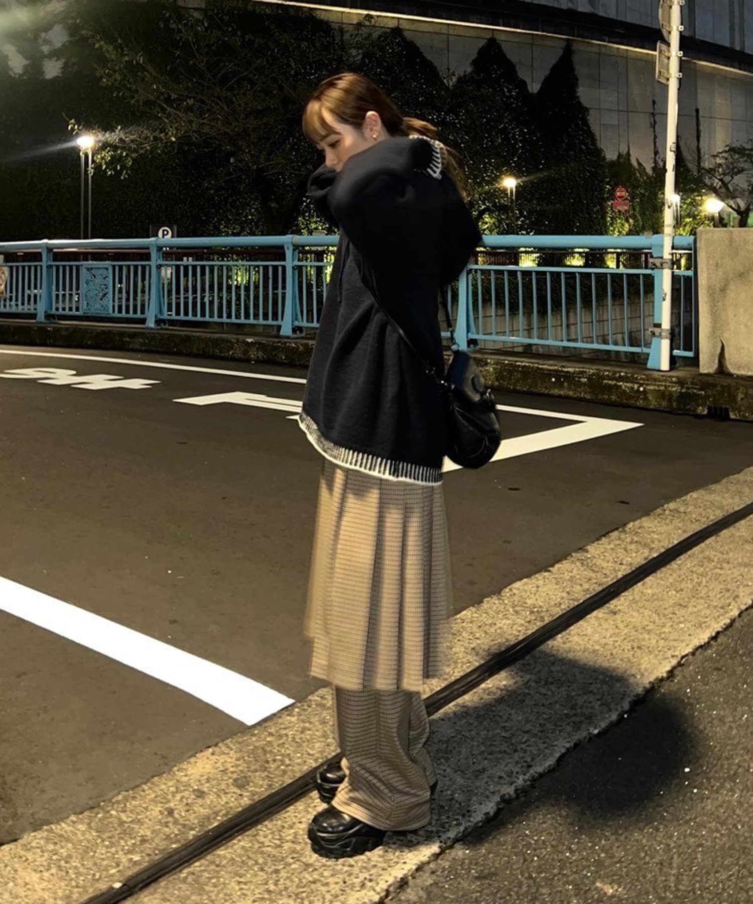 ・インナーとしてTシャツを合わせて襟元をレイヤードスタイルにすると今どき風に!