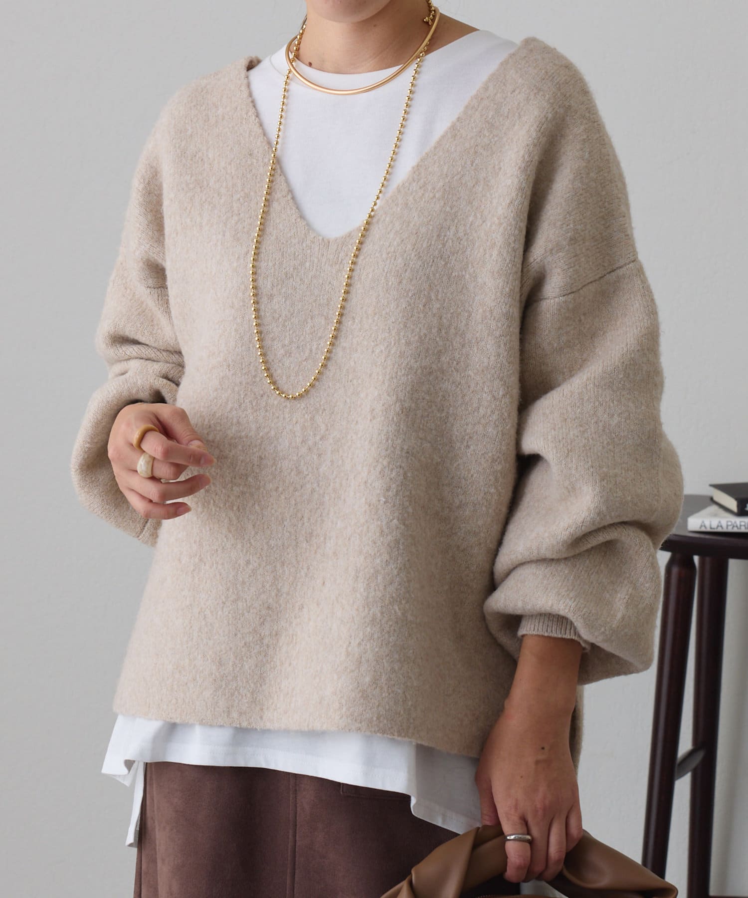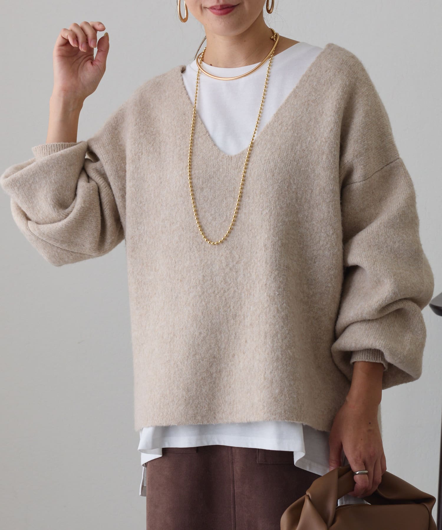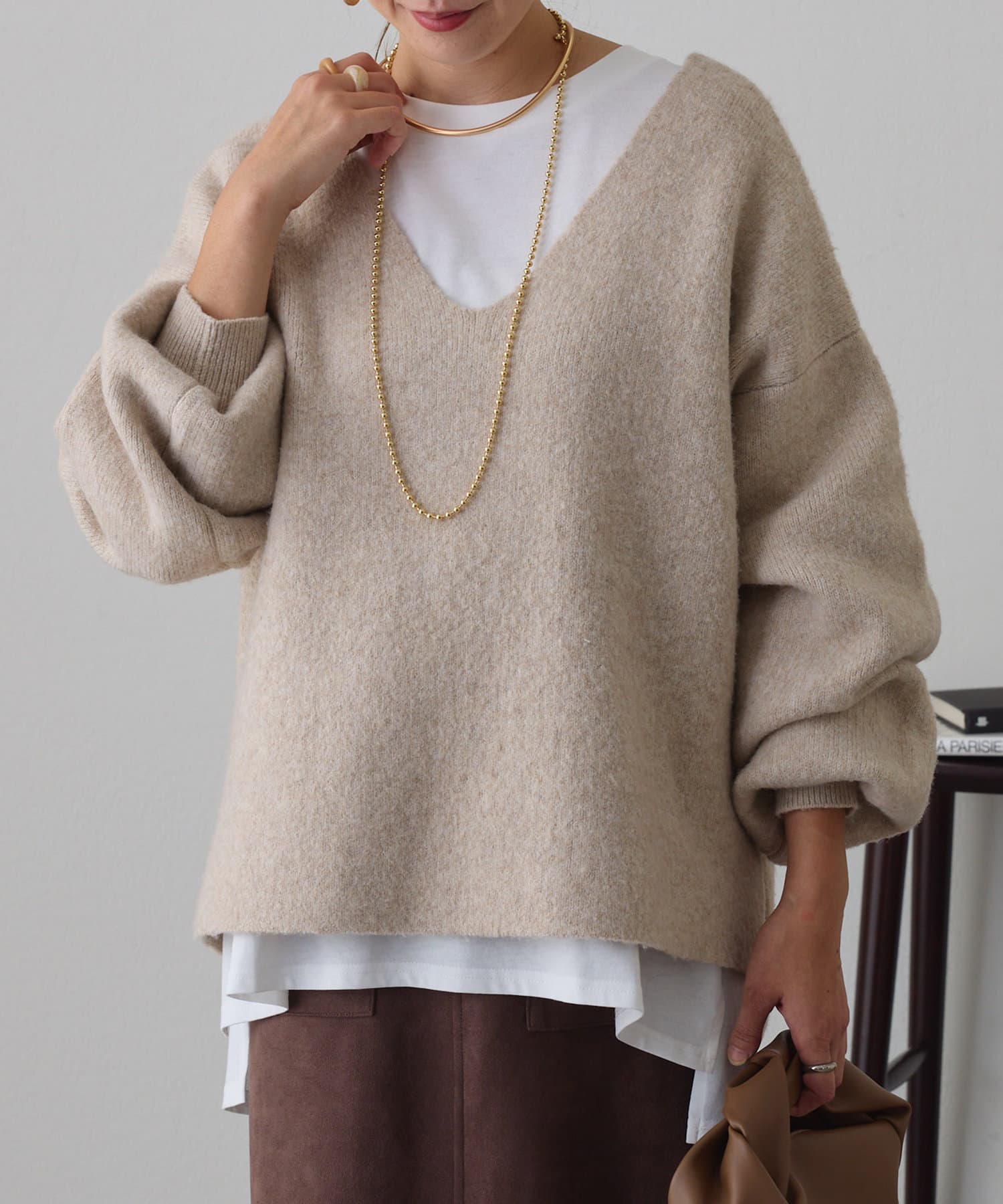 ・Vネックデザインなので顔回りをスッキリ見せてくれます!
