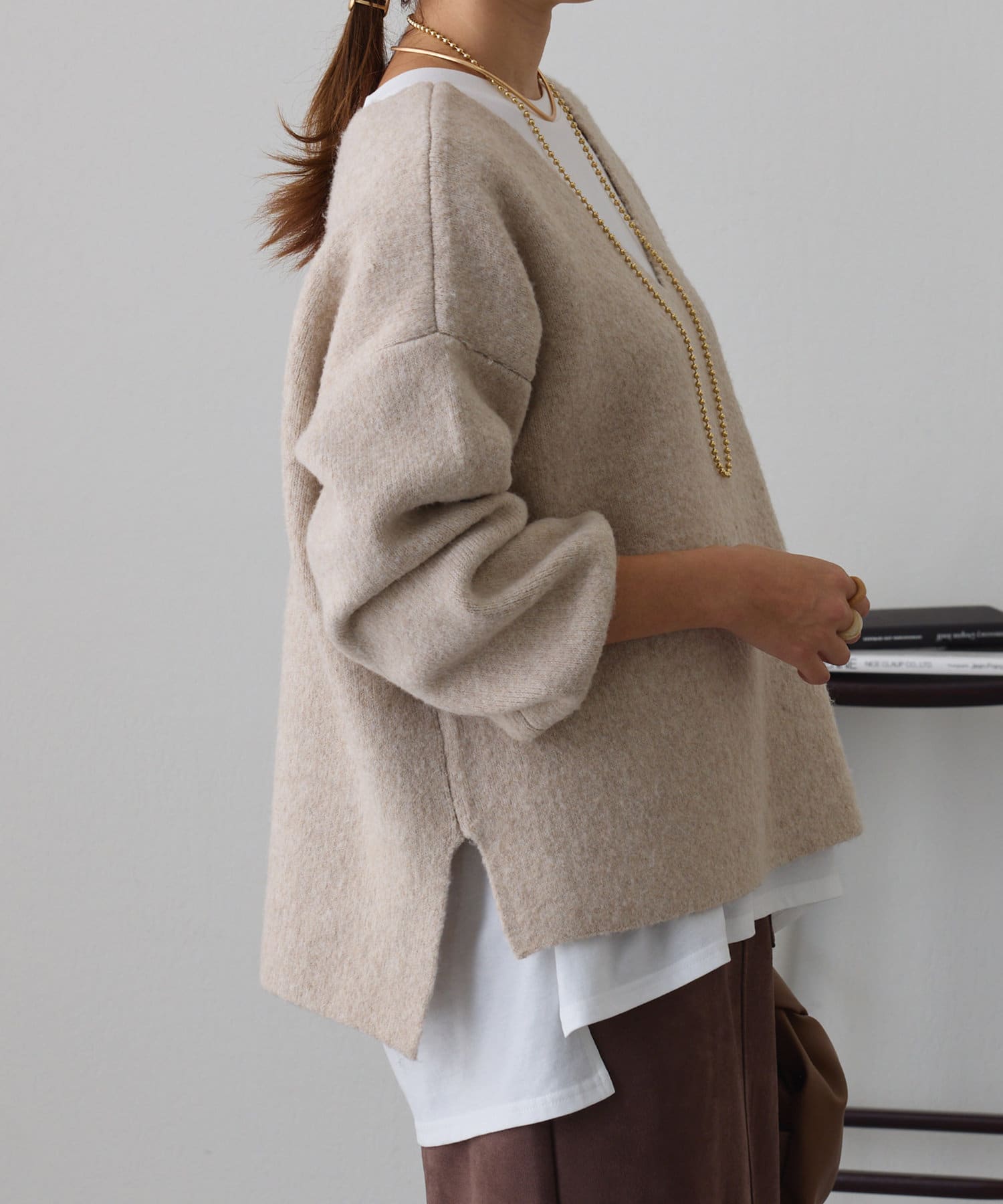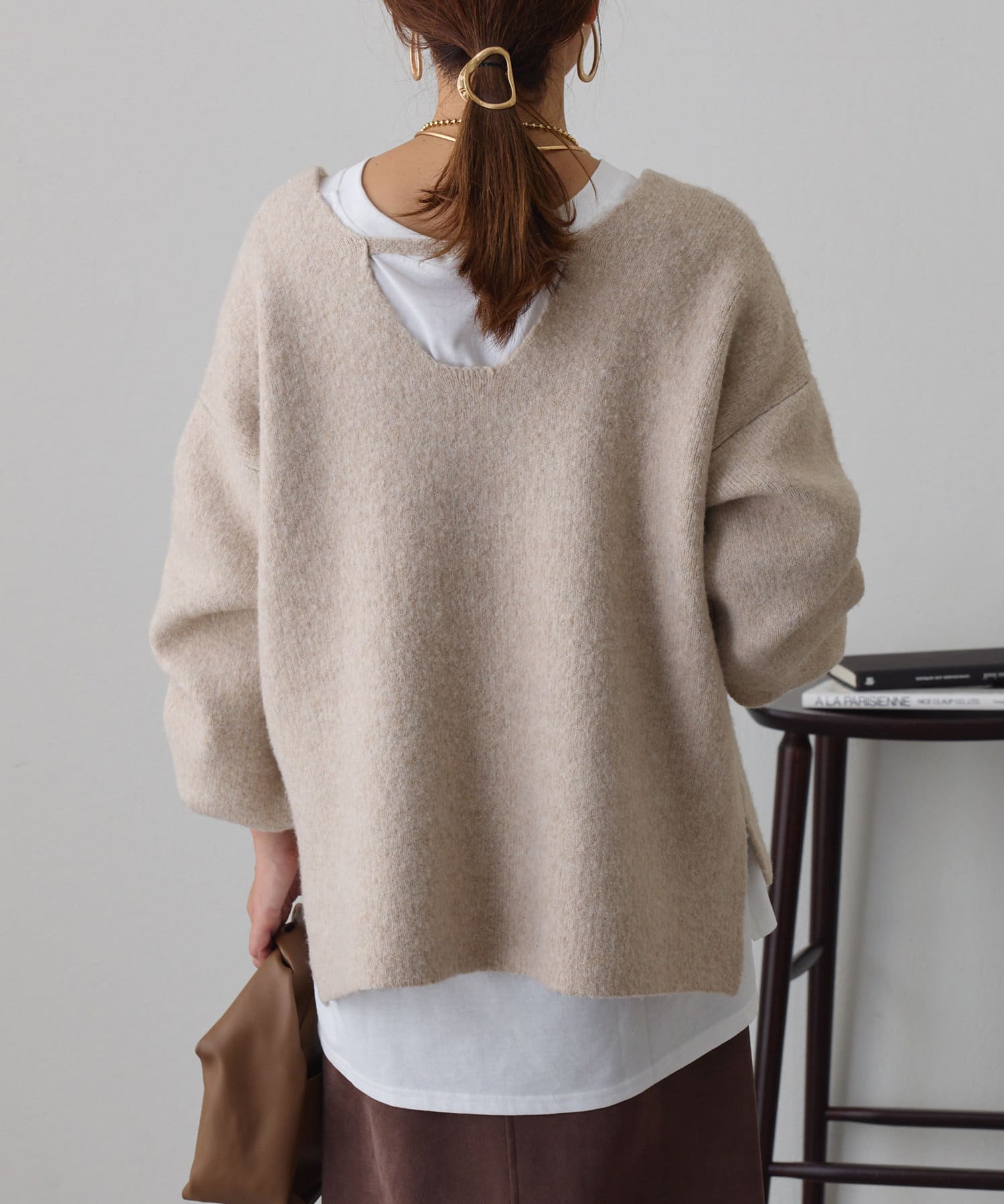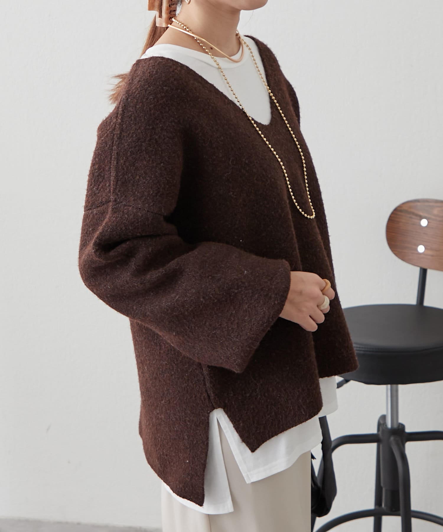 ・Vネックデザインなので顔回りをスッキリ見せてくれます!