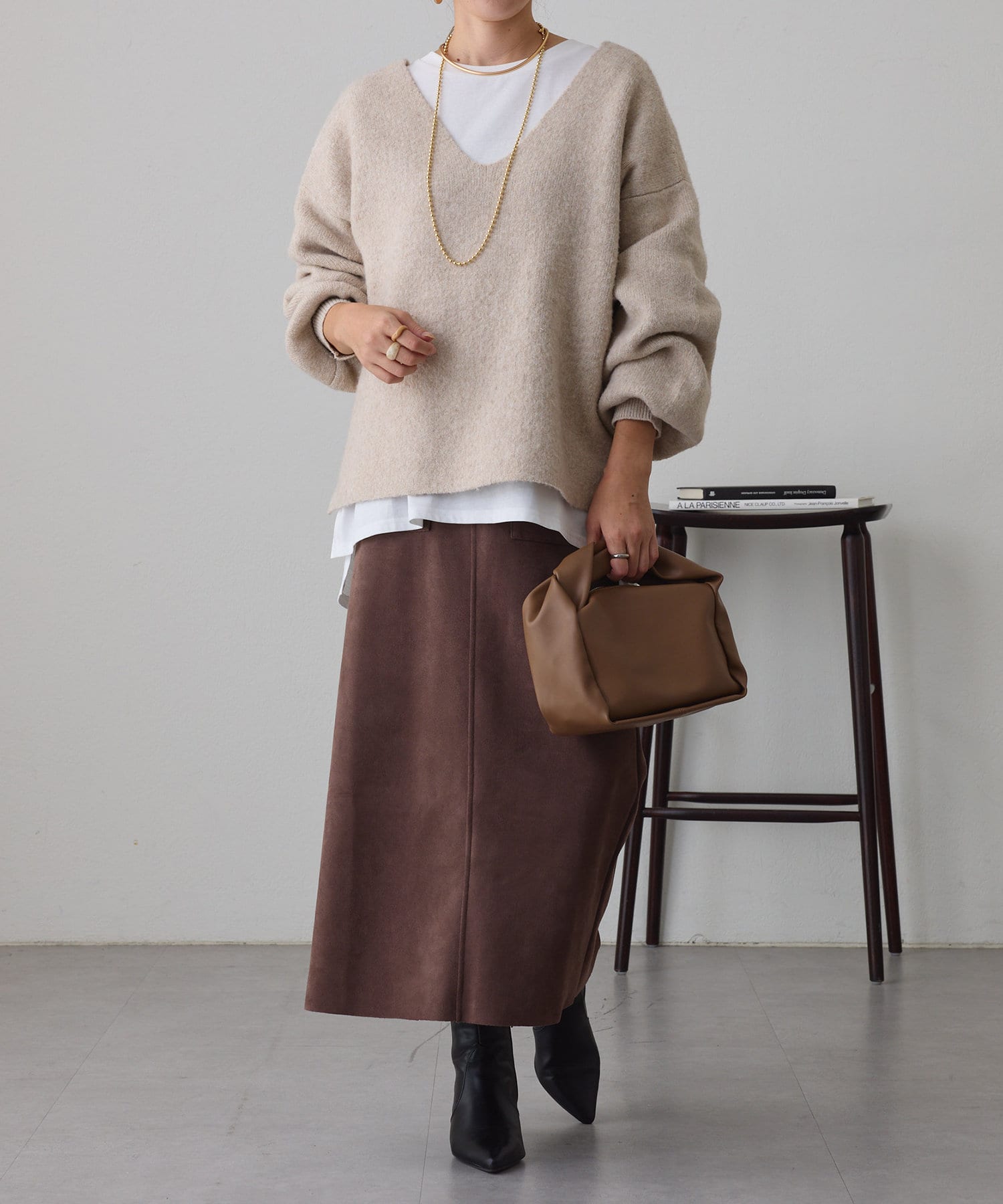 ・ナロースカートに合わせるとより女性らしく着ていただけます!