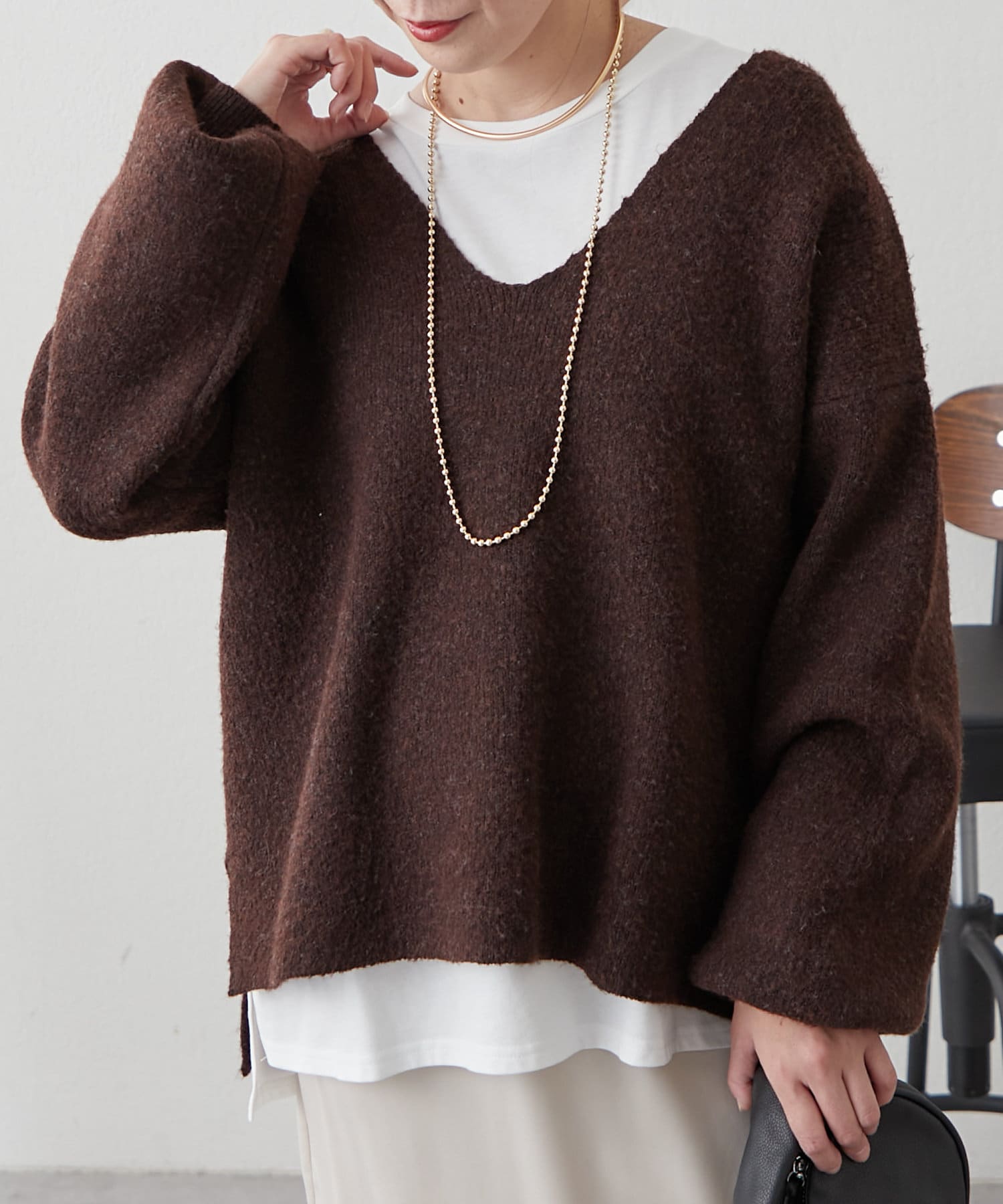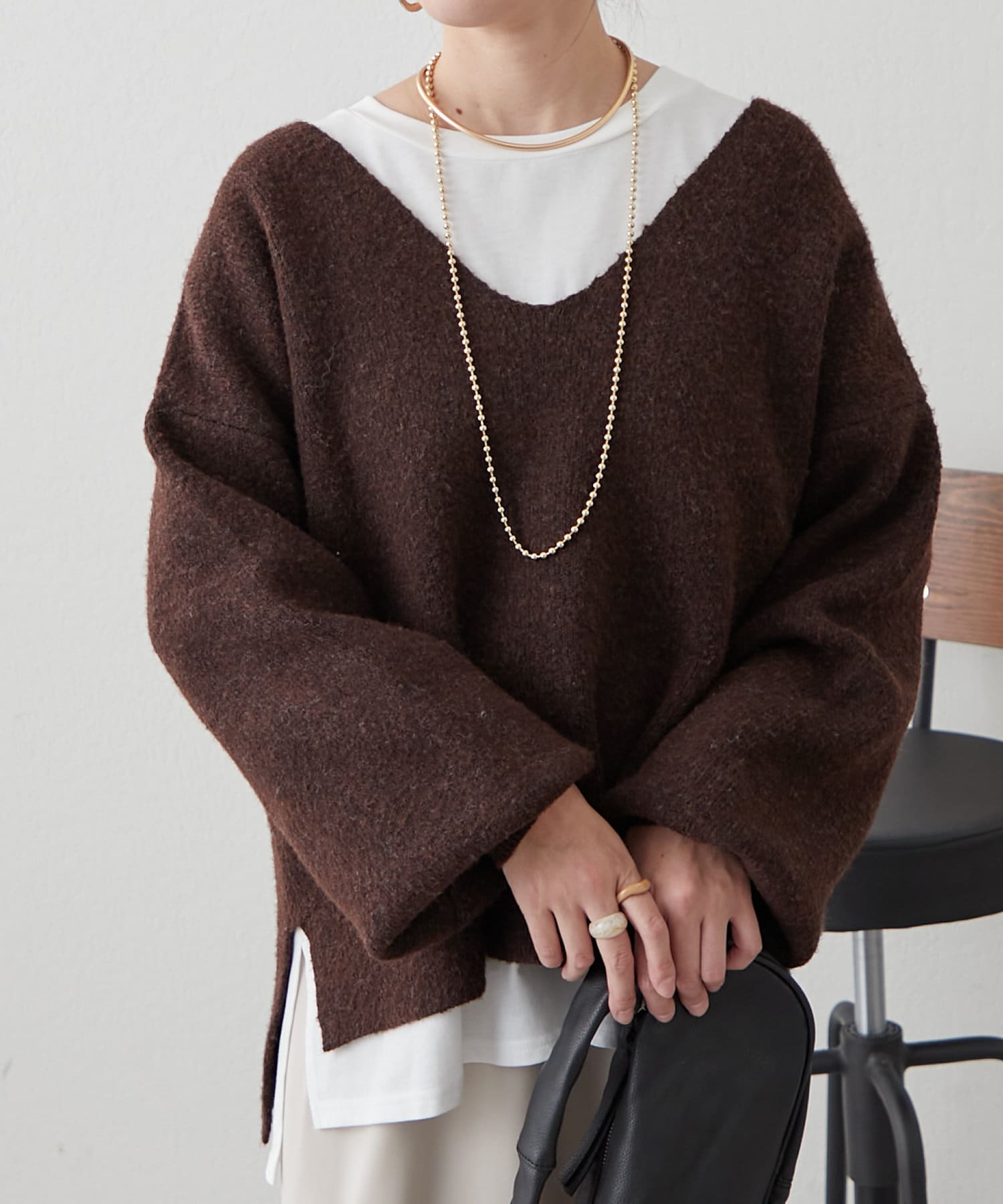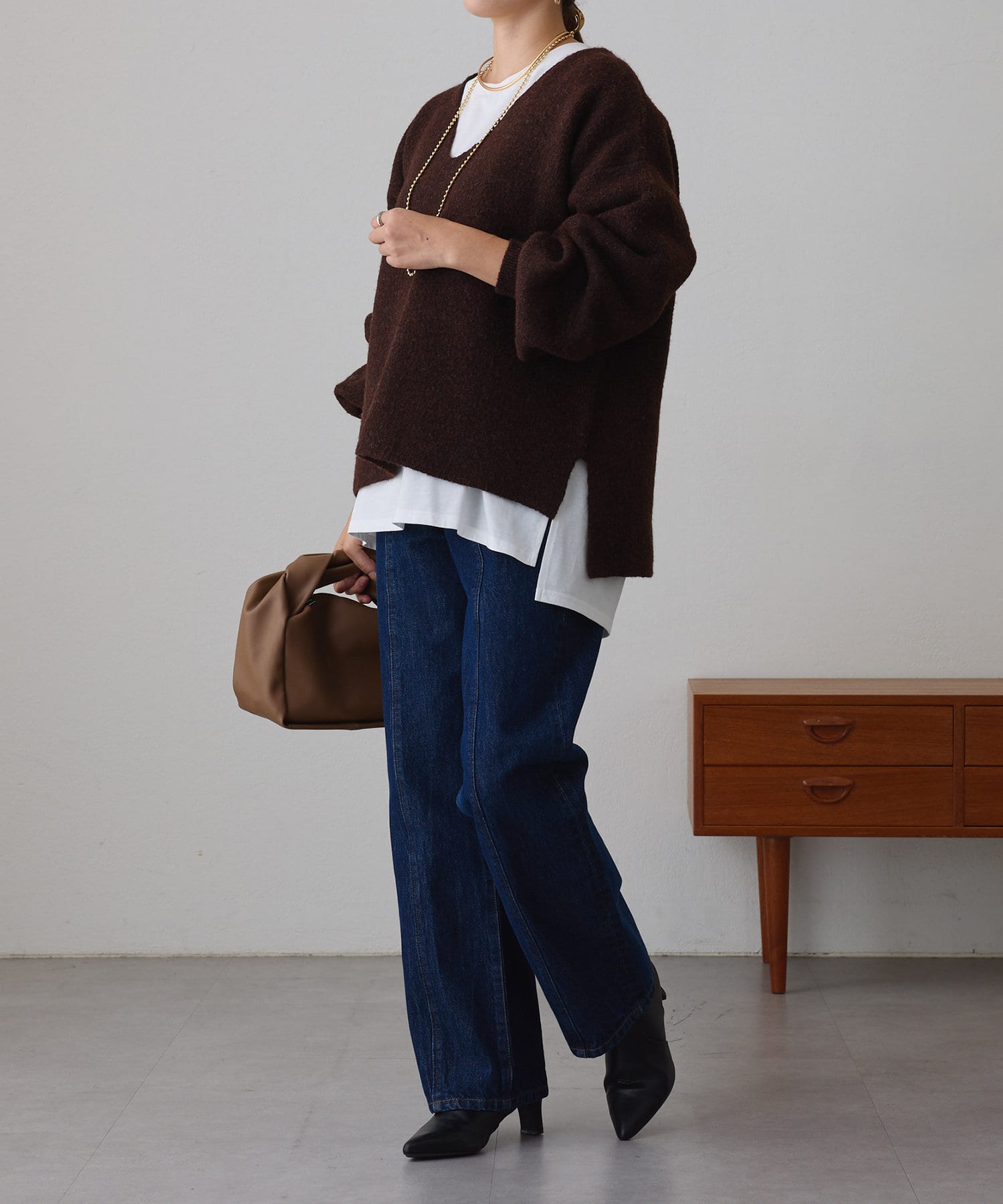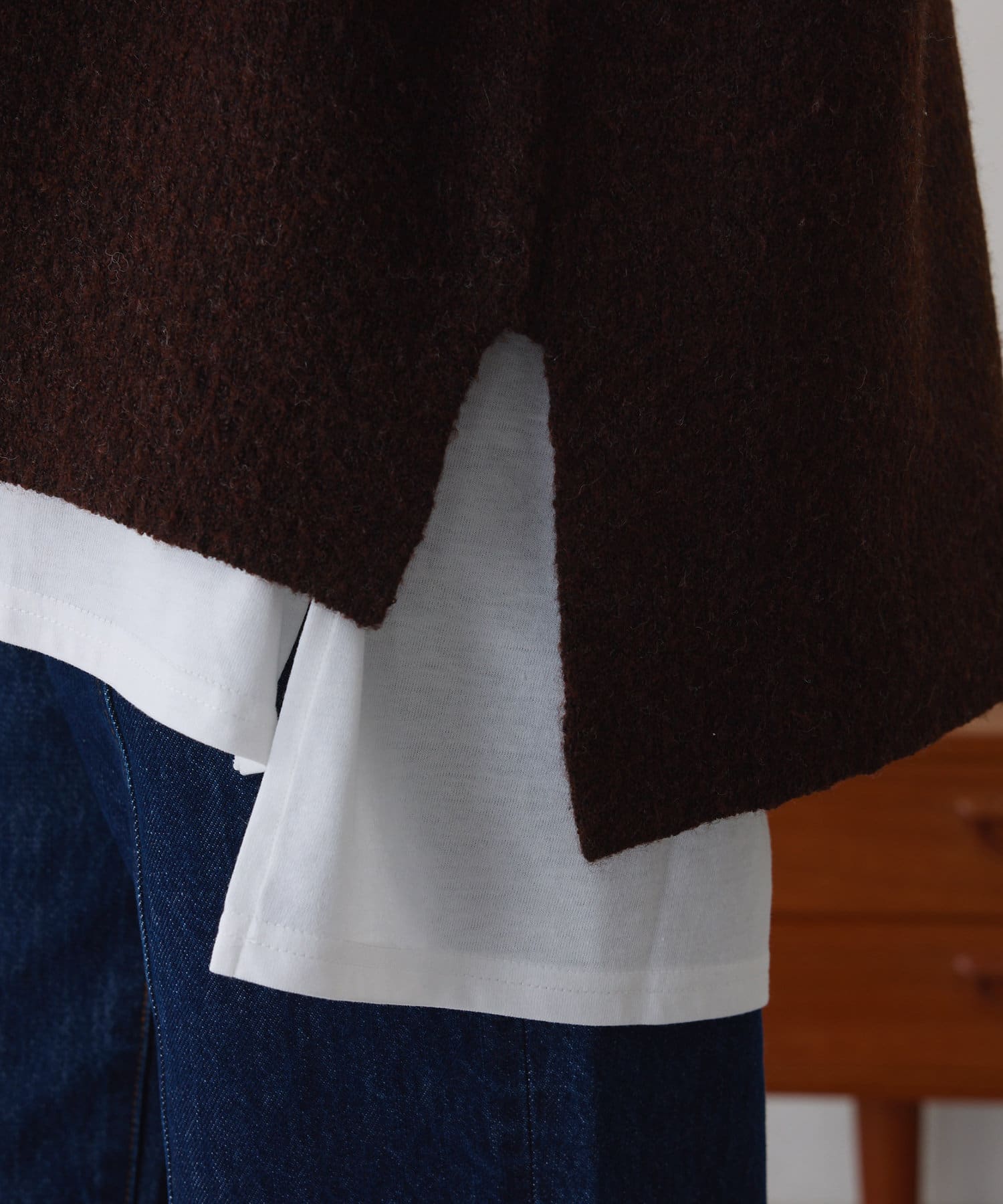 ・レイヤードになるような丈感のデザインなので簡単にオシャレ見えするのが嬉しいポイント!