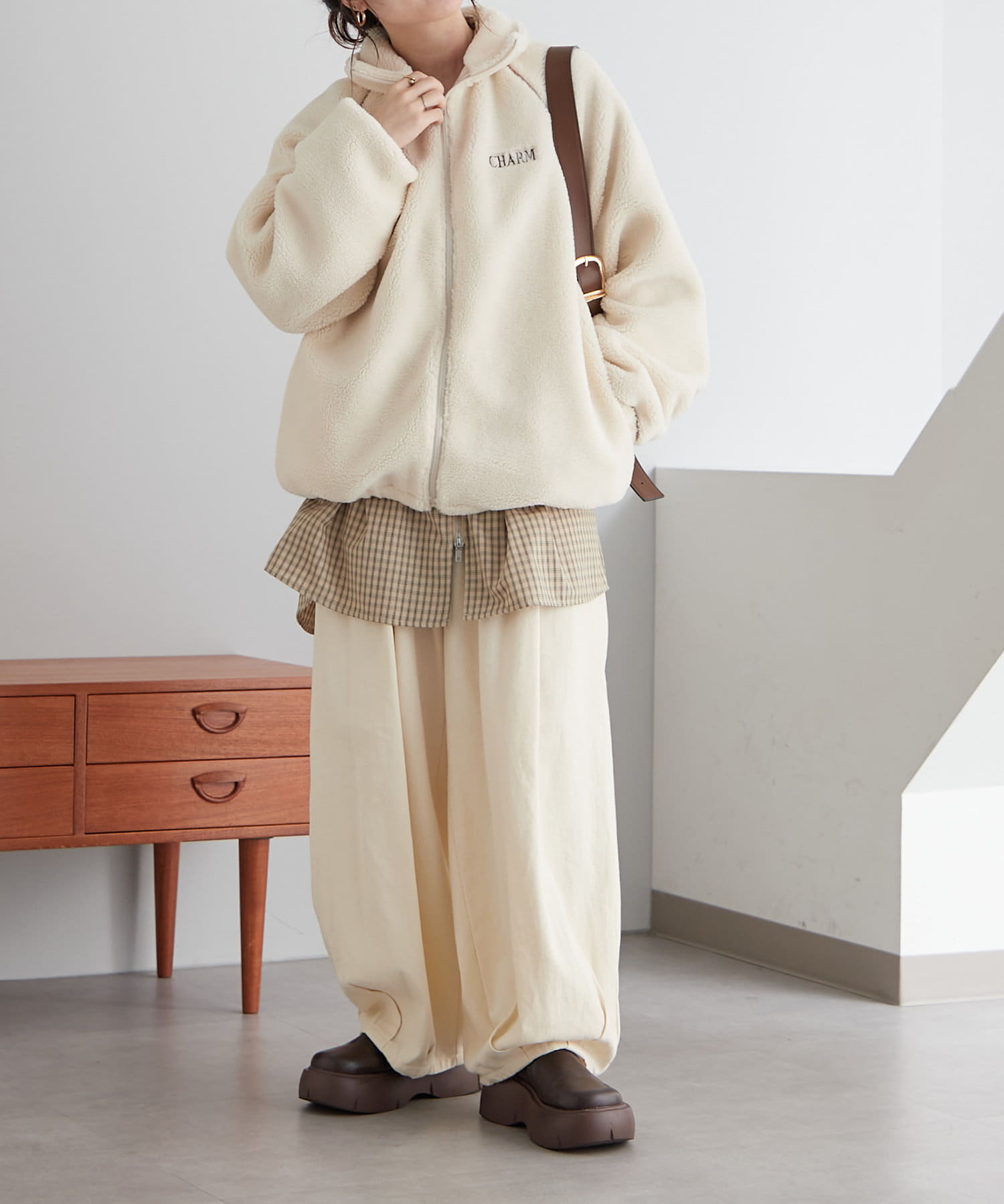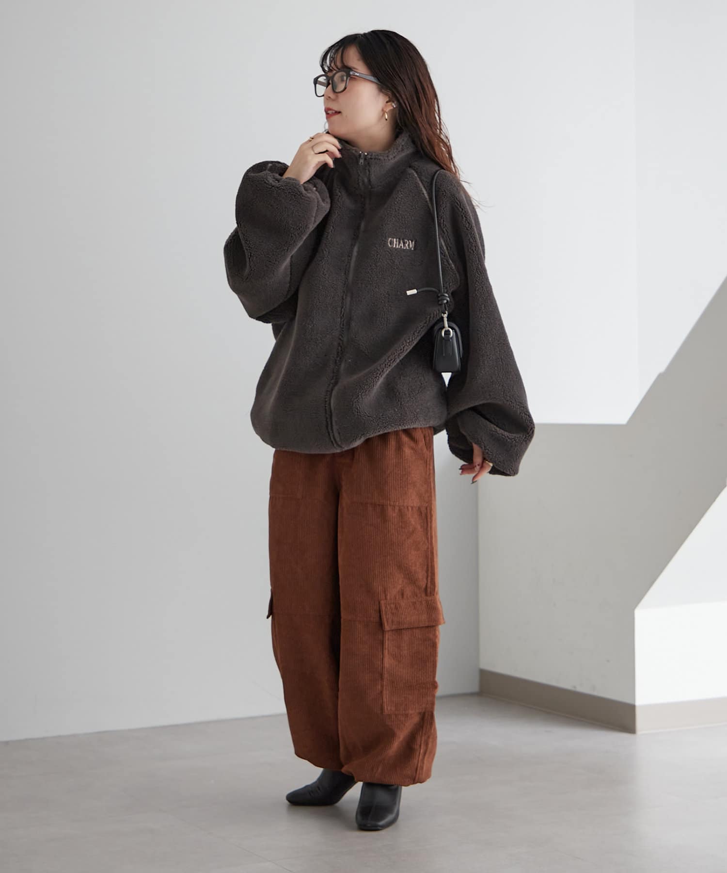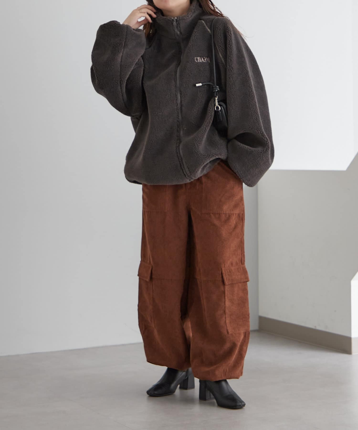 ・ゆるりとしたカーゴパンツやスラックス、デニムに合わせたメンズライクなカジュアルコーデがおすすめ。