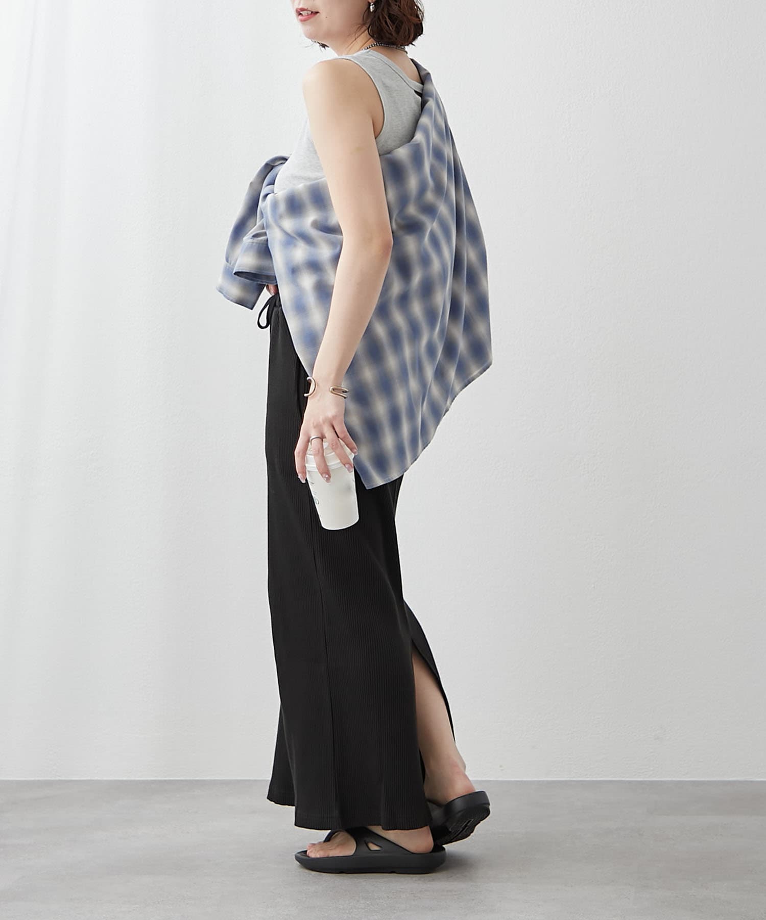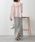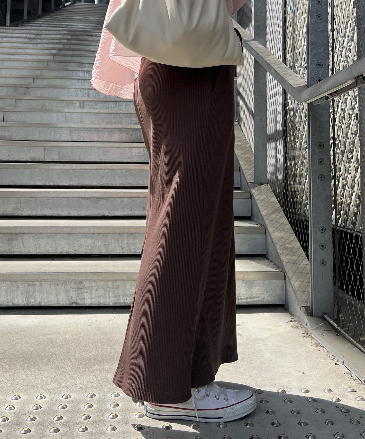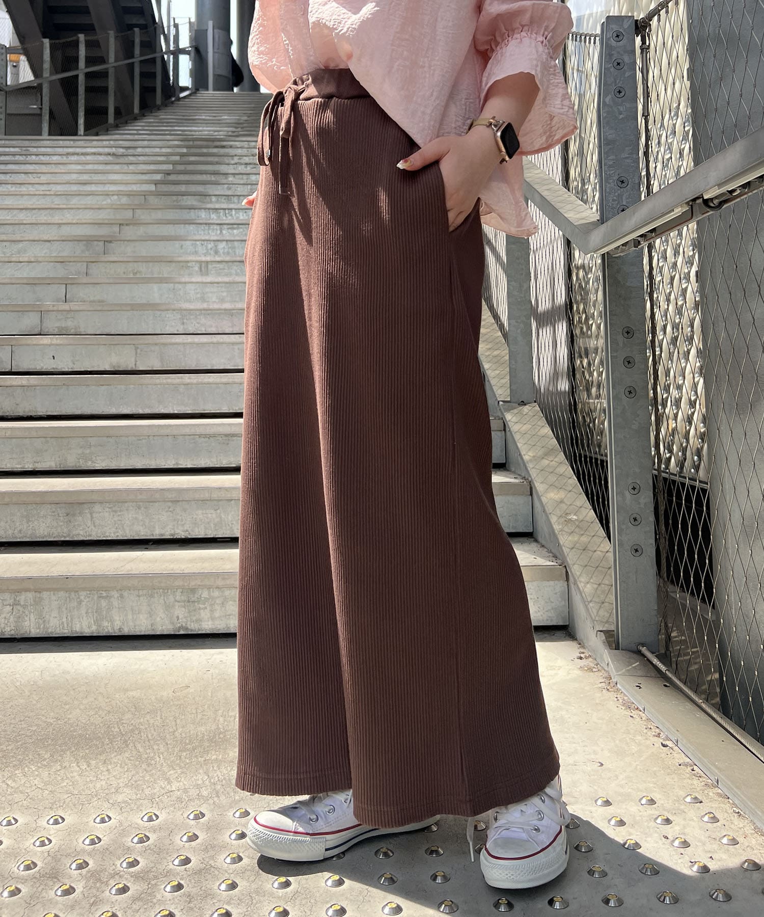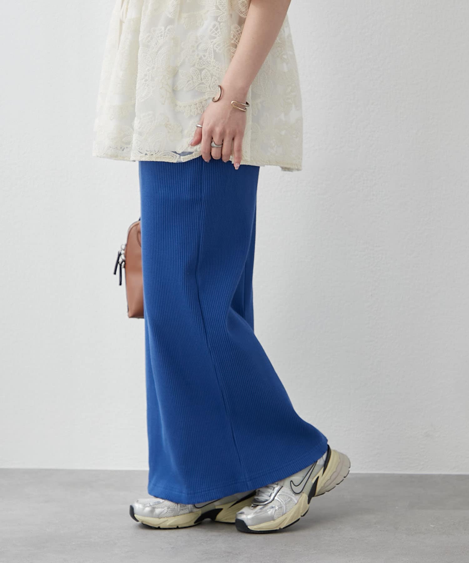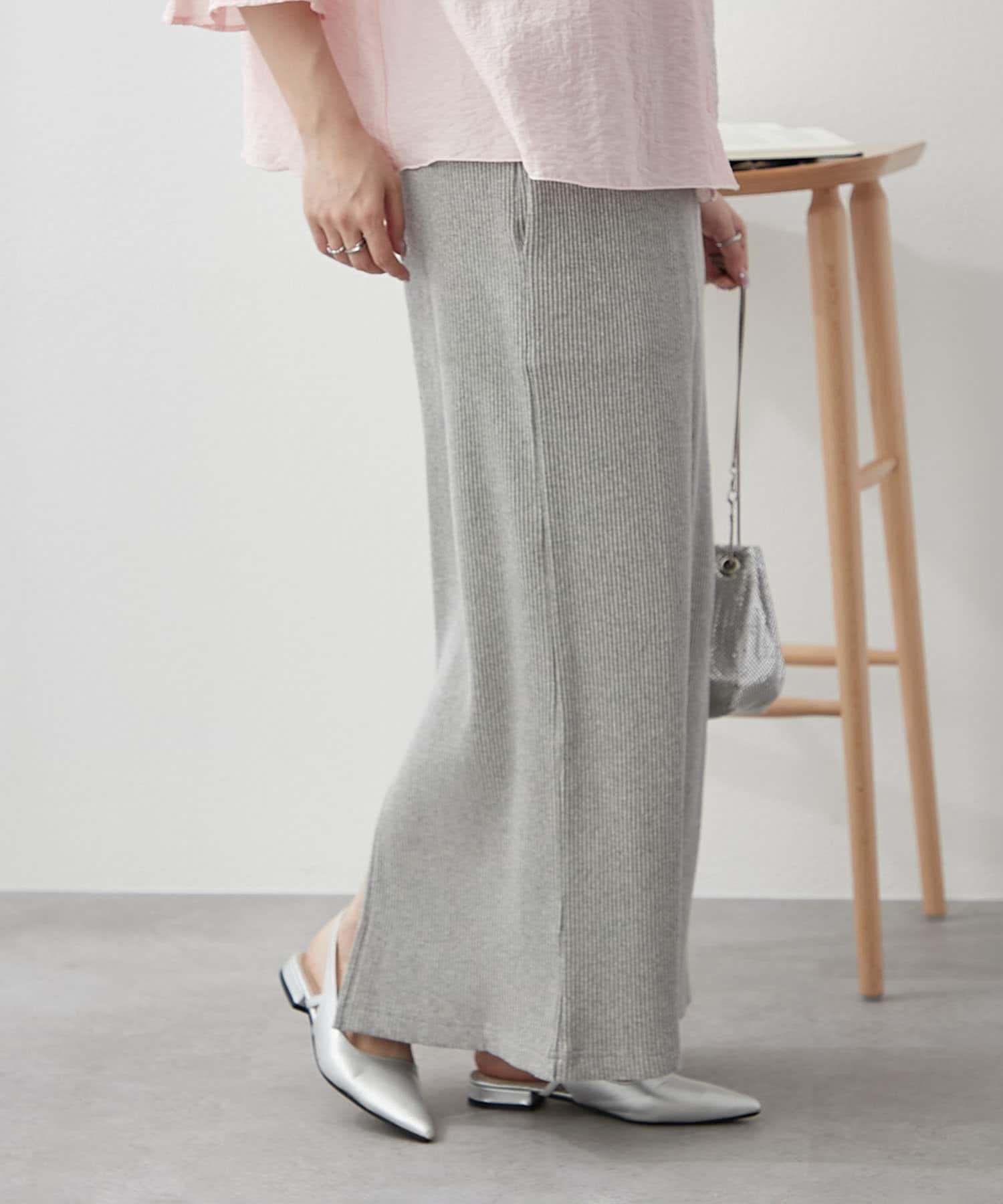 ・ウエスト総ゴム&リブ素材のらくちんスカート