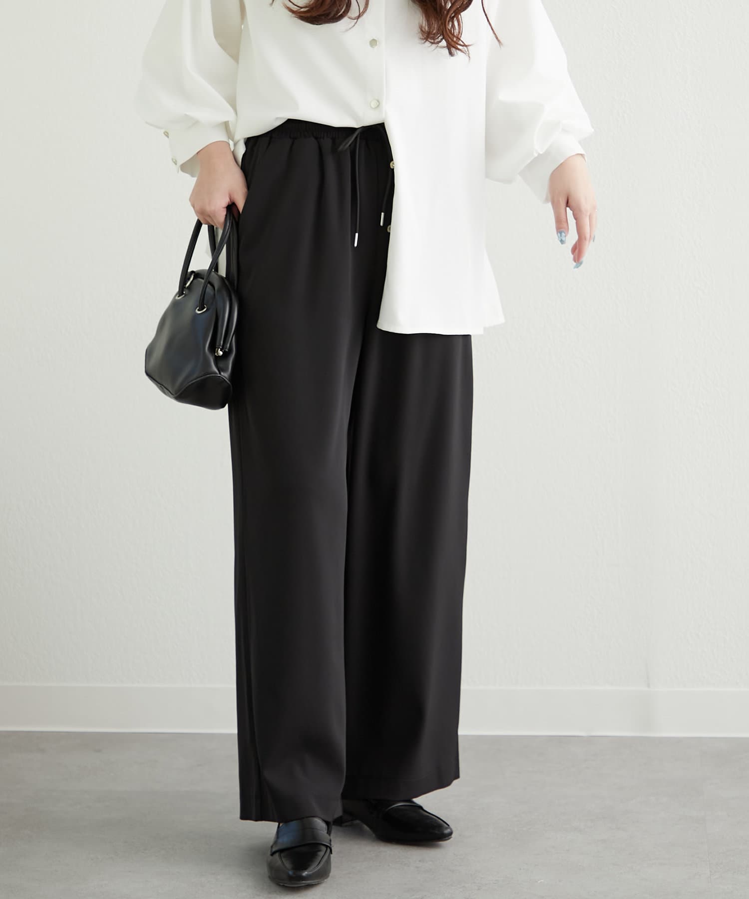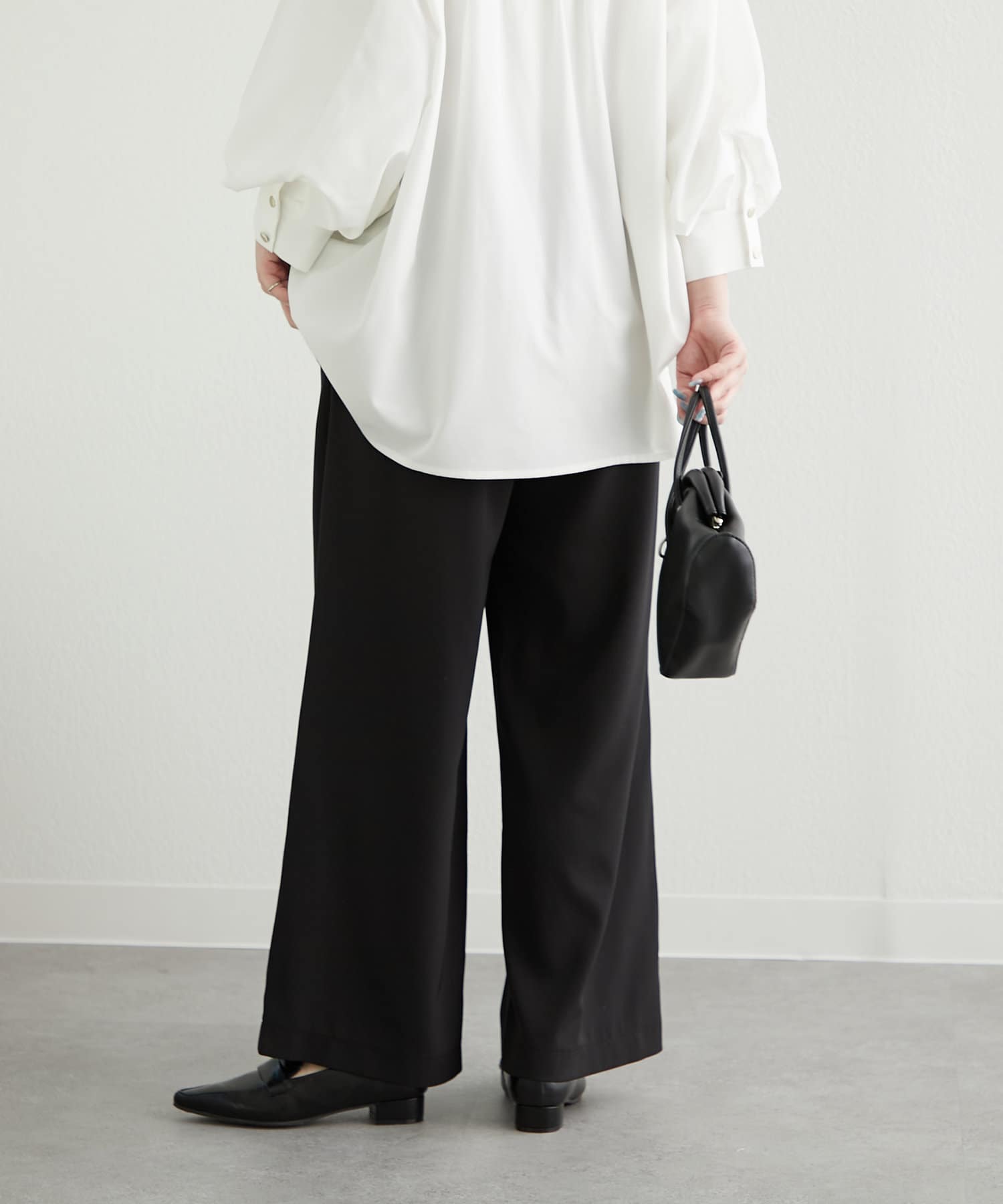 ・綺麗なワイドなシルエットがきれい見えするパンツ