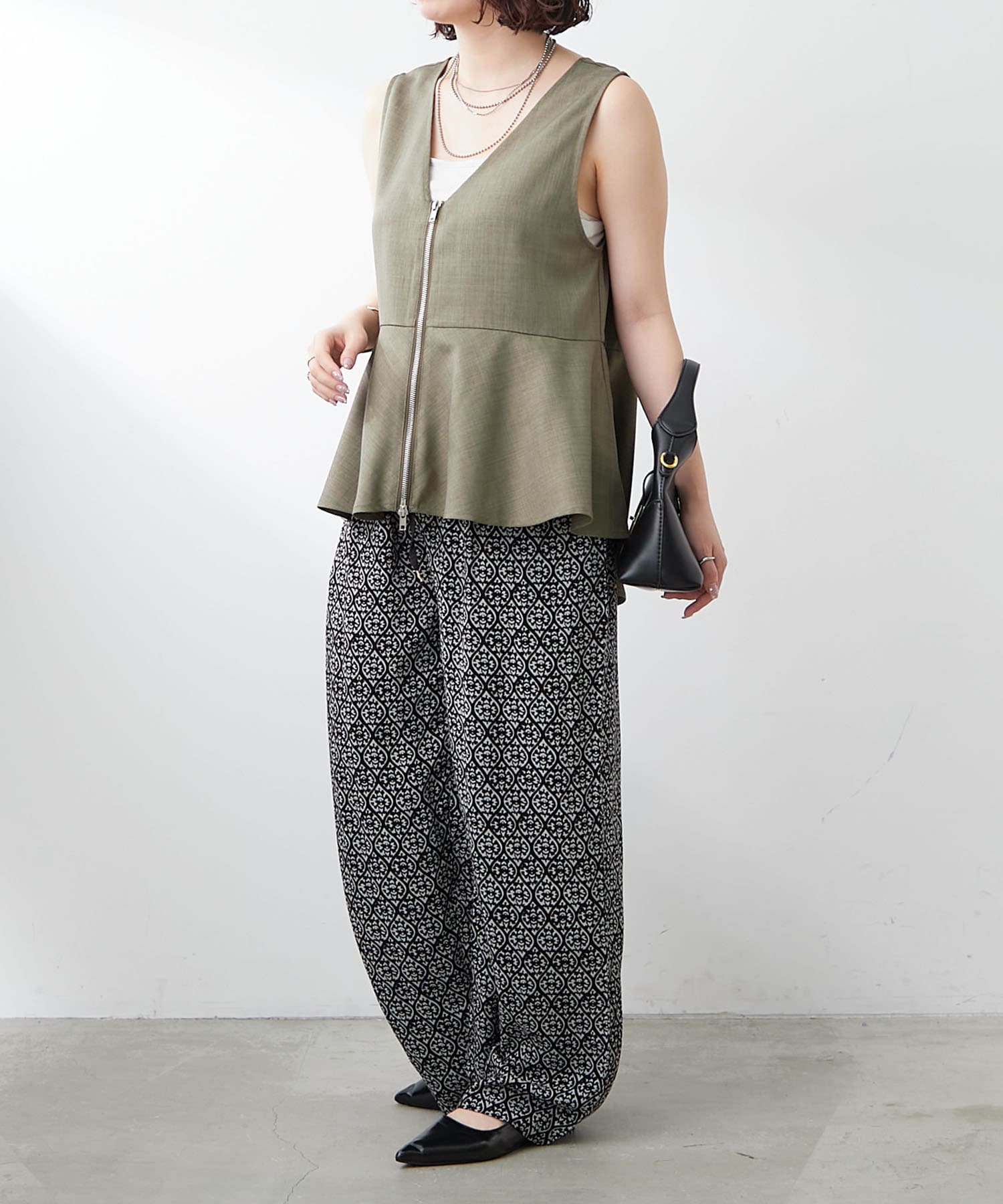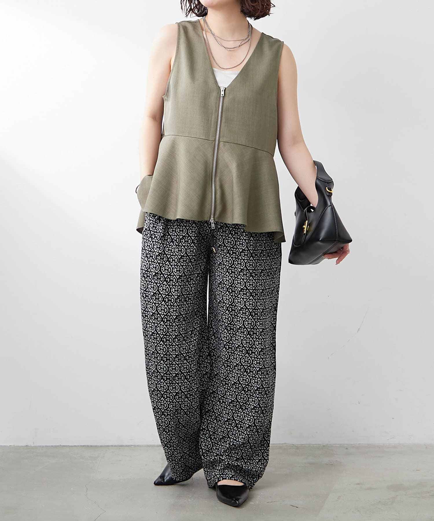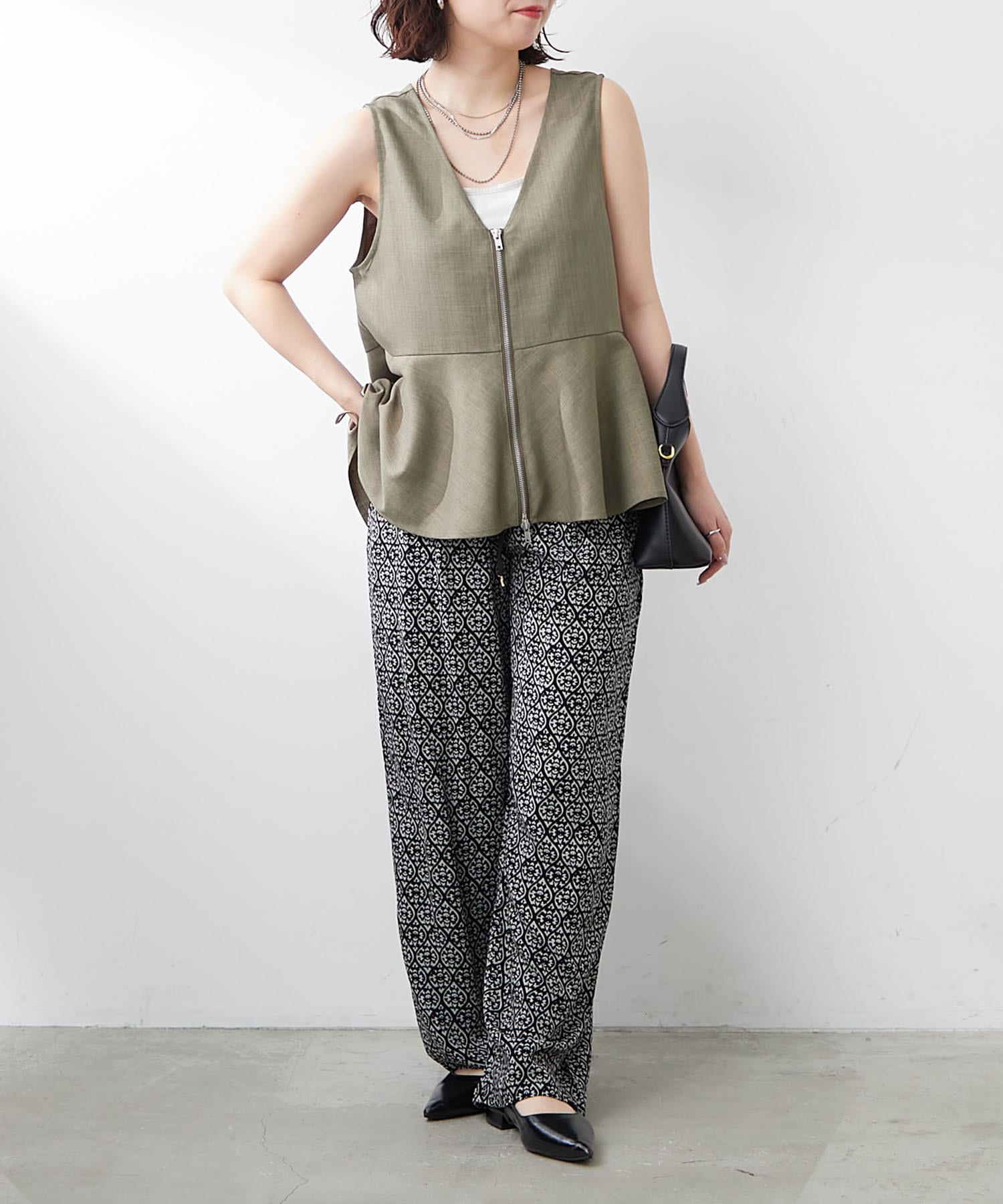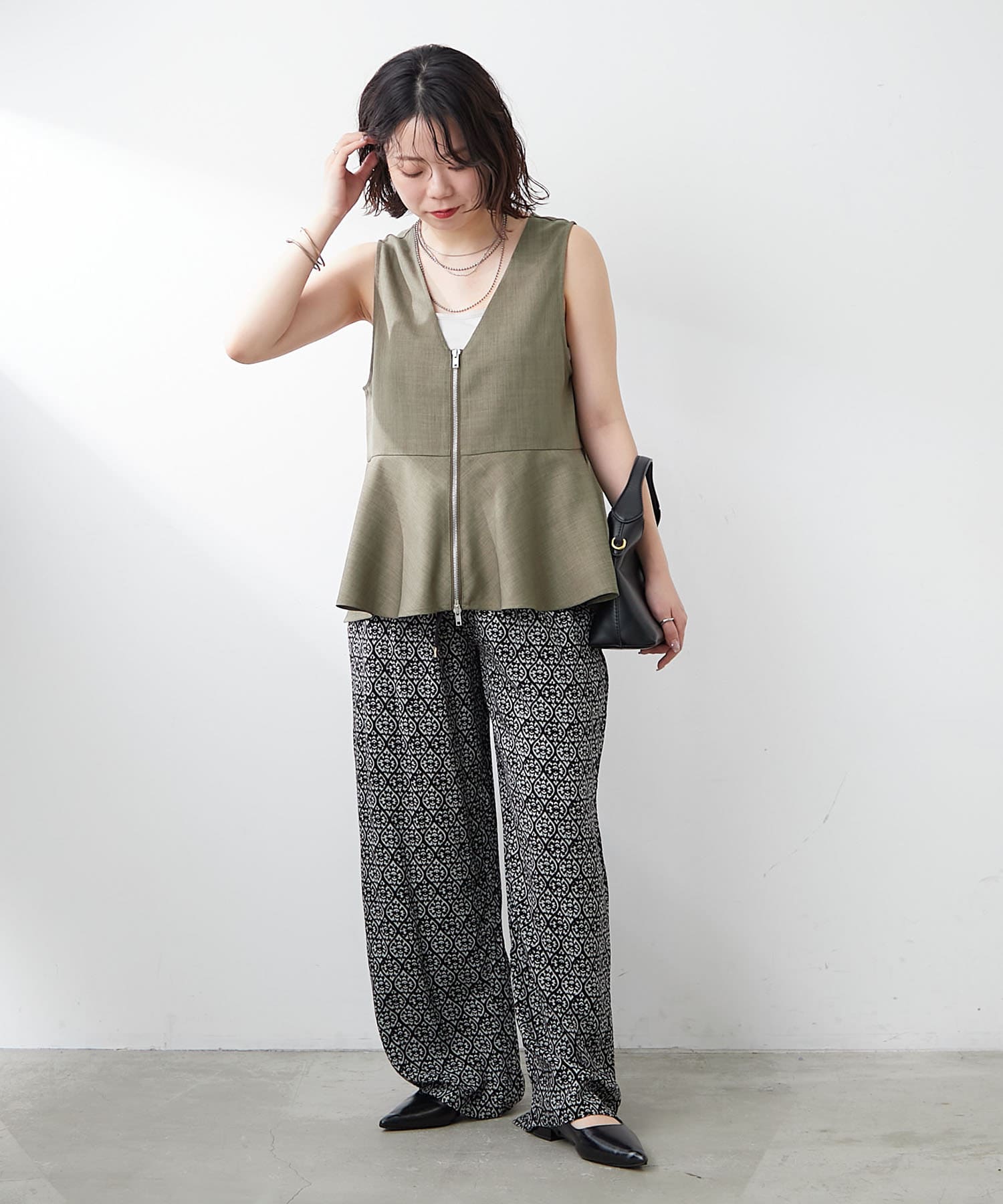 ・スタイリングのアクセントにぴったりなアイテムなので、トップスはシンプルなものがおすすめです。