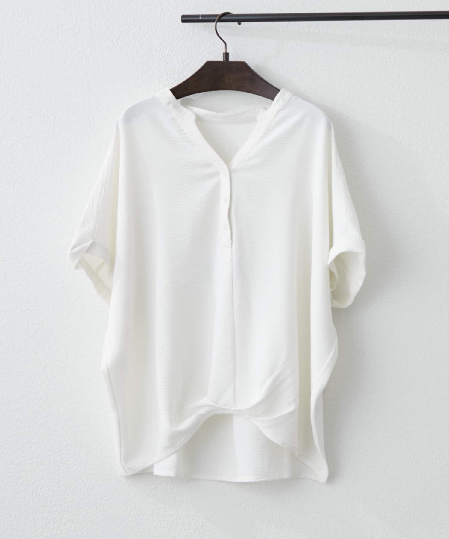 ・Vタイプのヘンリーネックデザインで顔周りスッキリ見え◎