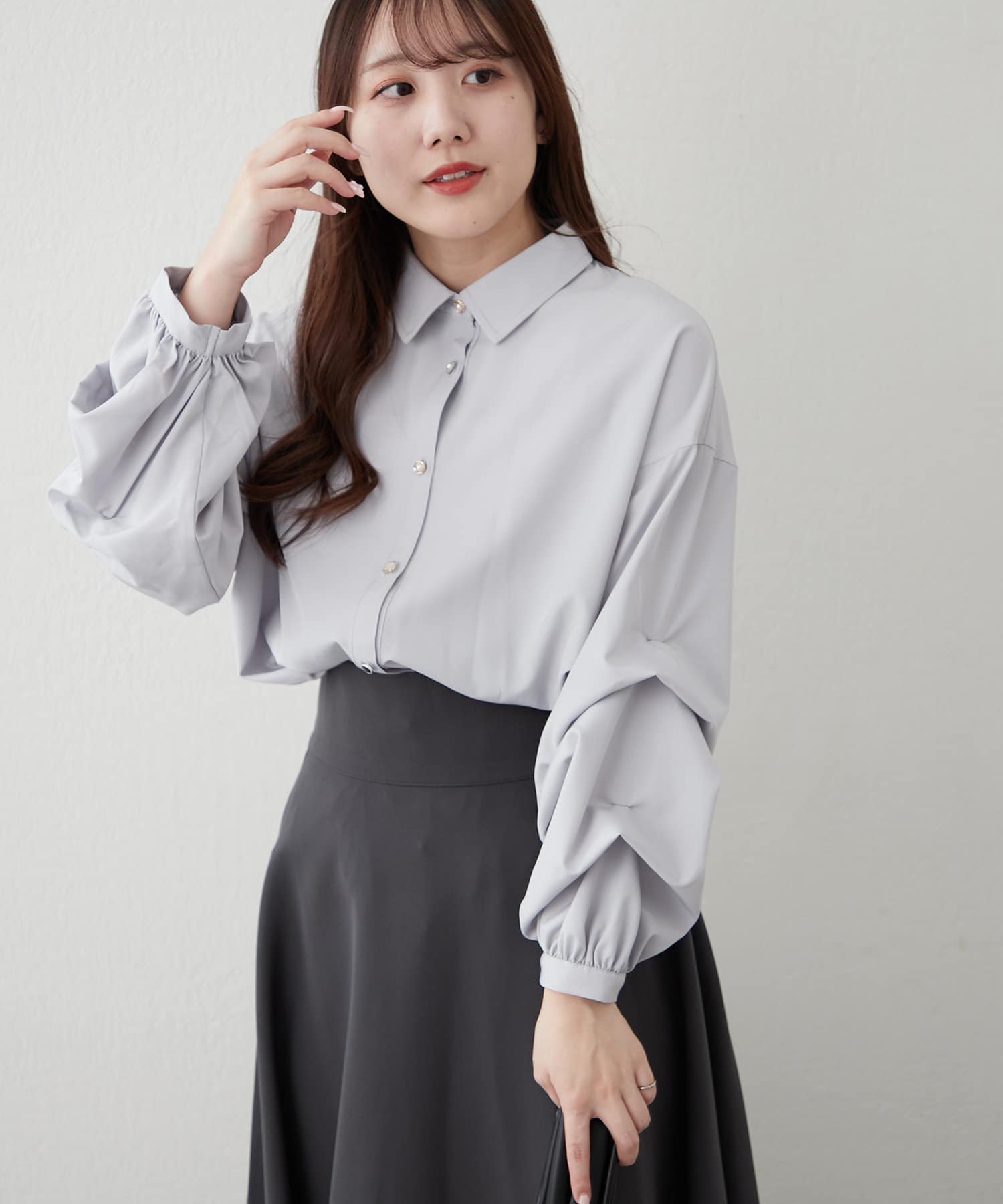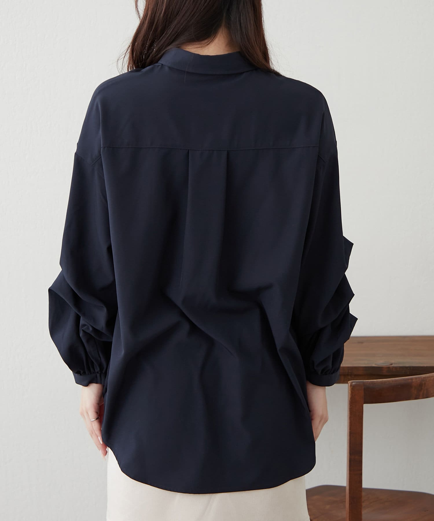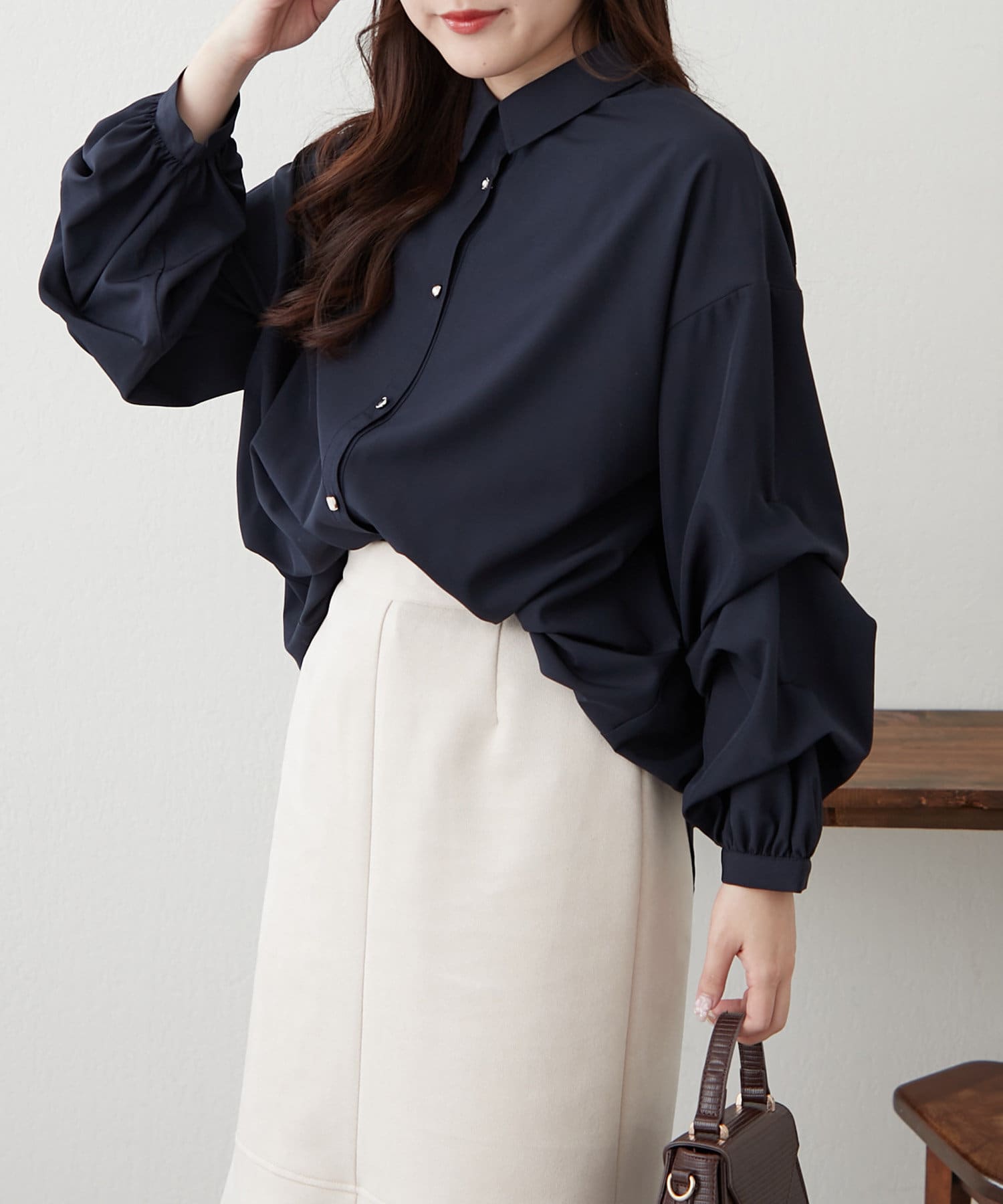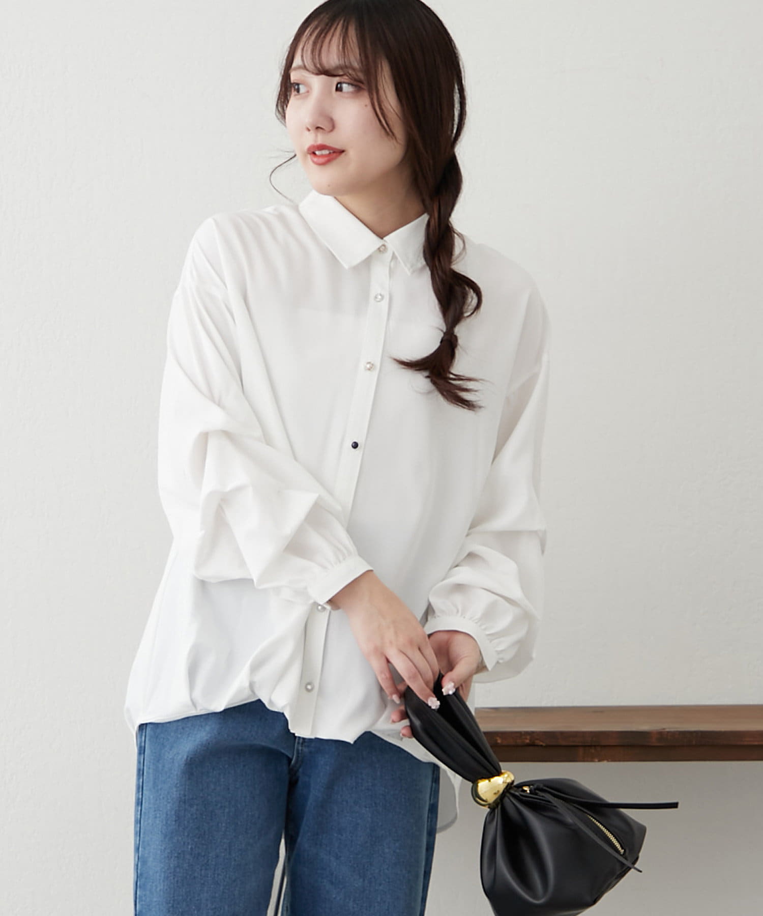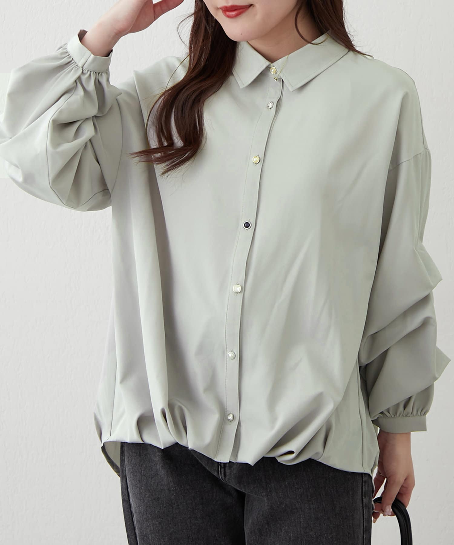 ・お袖のくしゅっとしたデザインと、裾のタックデザインがお洒落なブラウス。