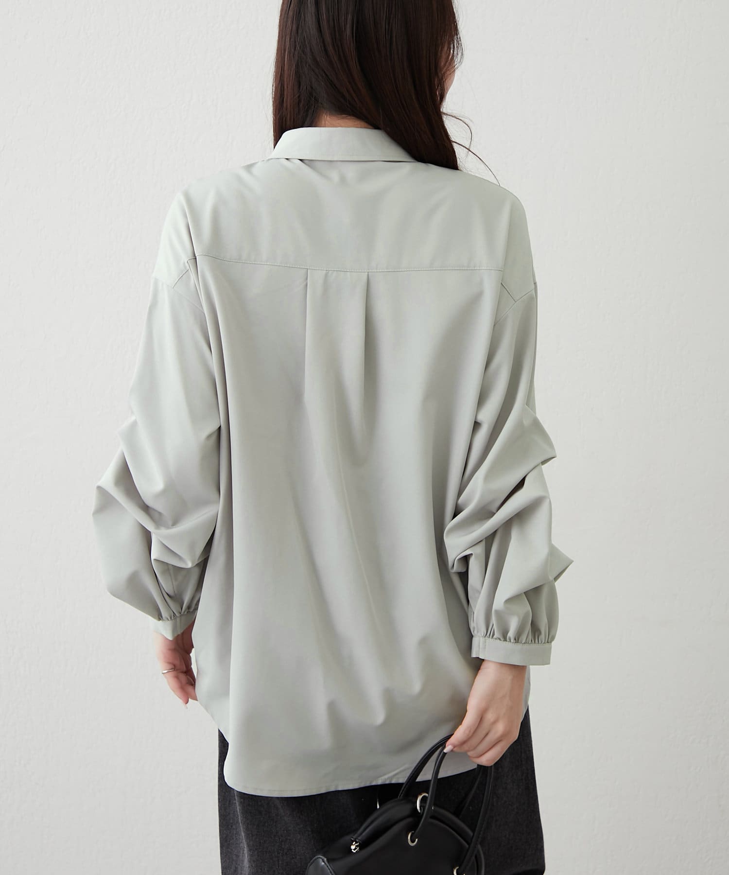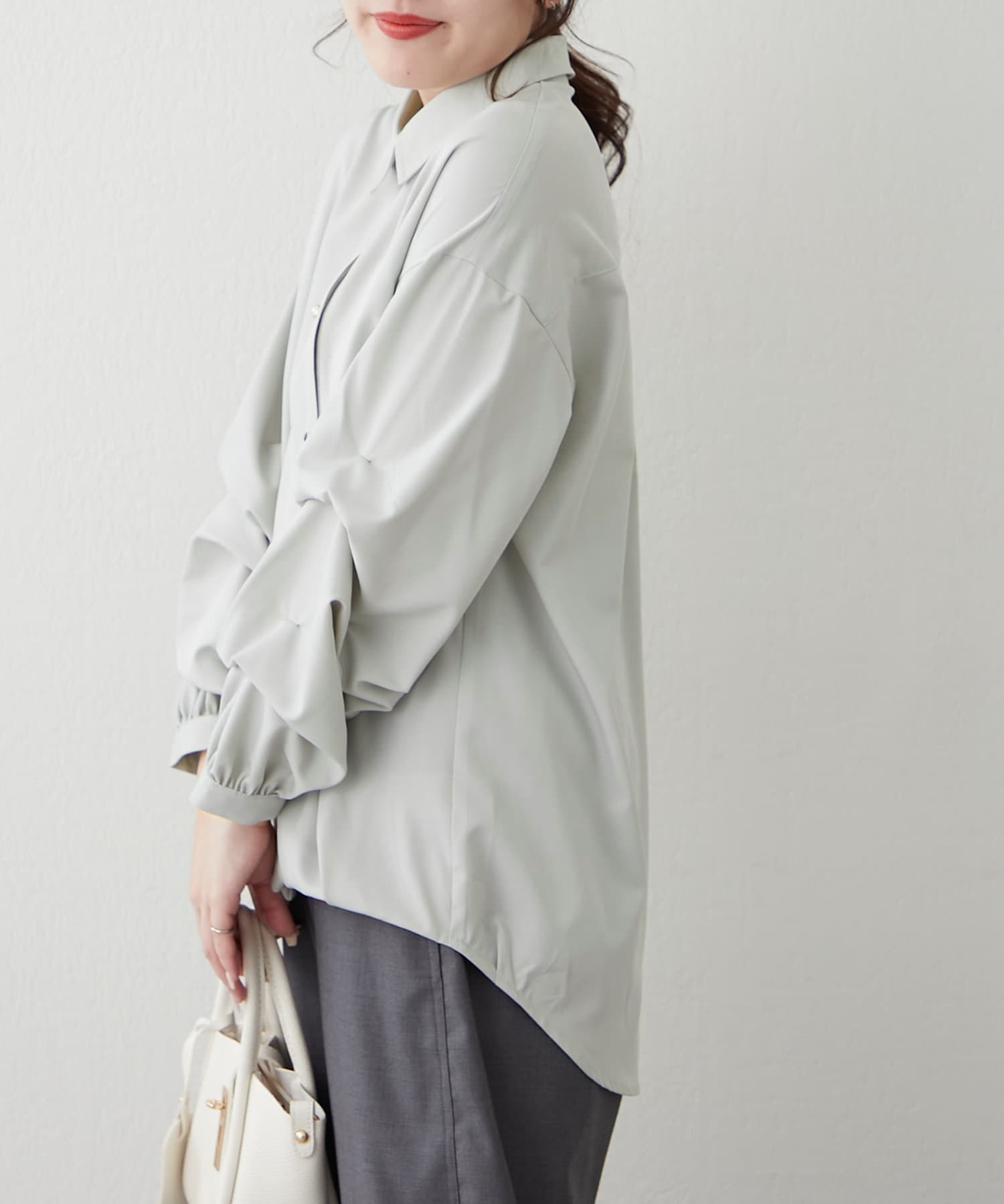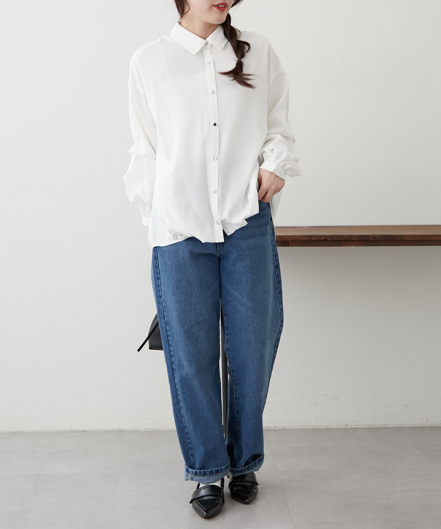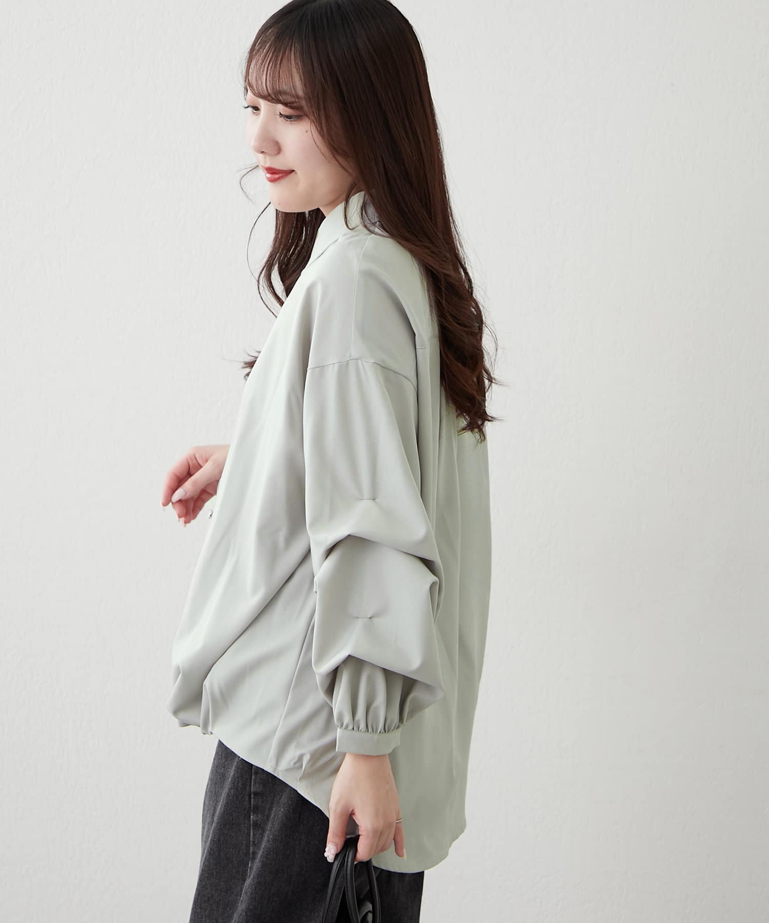 ・お袖のくしゅっとしたデザインと、裾のタックデザインがお洒落なブラウス。