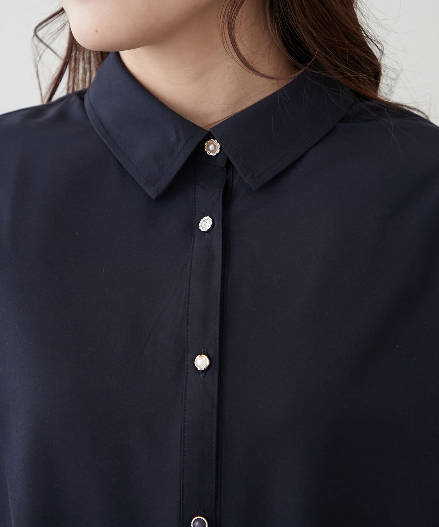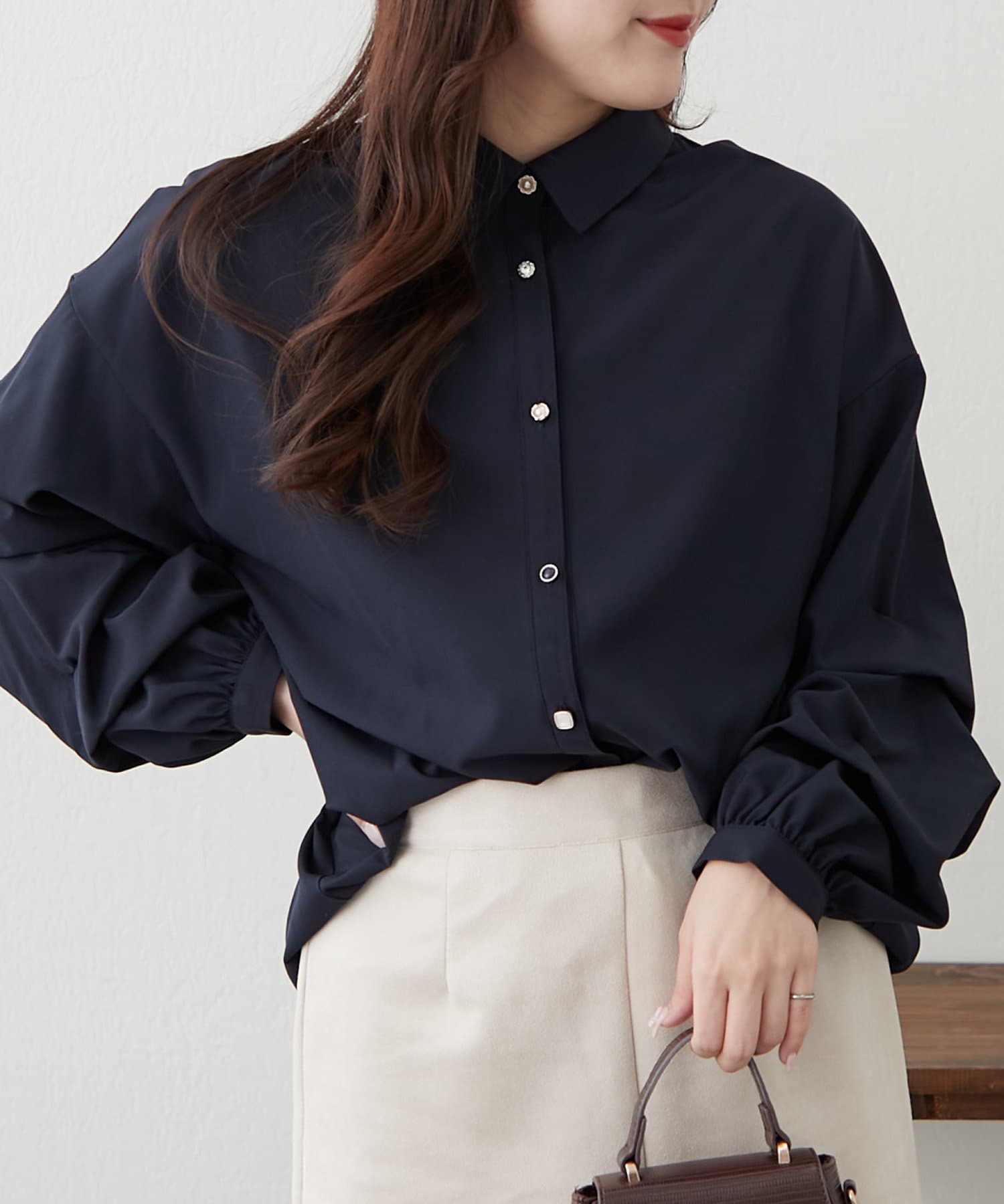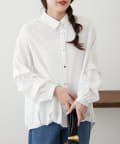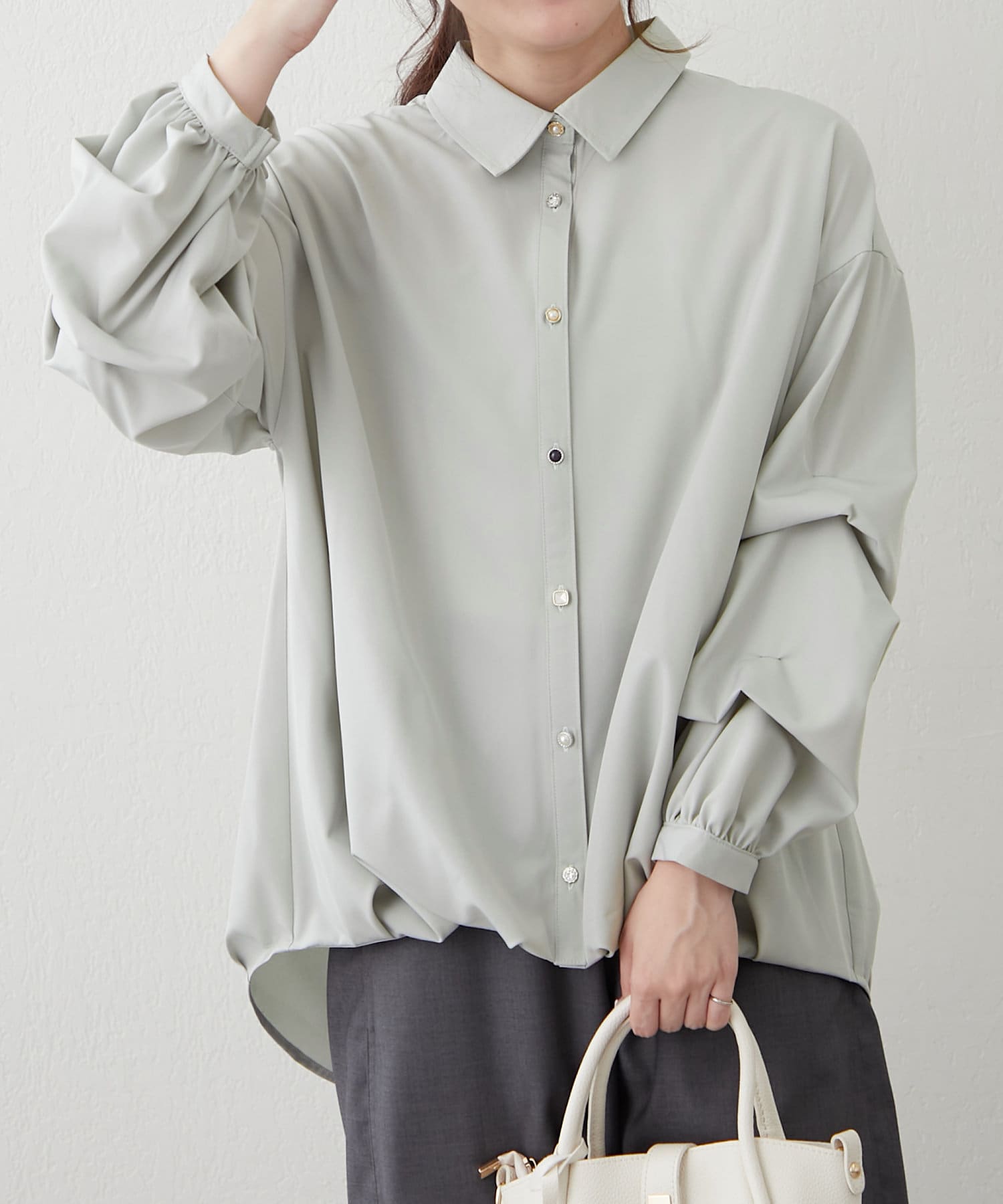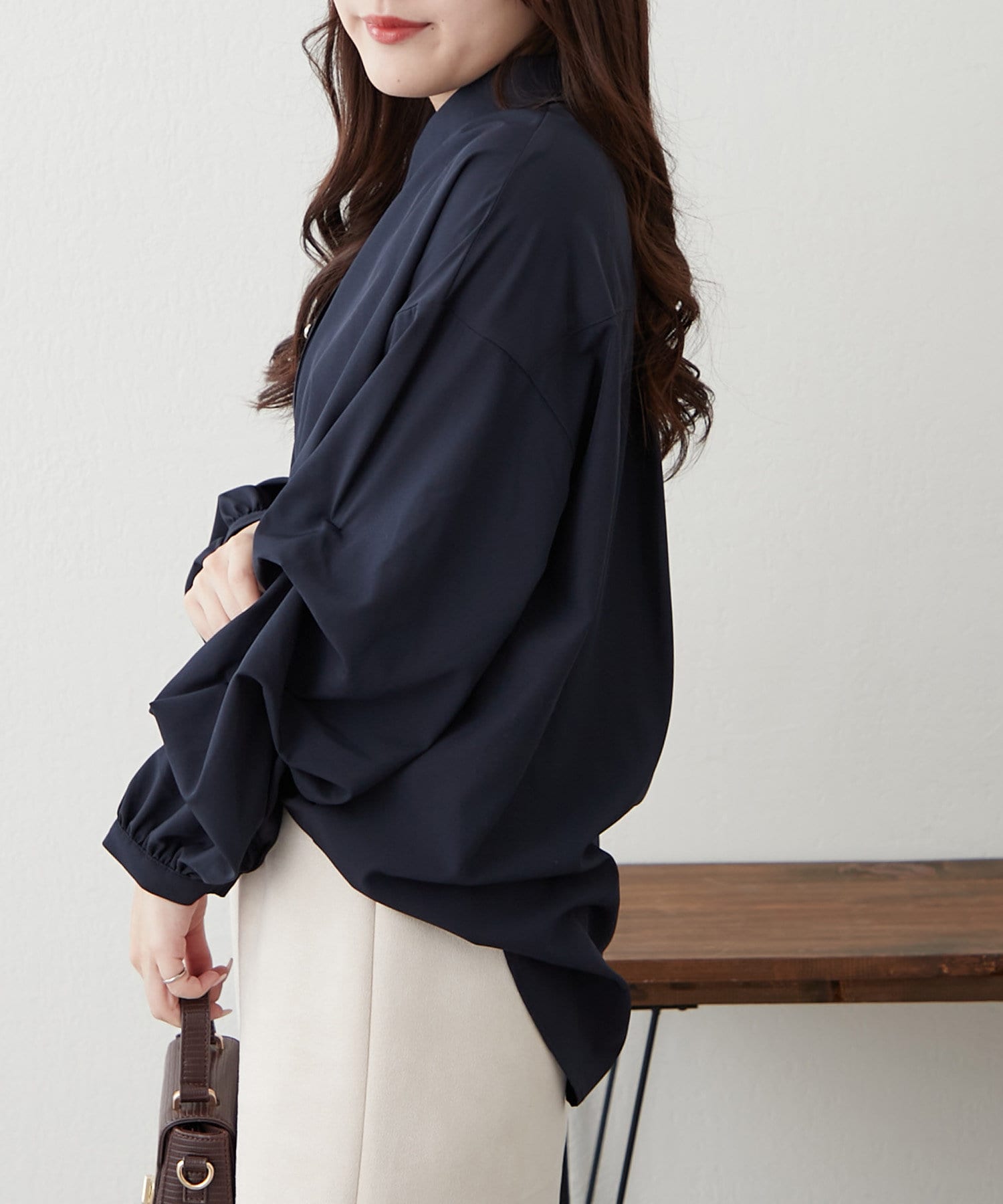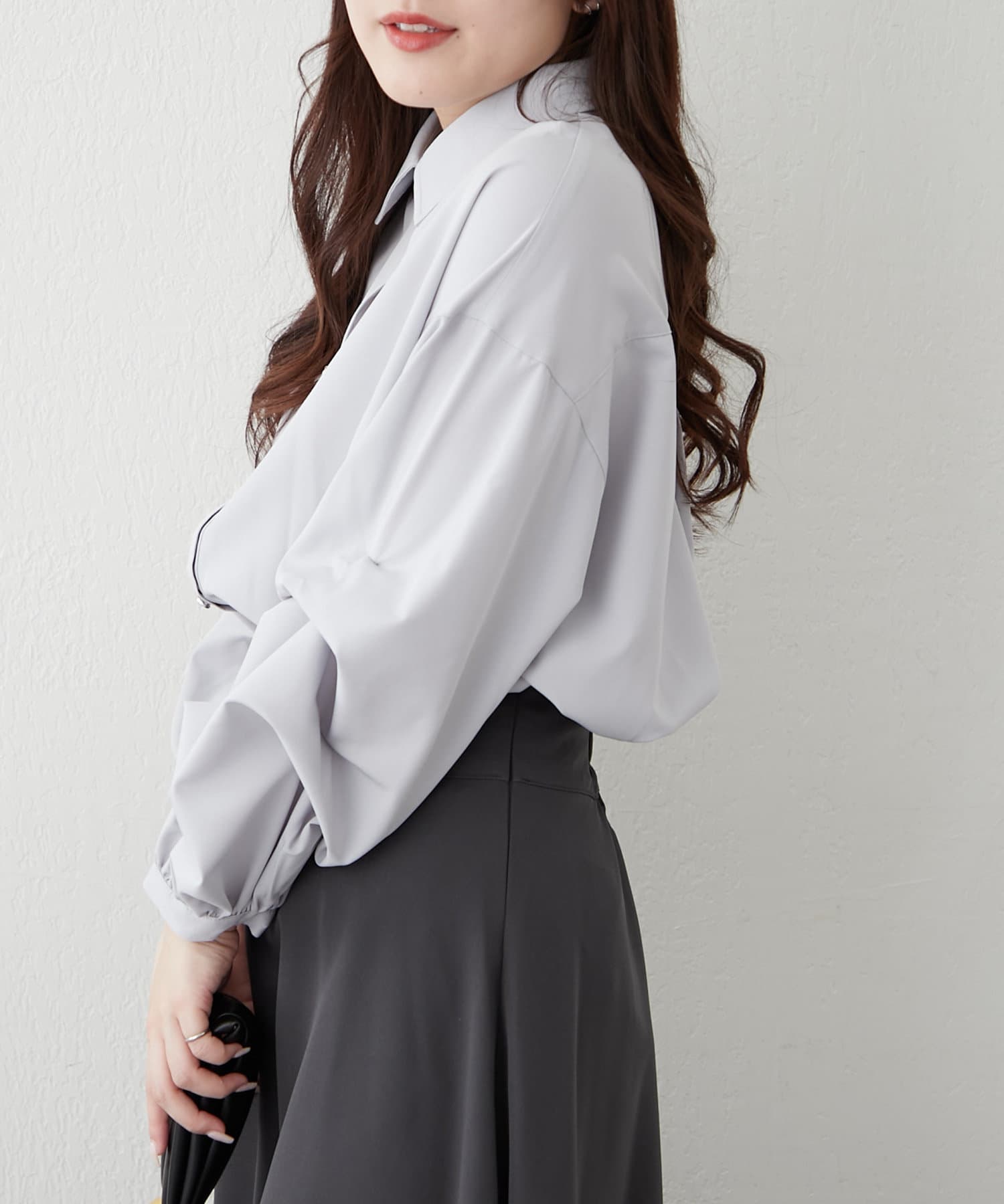 ・お袖のくしゅっとしたデザインと、裾のタックデザインがお洒落なブラウス。