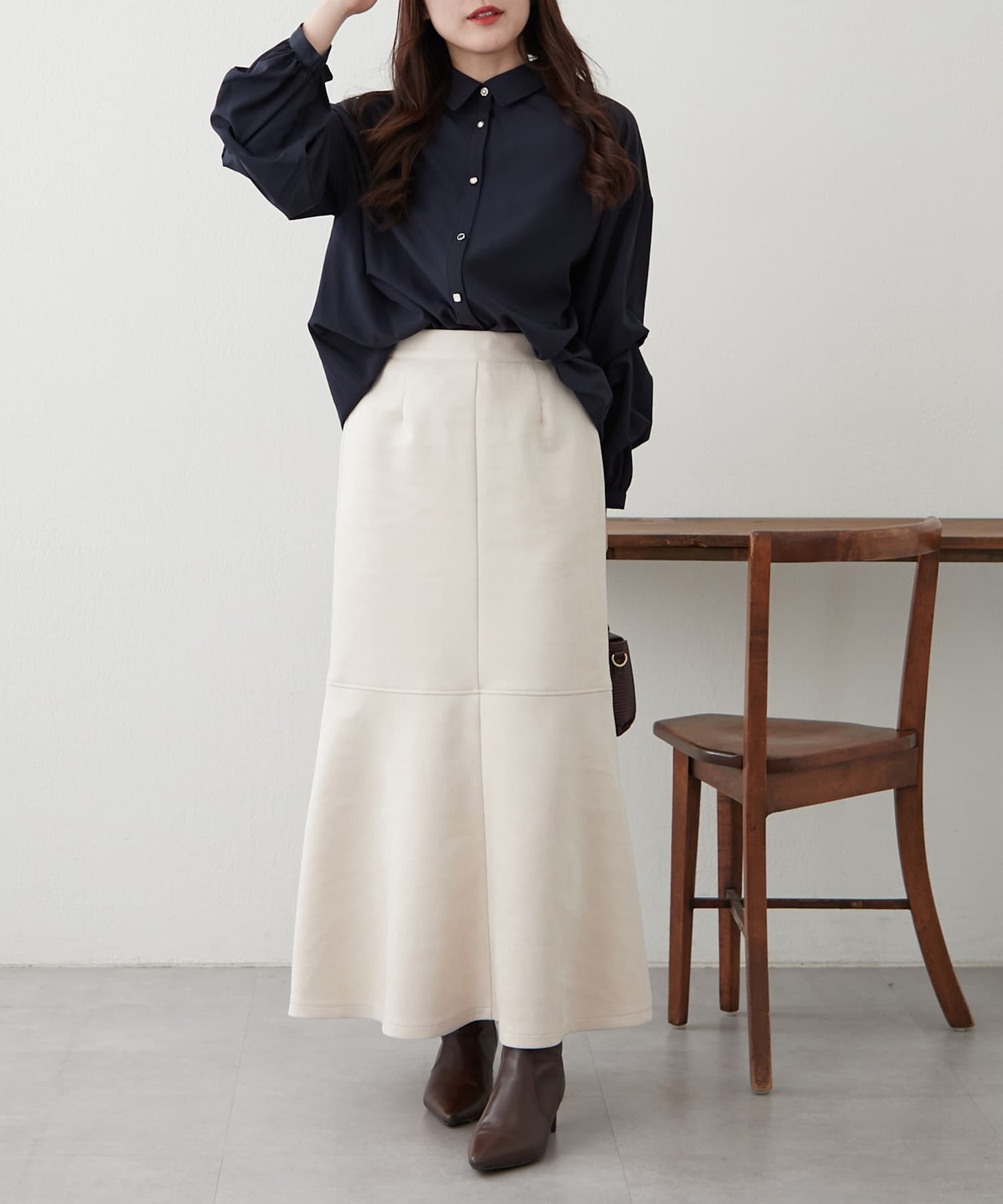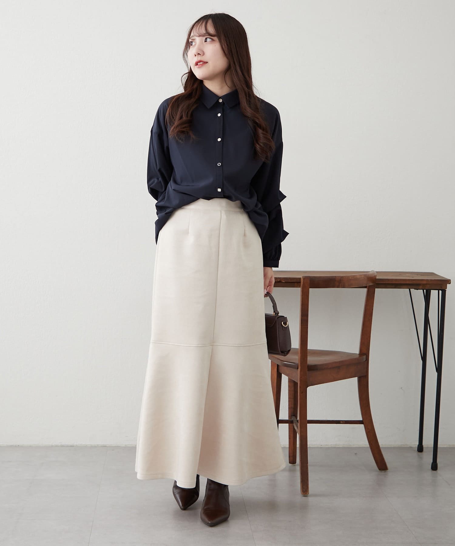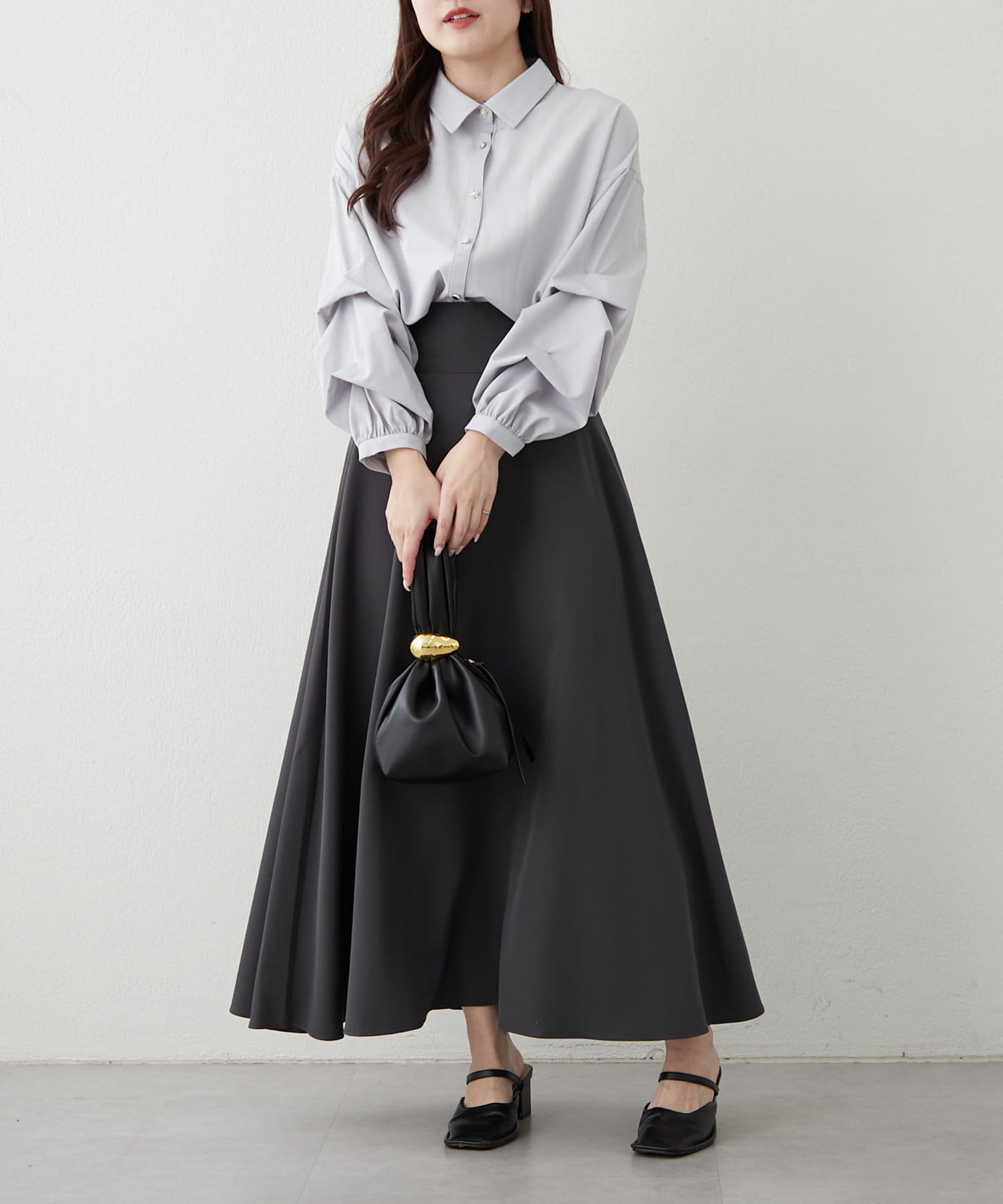 ・きれいめなロングスカートやスラックスパンツと合わせてオフィスコーデにおすすめ。