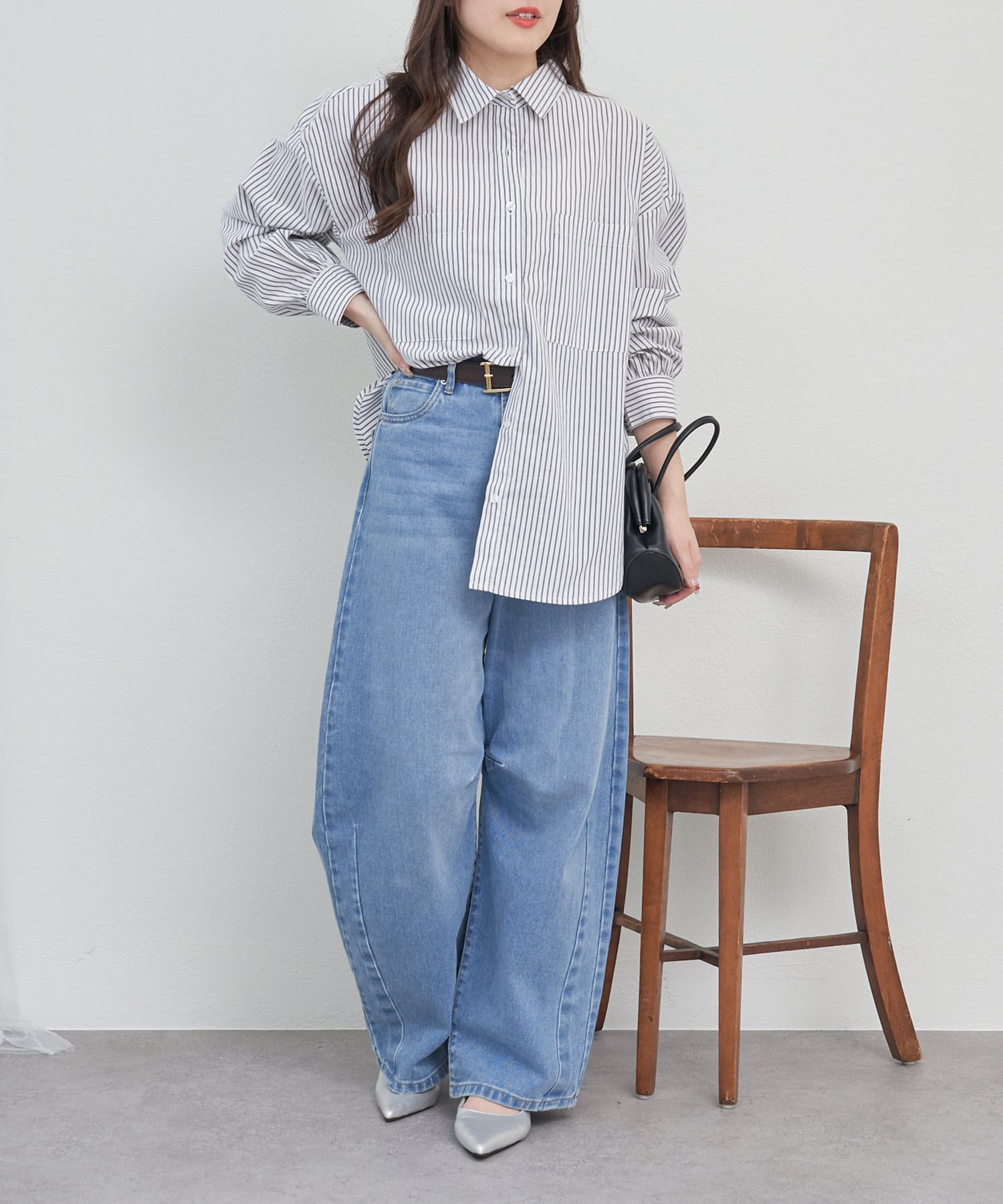 ・一枚着トップスとしてはもちろんのこと、羽織ったスタイリングできるので幅広いコーデに対応します。