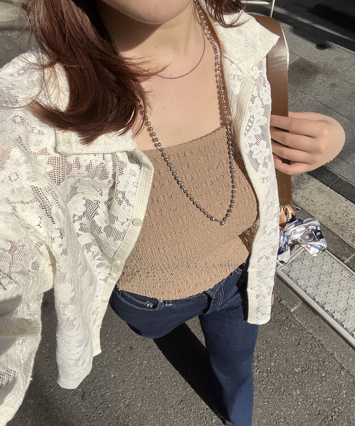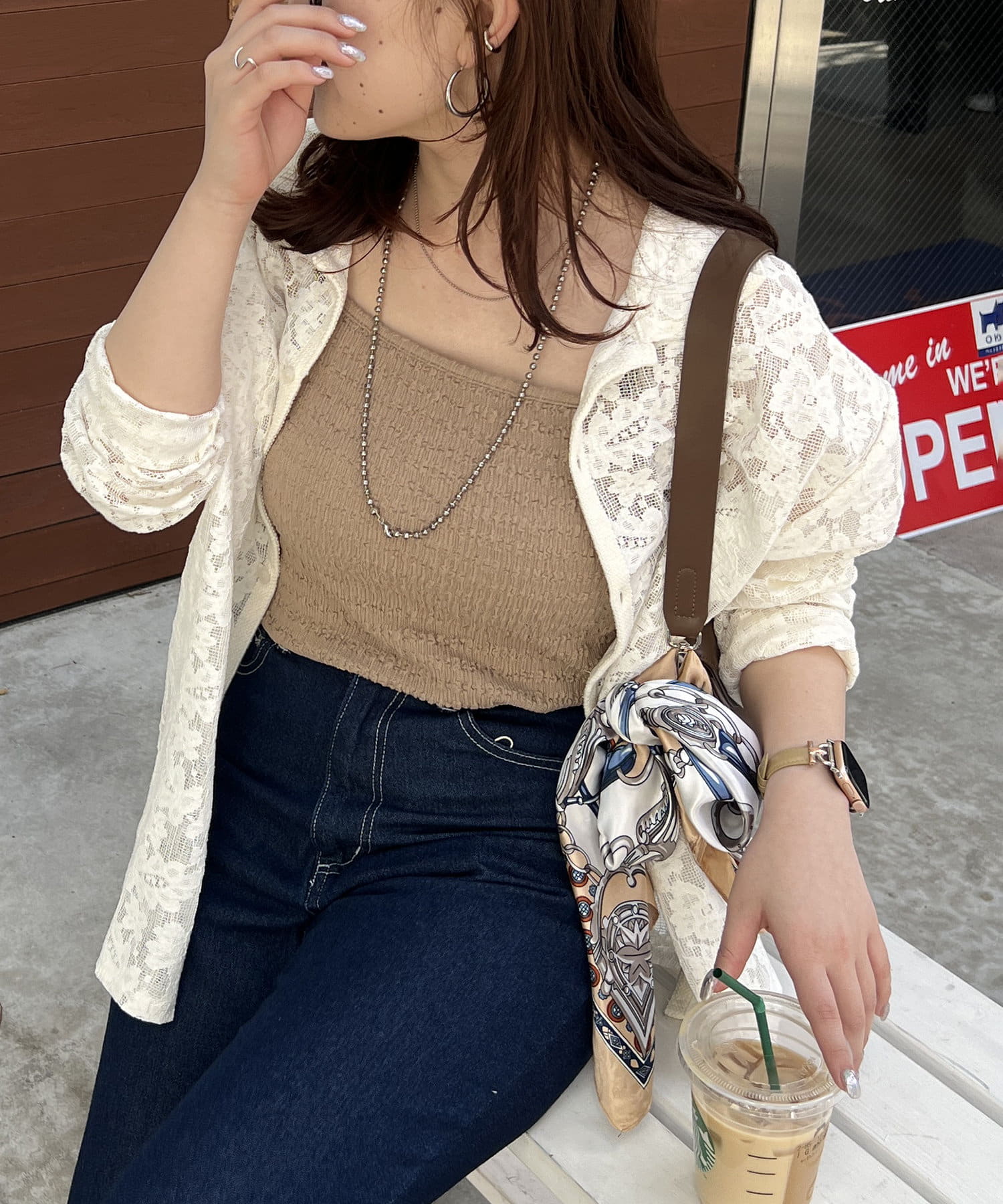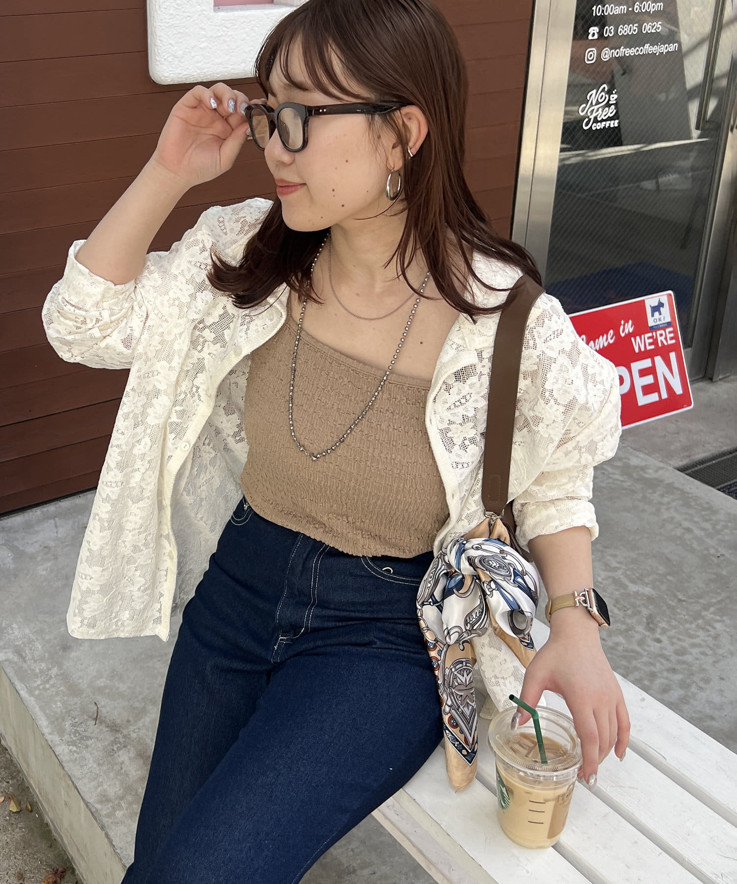 ・暖かい時期にはキャミやタンクの上から羽織るスタイリングがオススメ