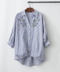 人気シリーズ、タケノコタック胸刺繍ブラウス