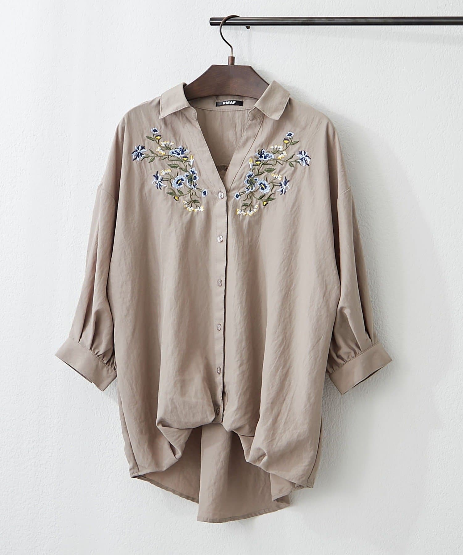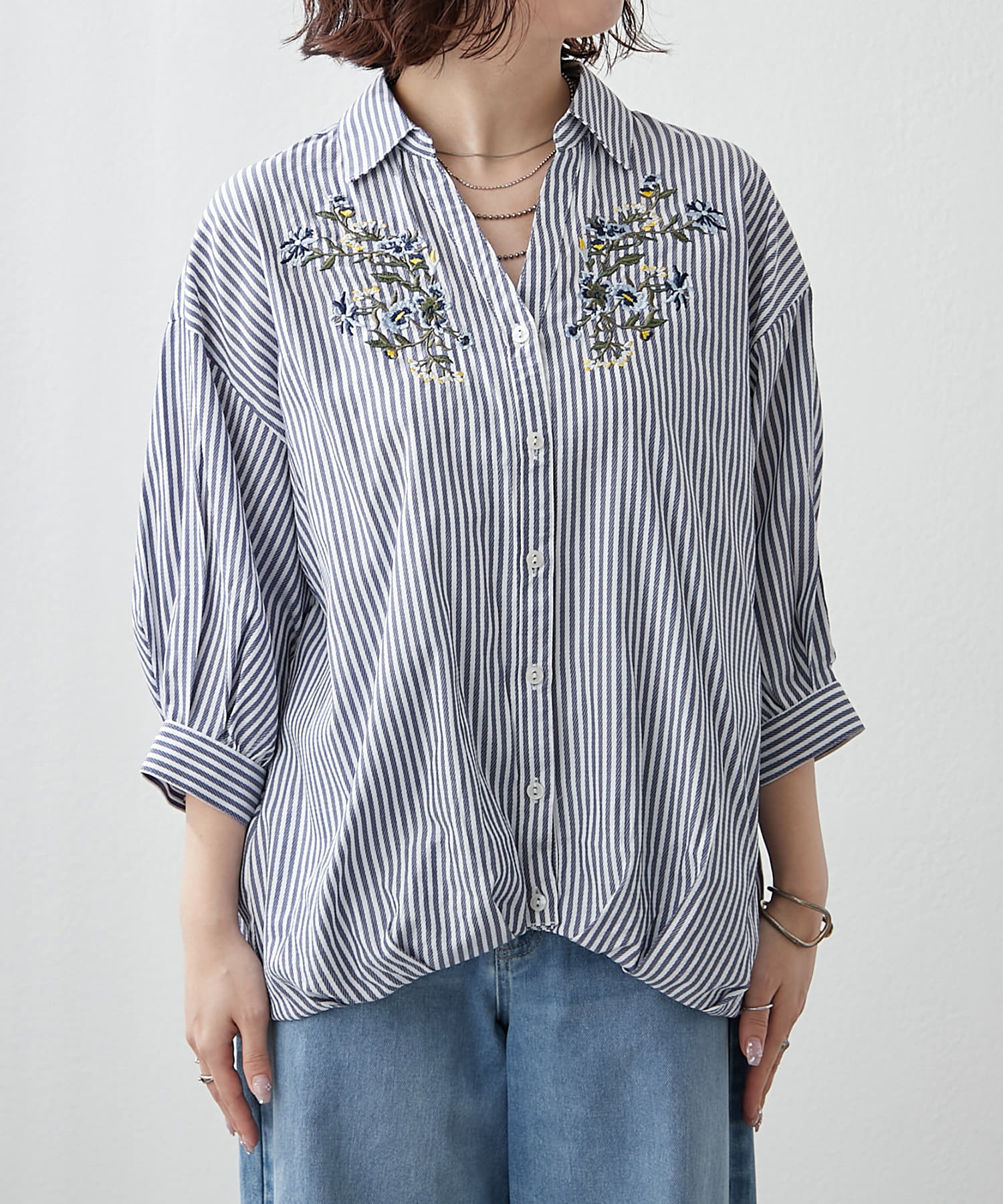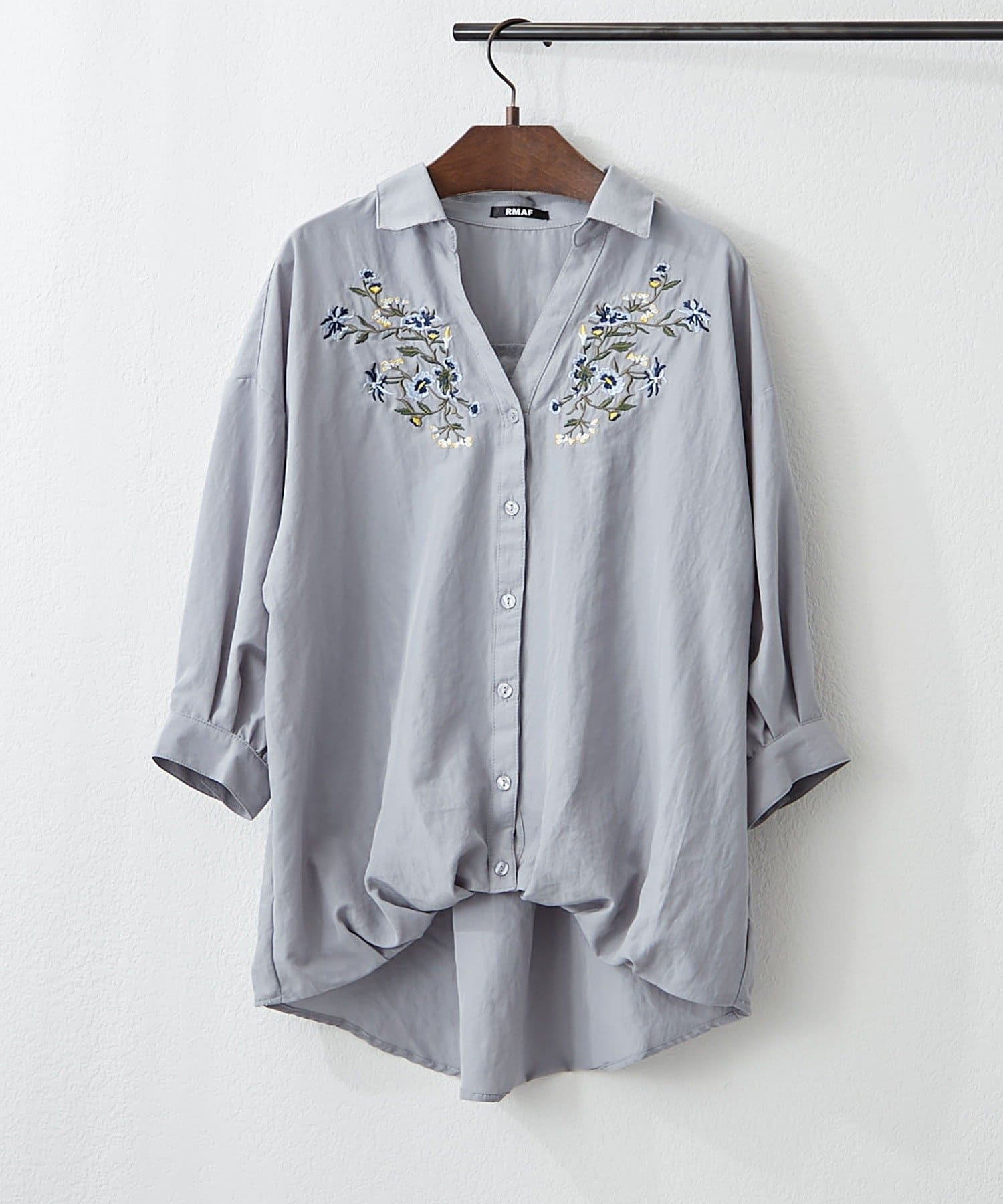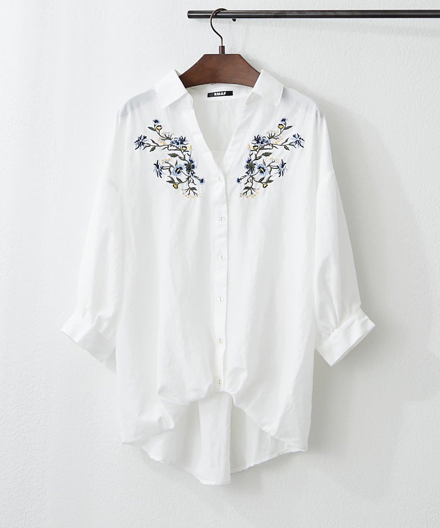 Remind me and forever(リマインドミーアンドフォーエバー) 人気シリーズ、タケノコタック胸刺繍ブラウス