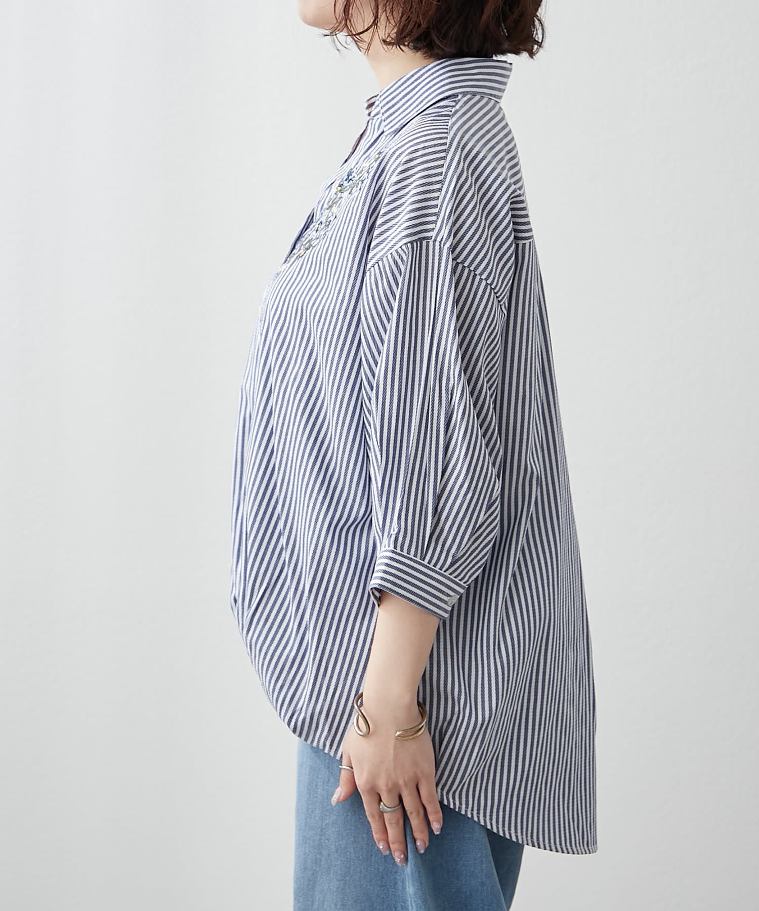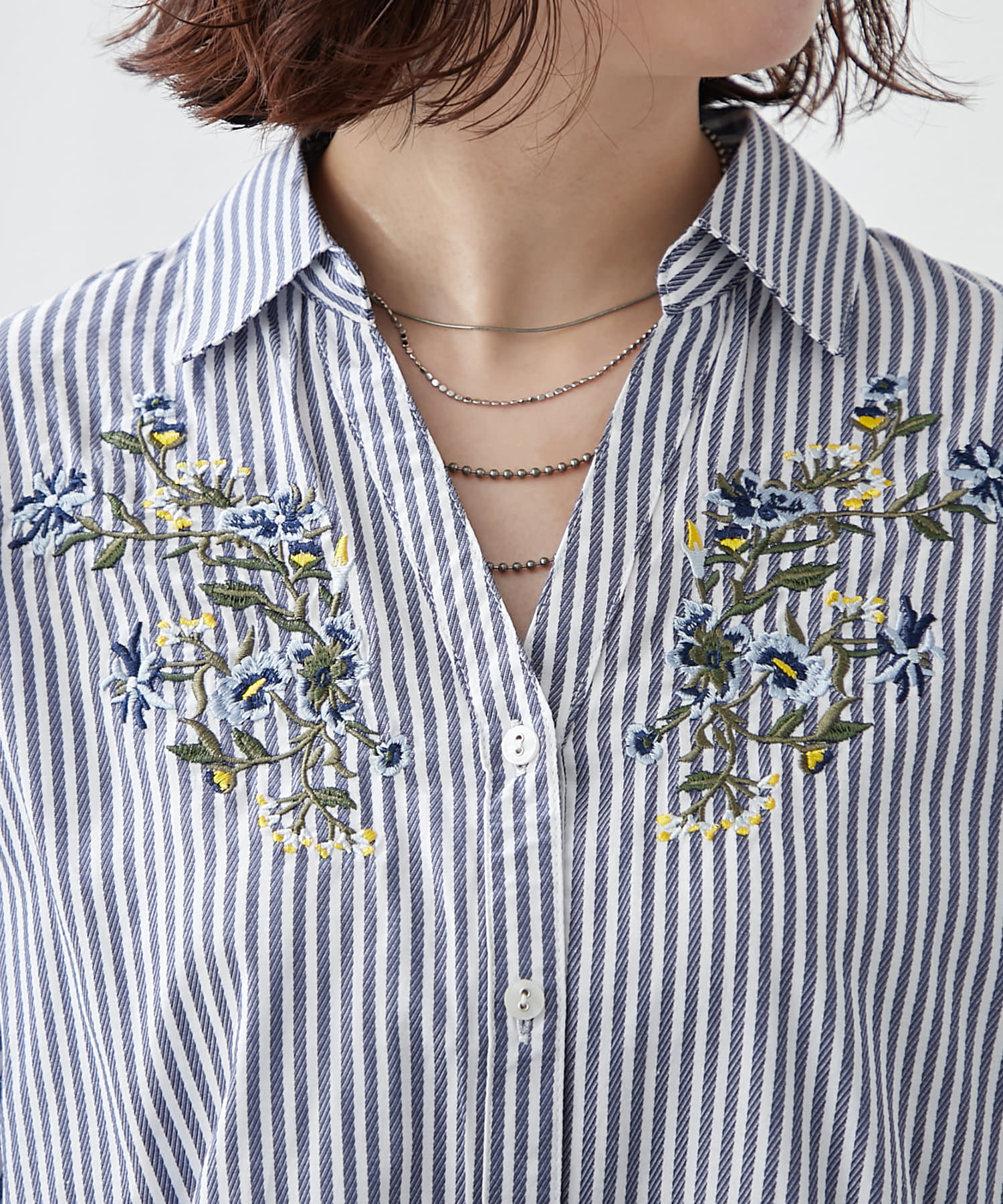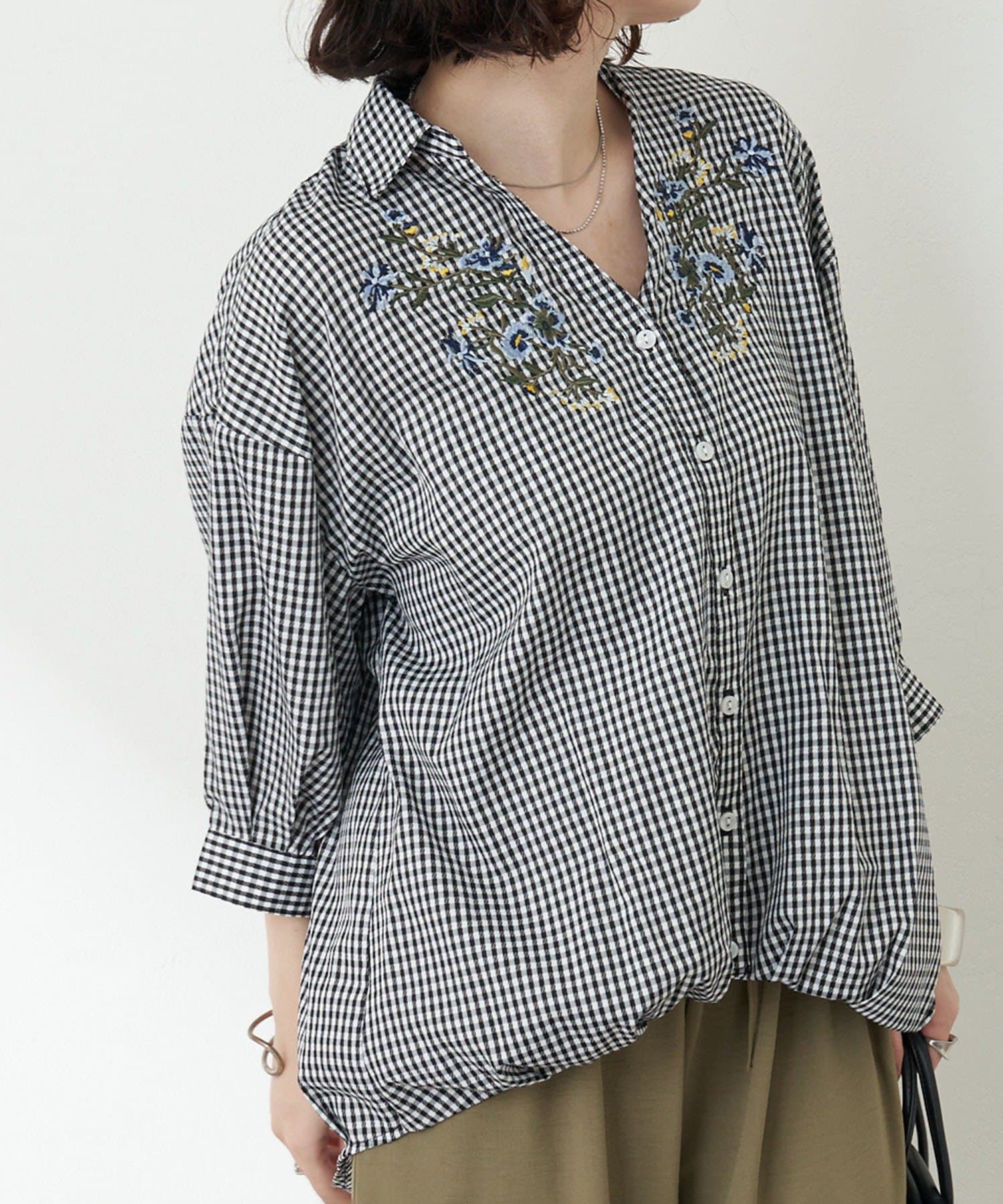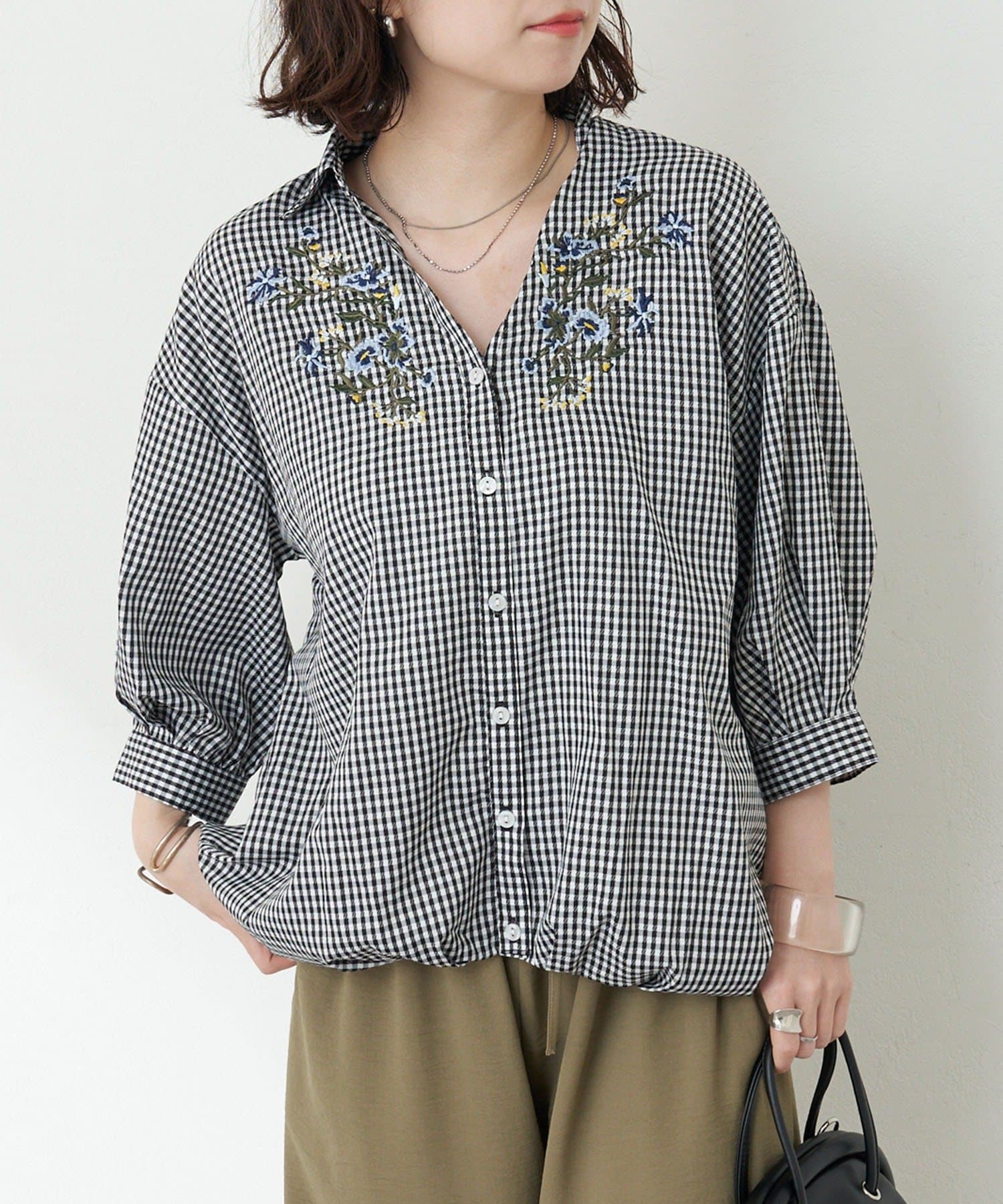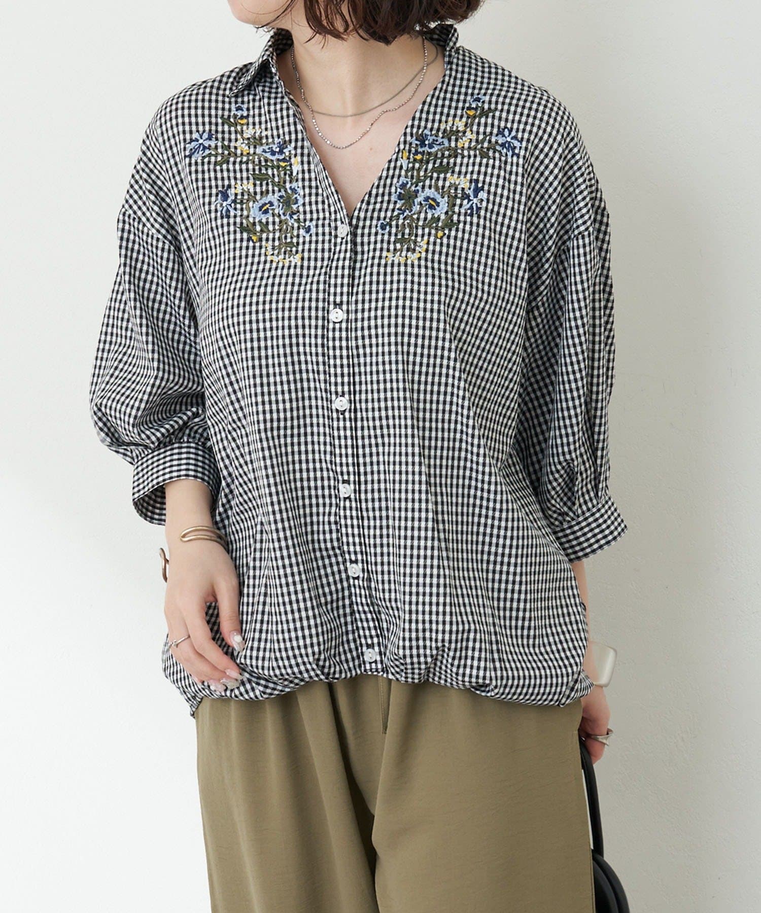 Remind me and forever(リマインドミーアンドフォーエバー) 人気シリーズ、タケノコタック胸刺繍ブラウス