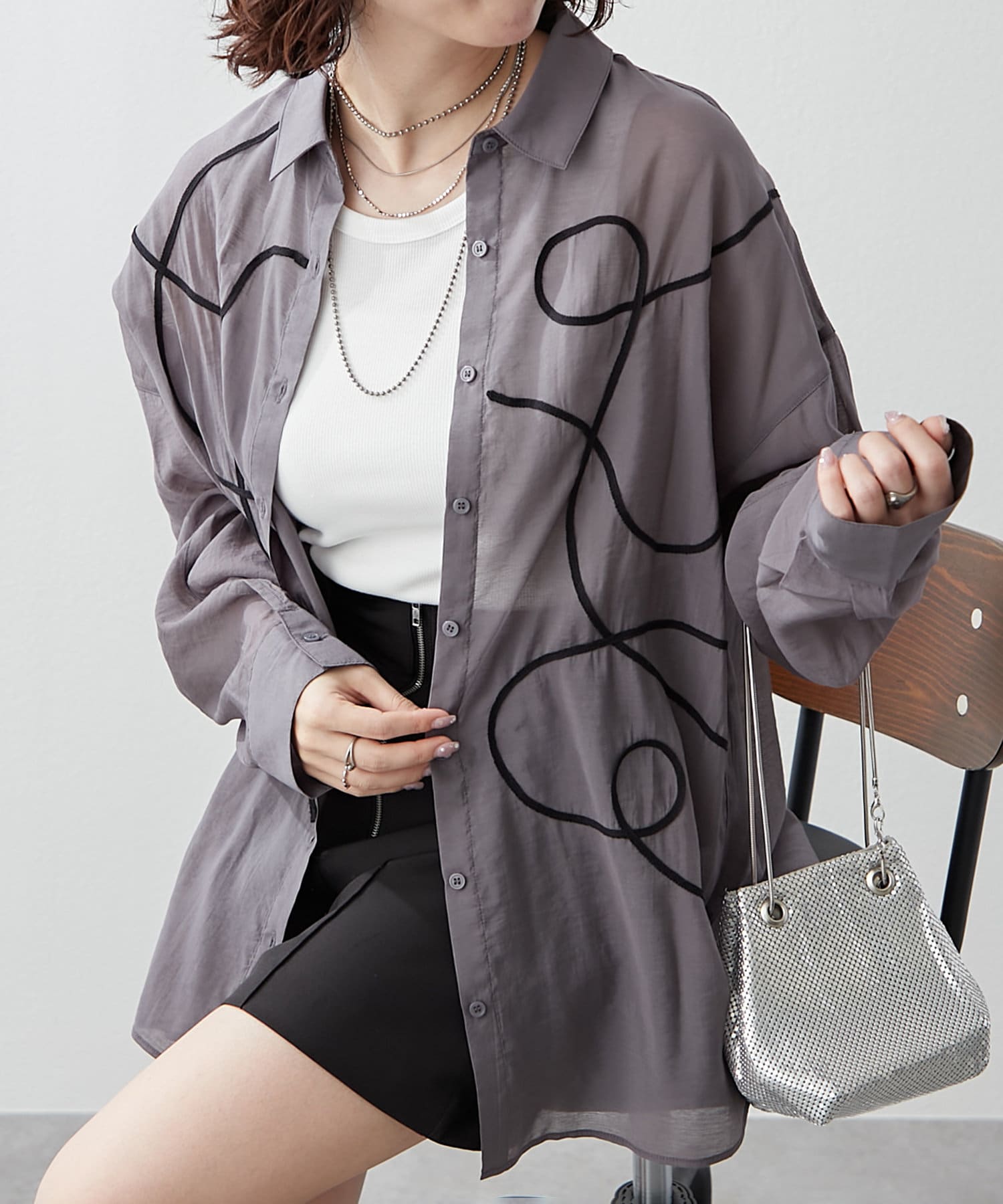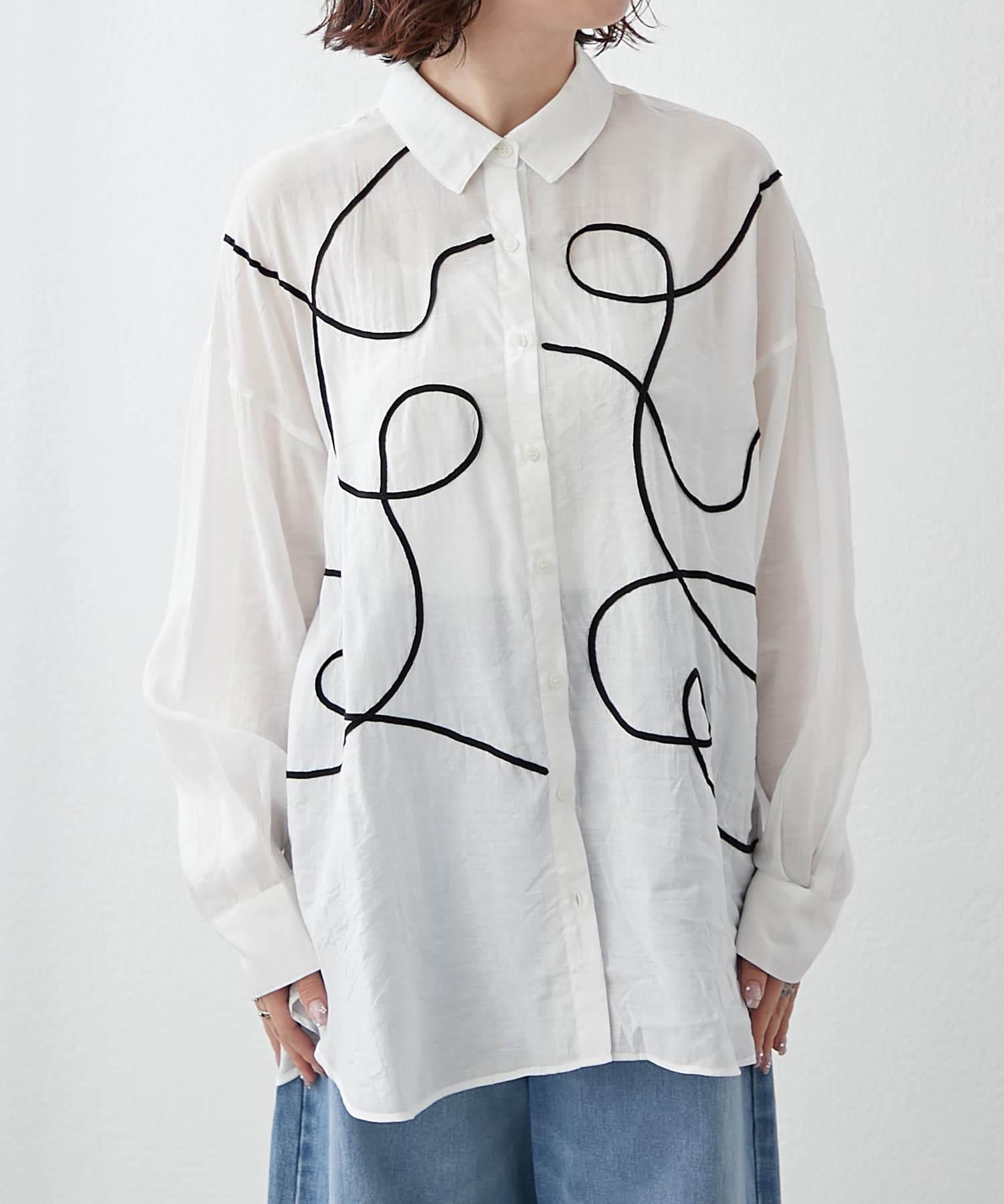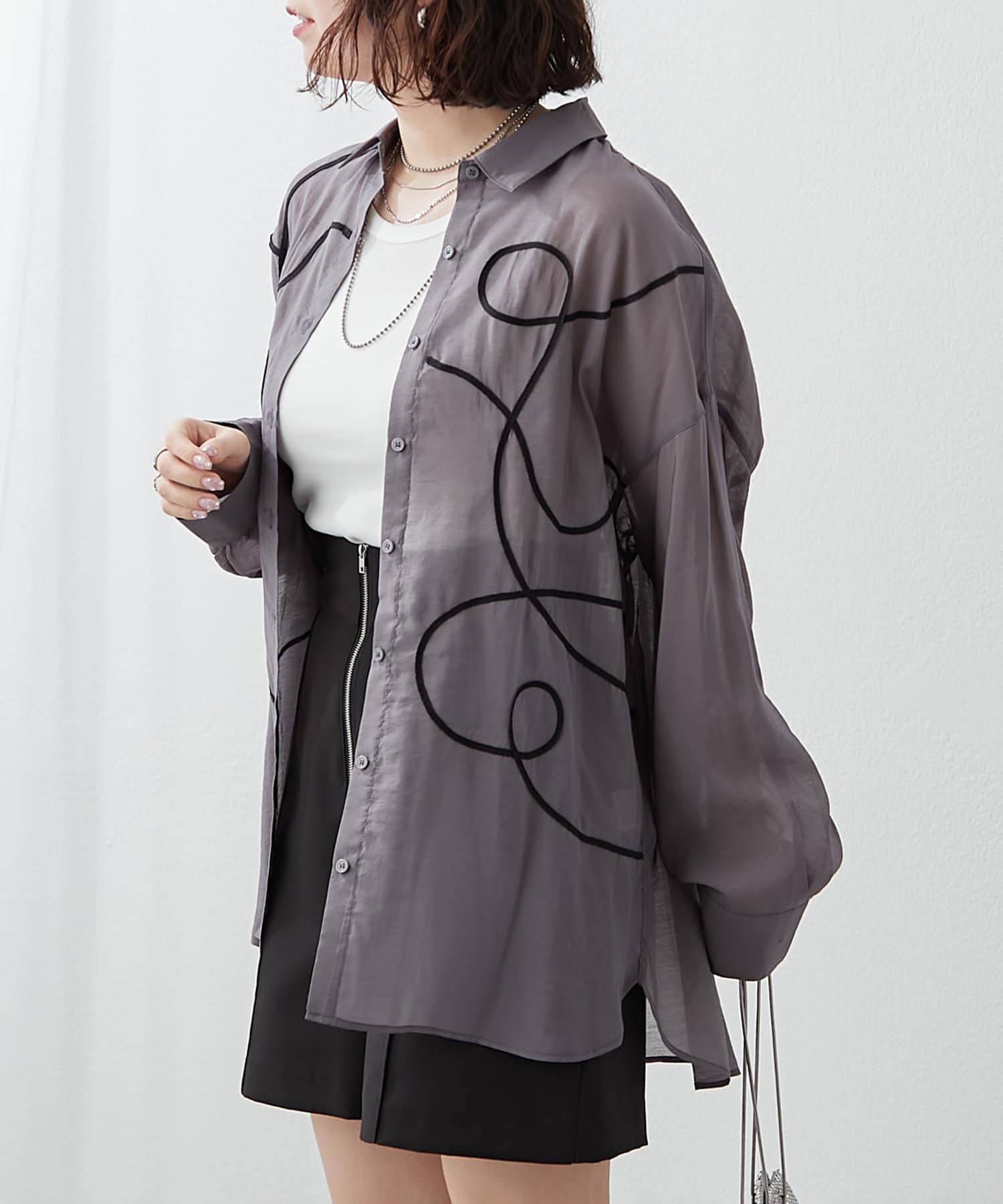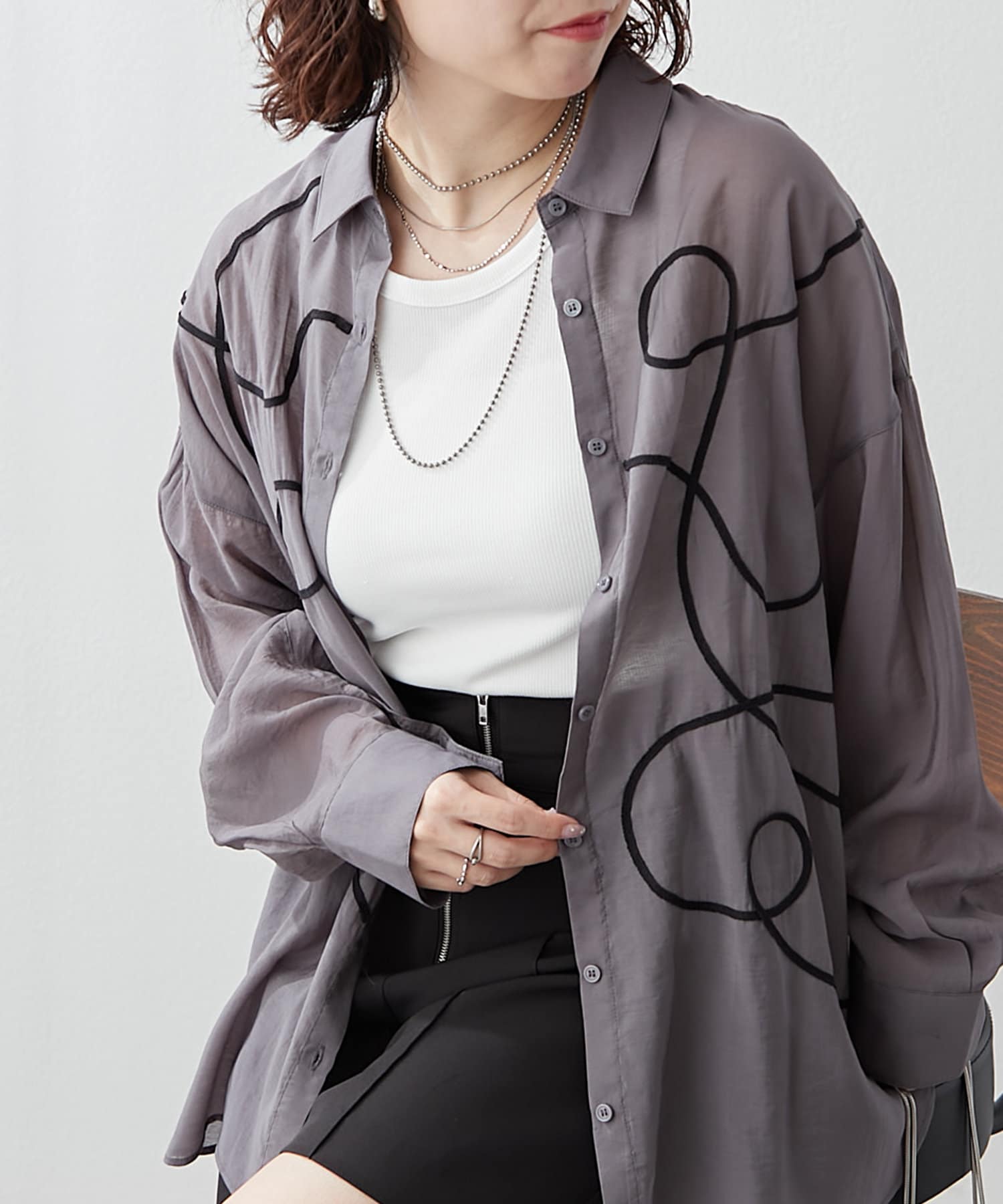 ・今季トレンドのコード刺繍デザインがシアーシャツでも登場!