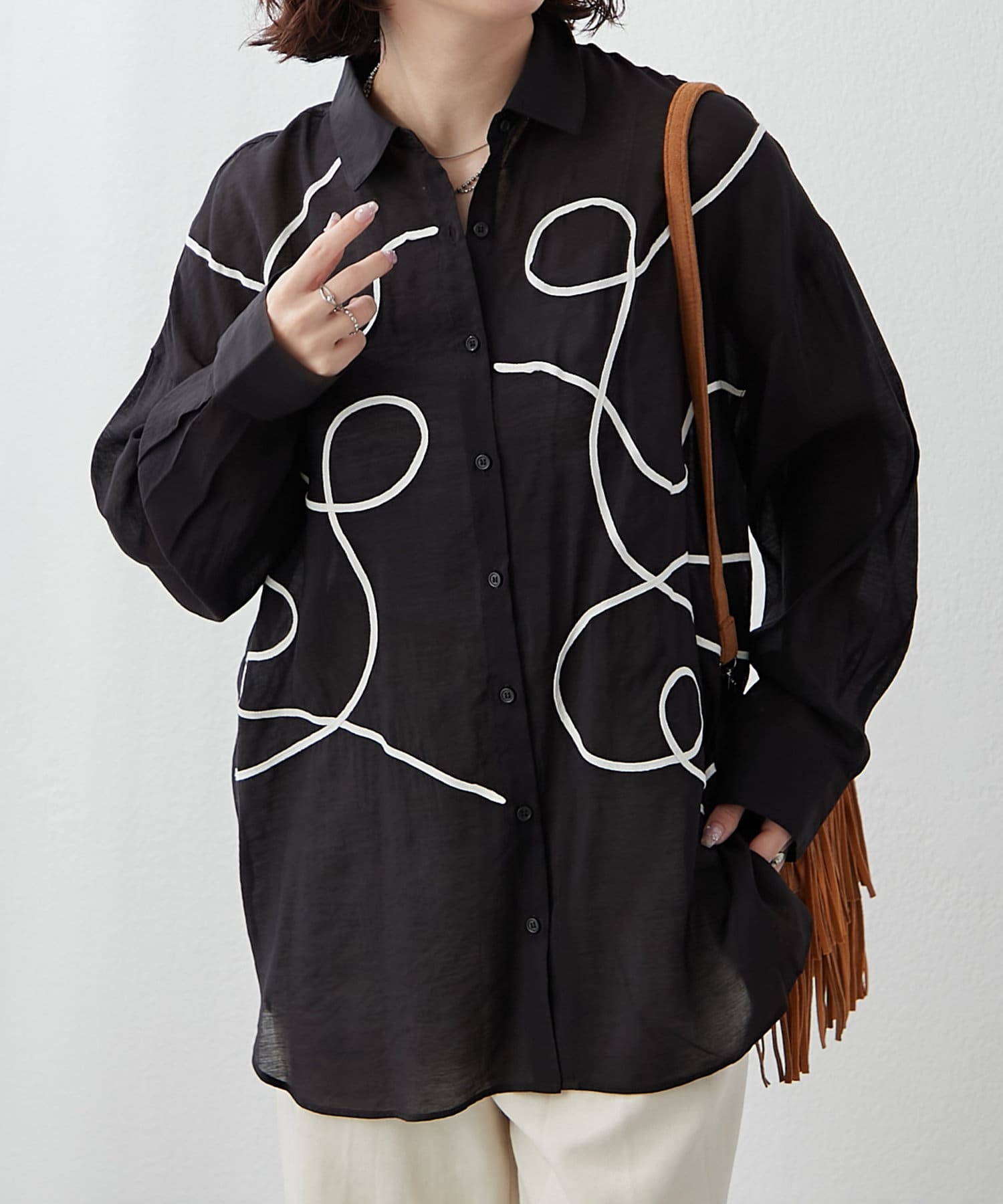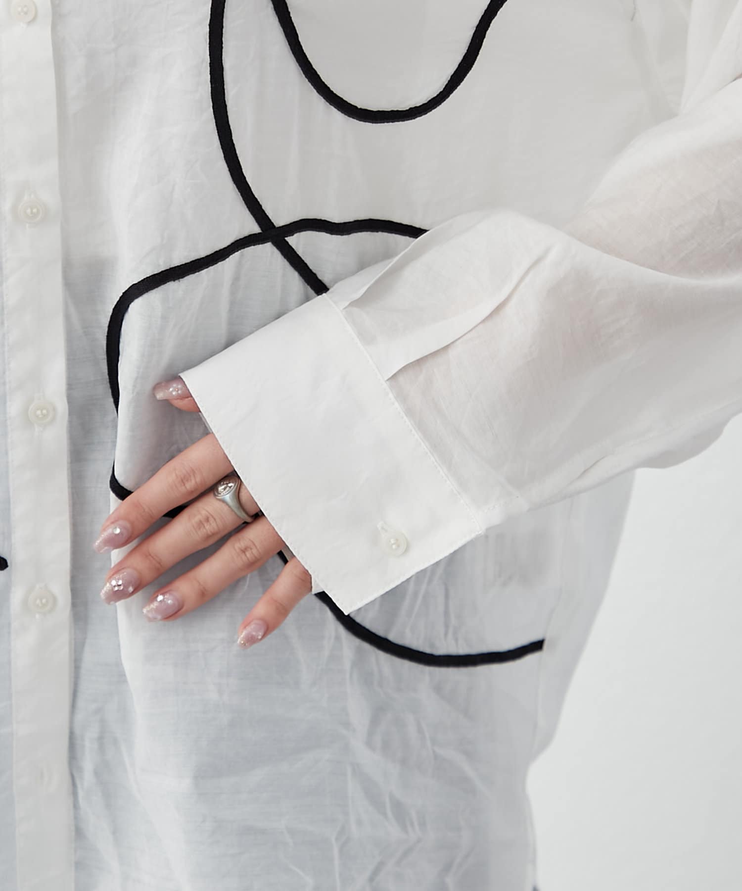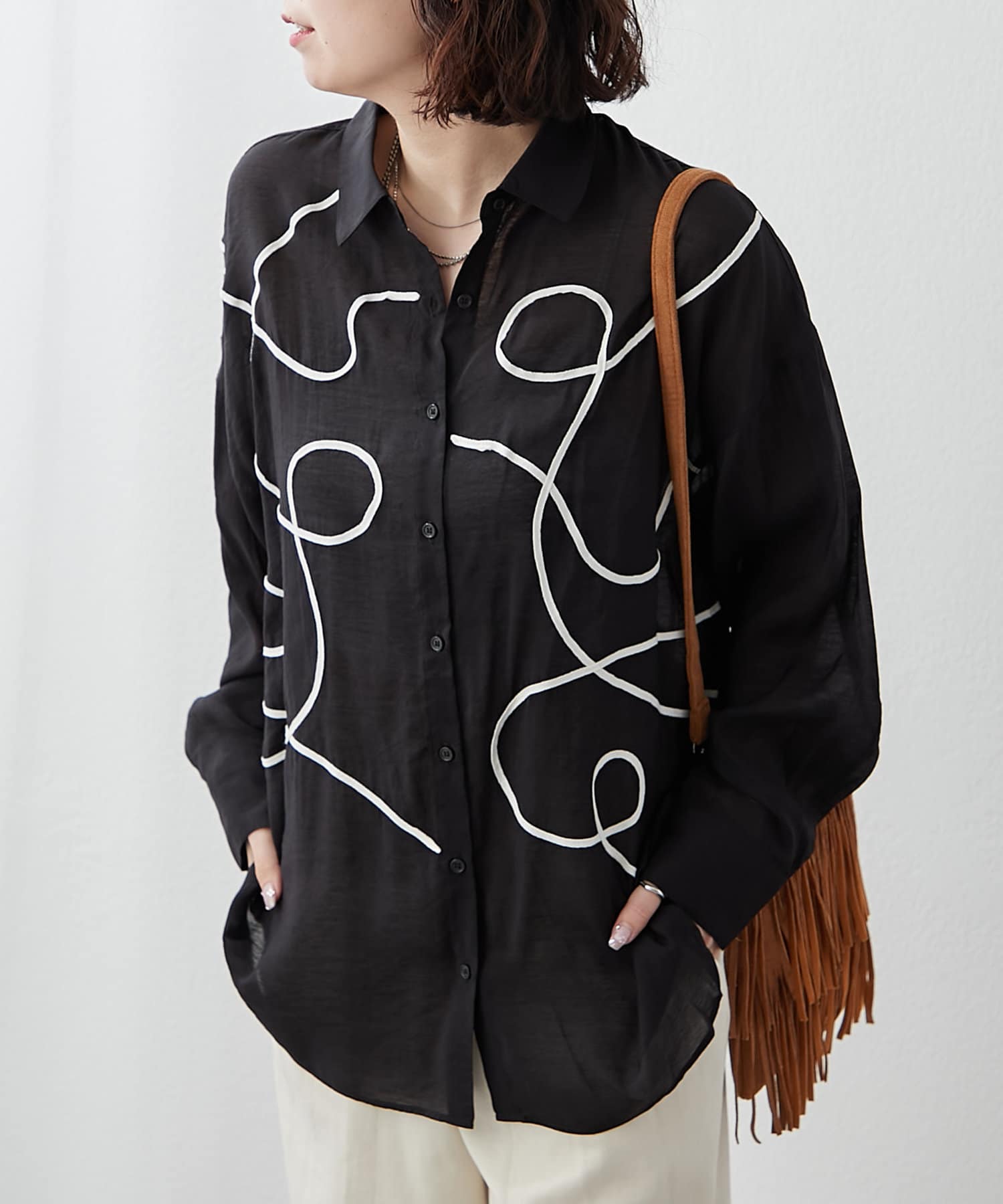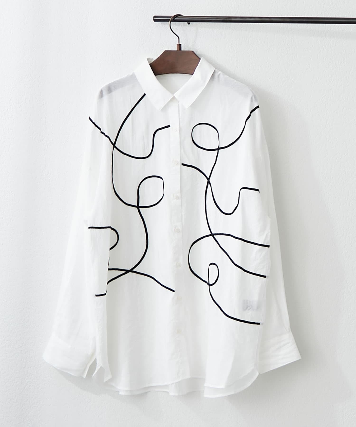 ・今季トレンドのコード刺繍デザインがシアーシャツでも登場!