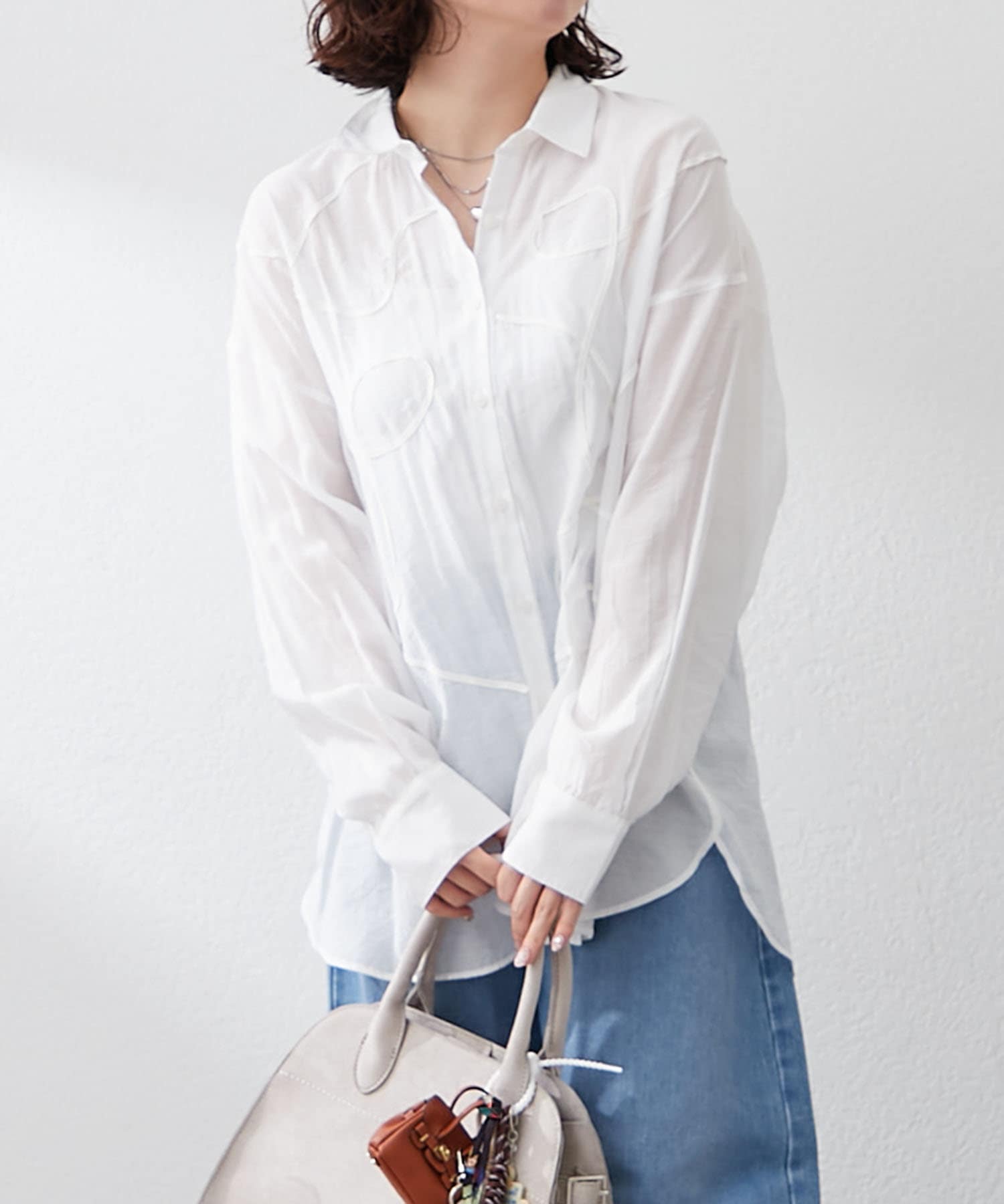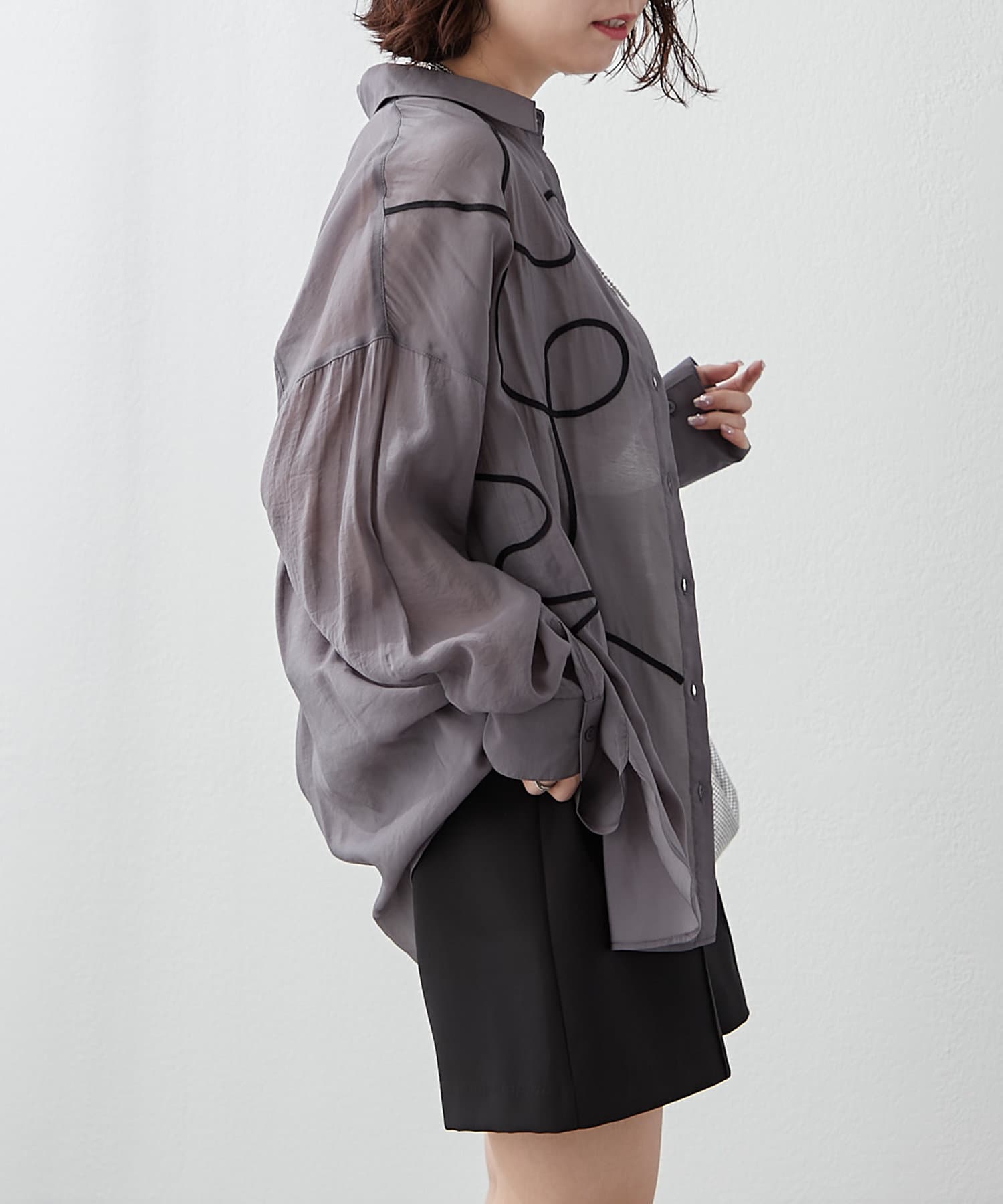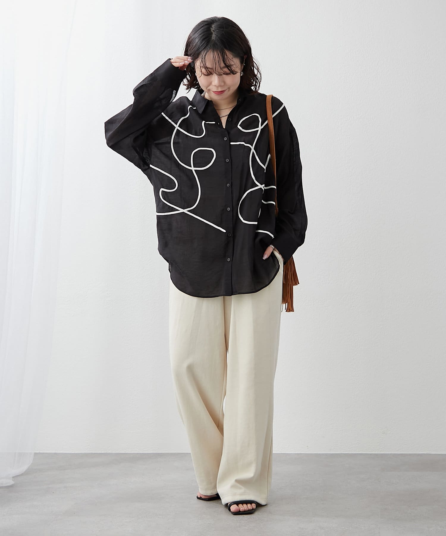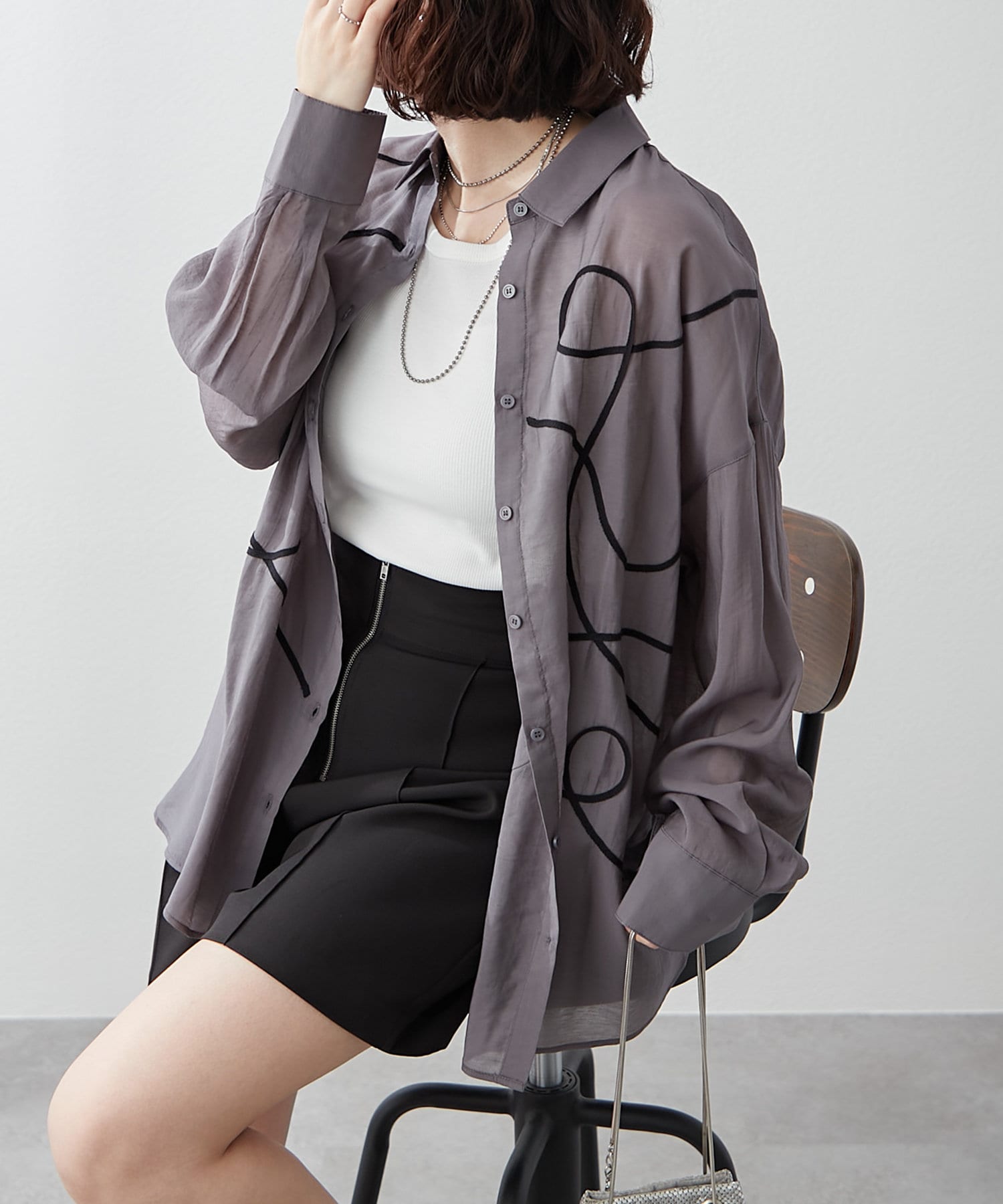 ・今季トレンドのコード刺繍デザインがシアーシャツでも登場!