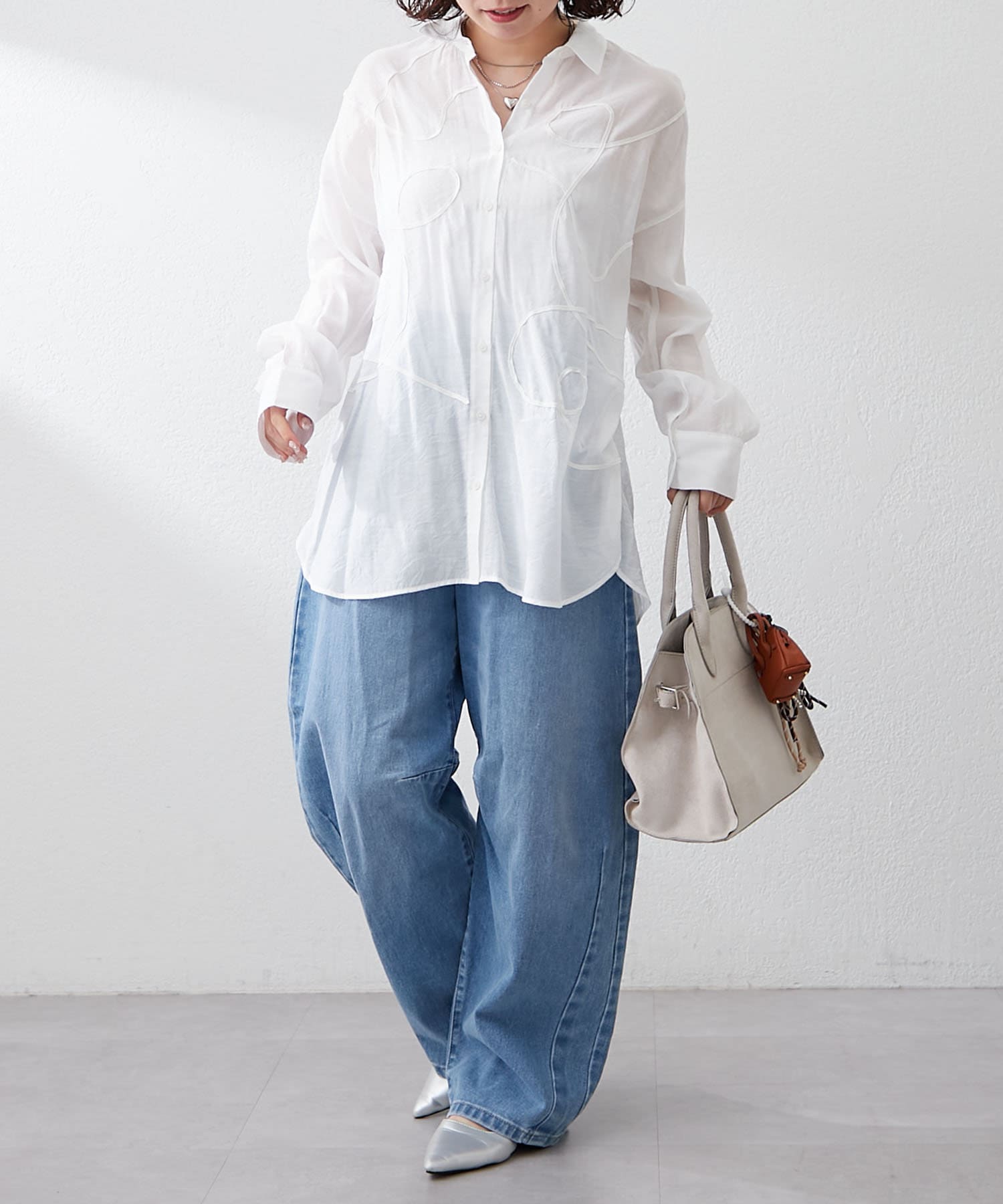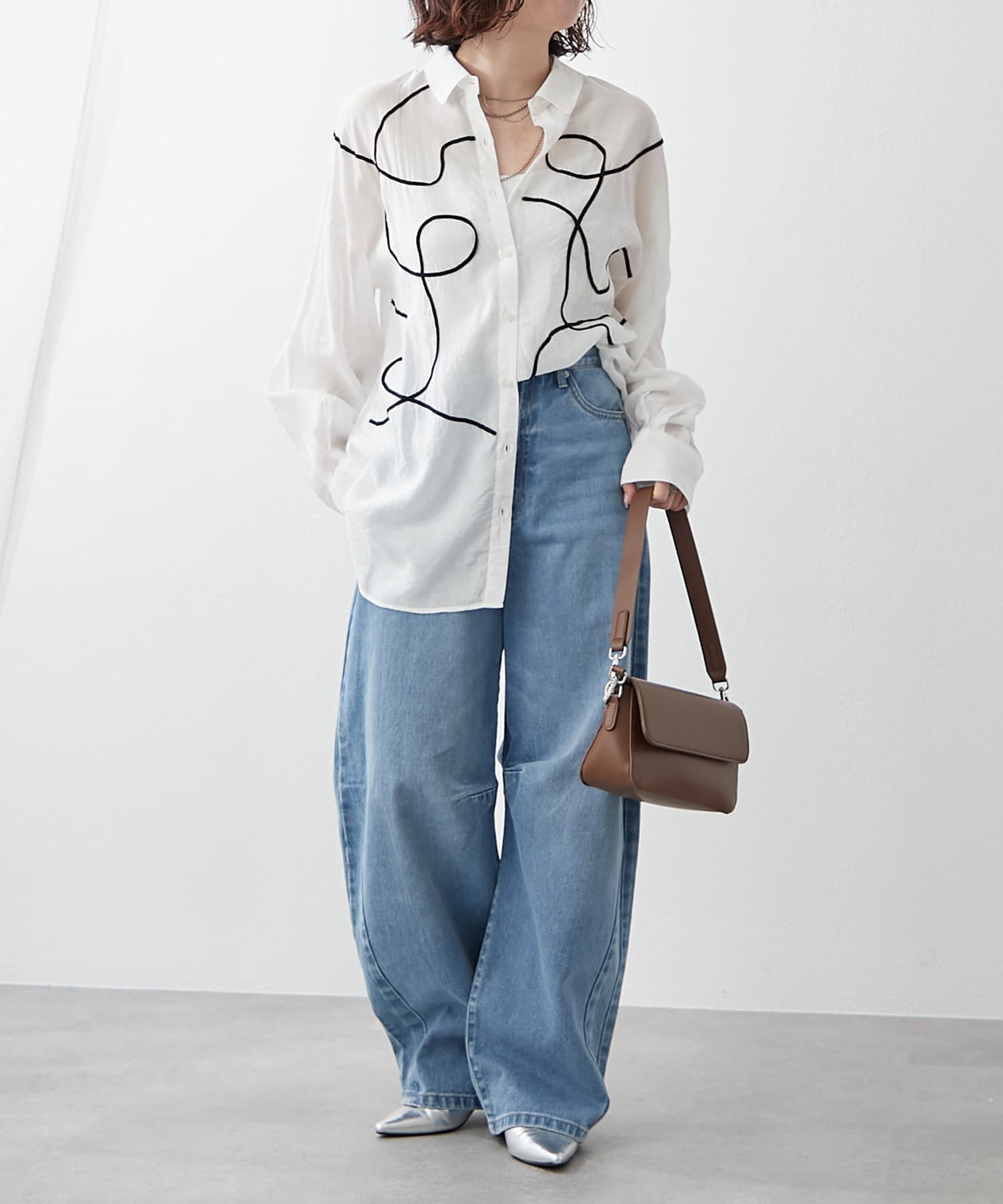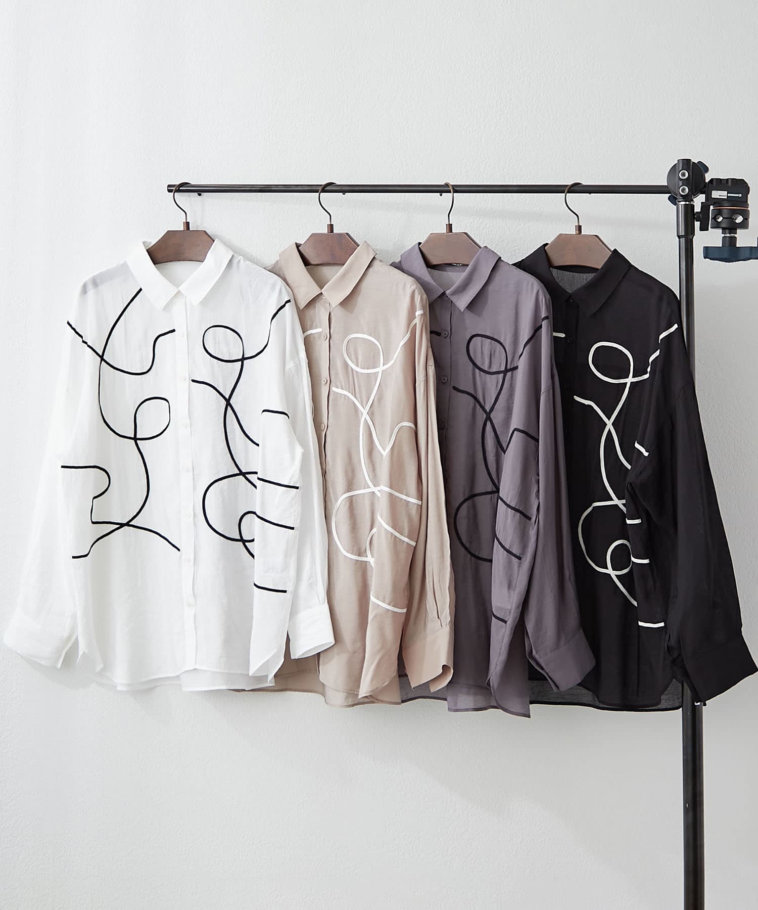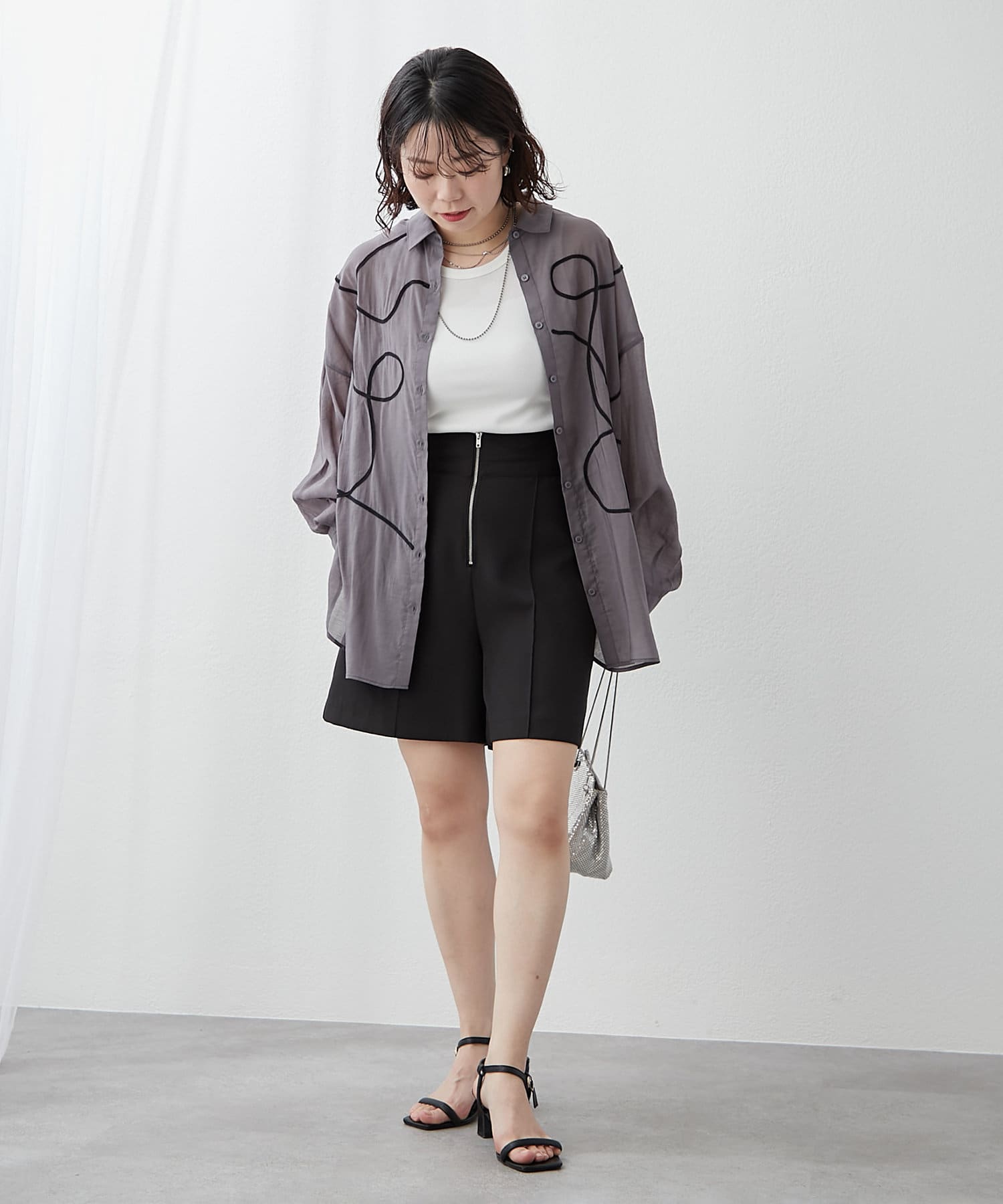 ・今季トレンドのコード刺繍デザインがシアーシャツでも登場!