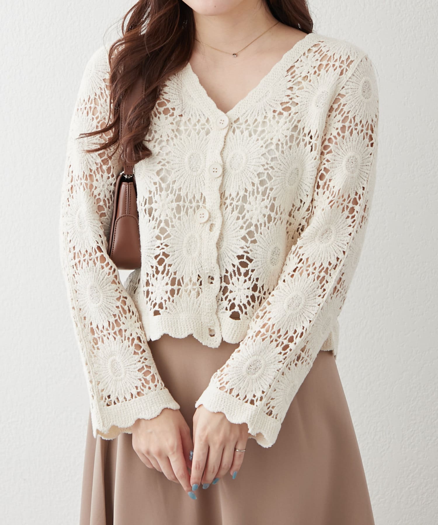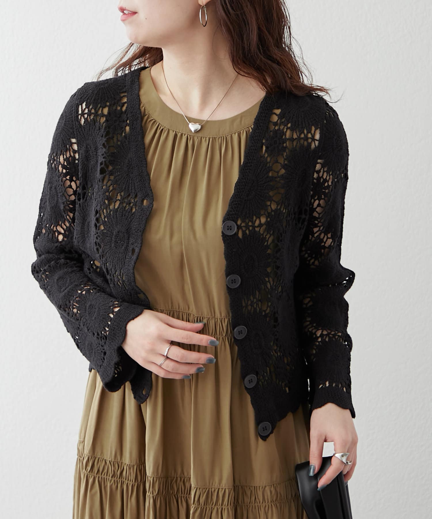 【@_misato___セレクト】【リバイバル】かぎ針透かし編みカーディガン