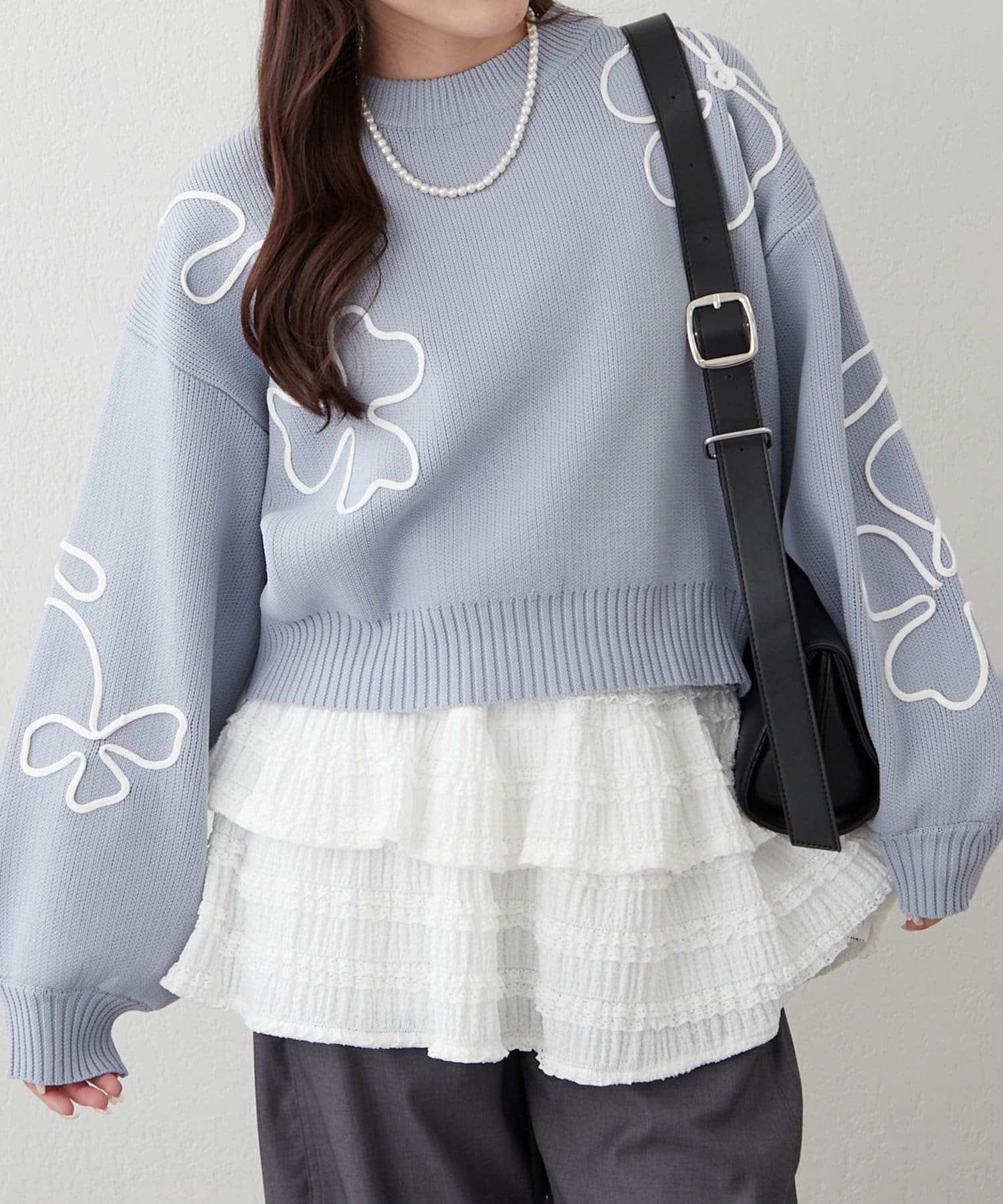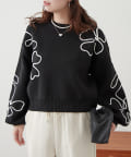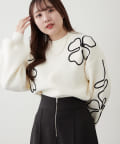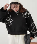 刺繍のデザインがお洒落なスポンディッシュニットトップス。