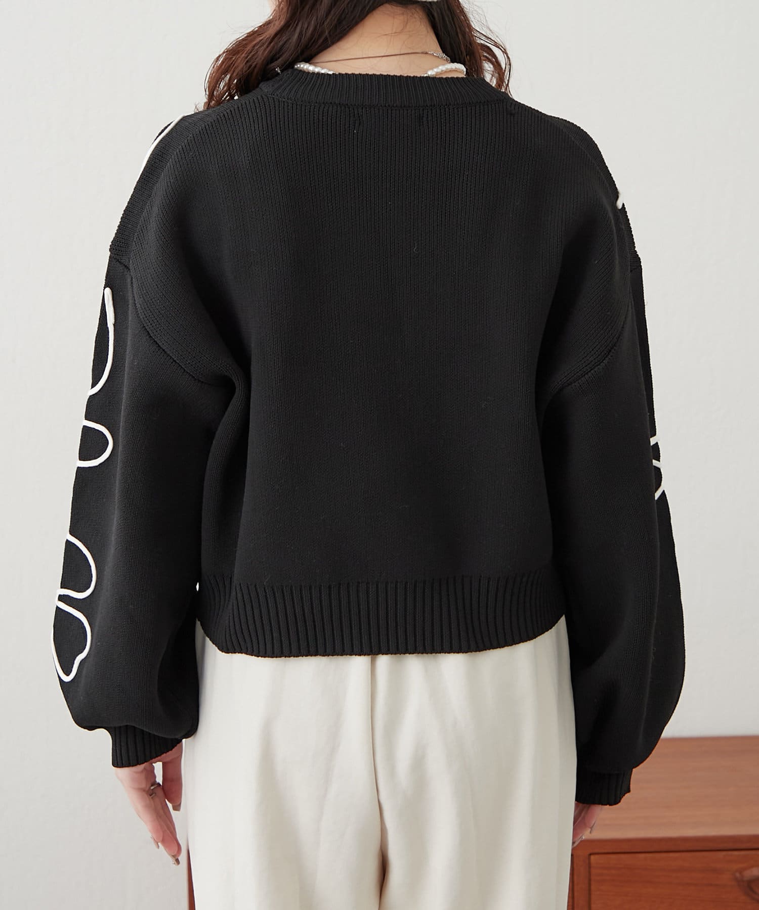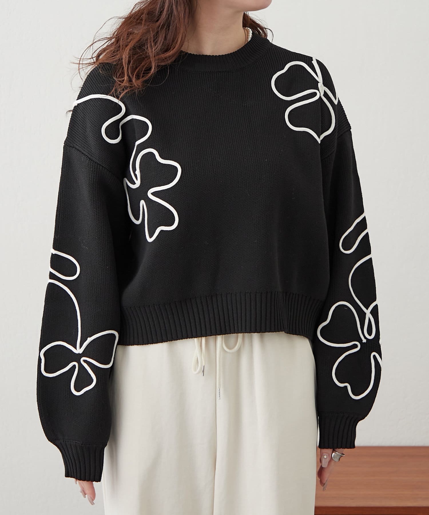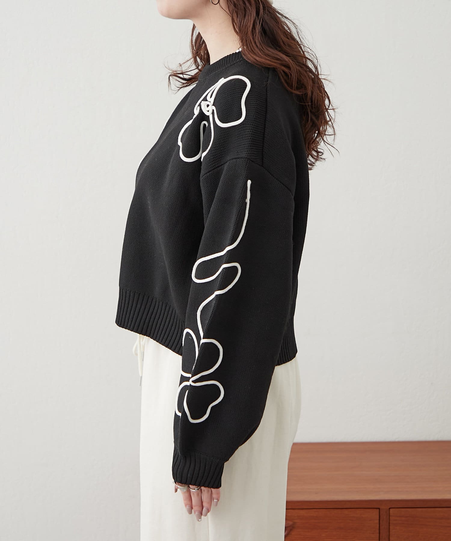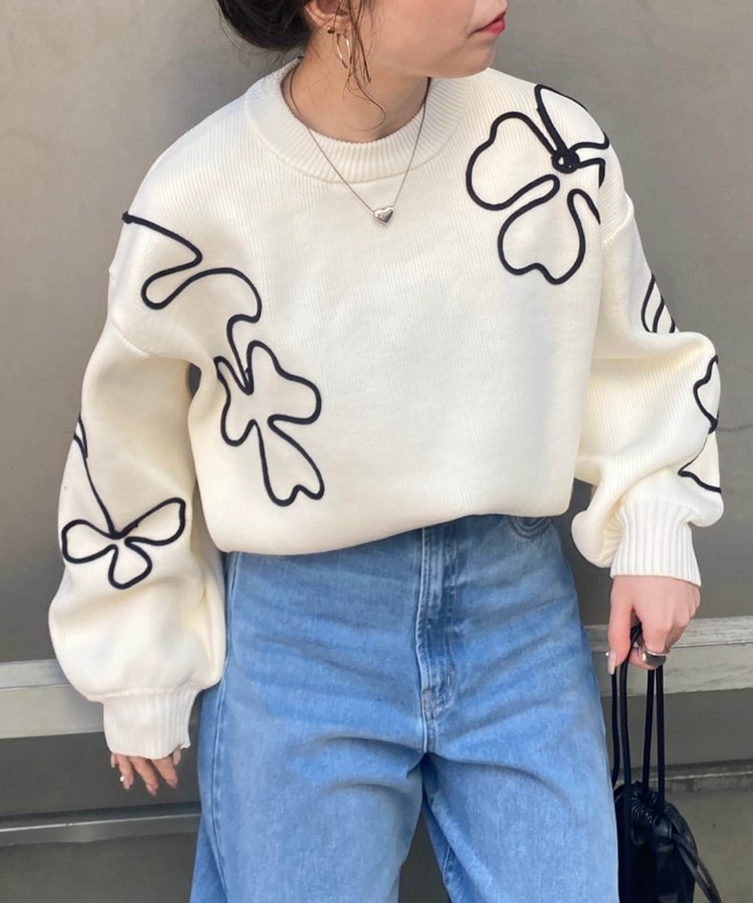 春に映えるライン刺繍ニット