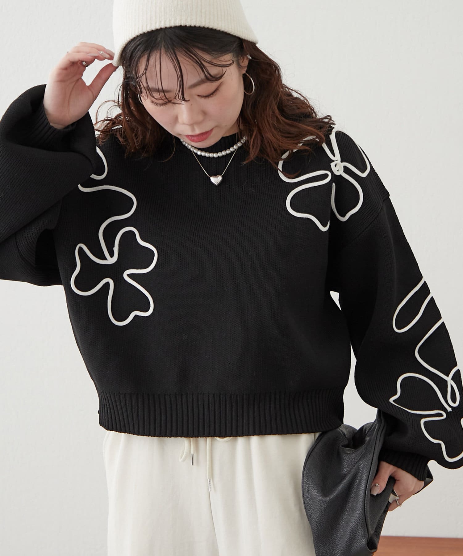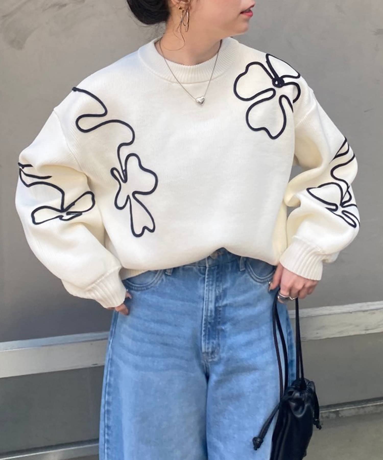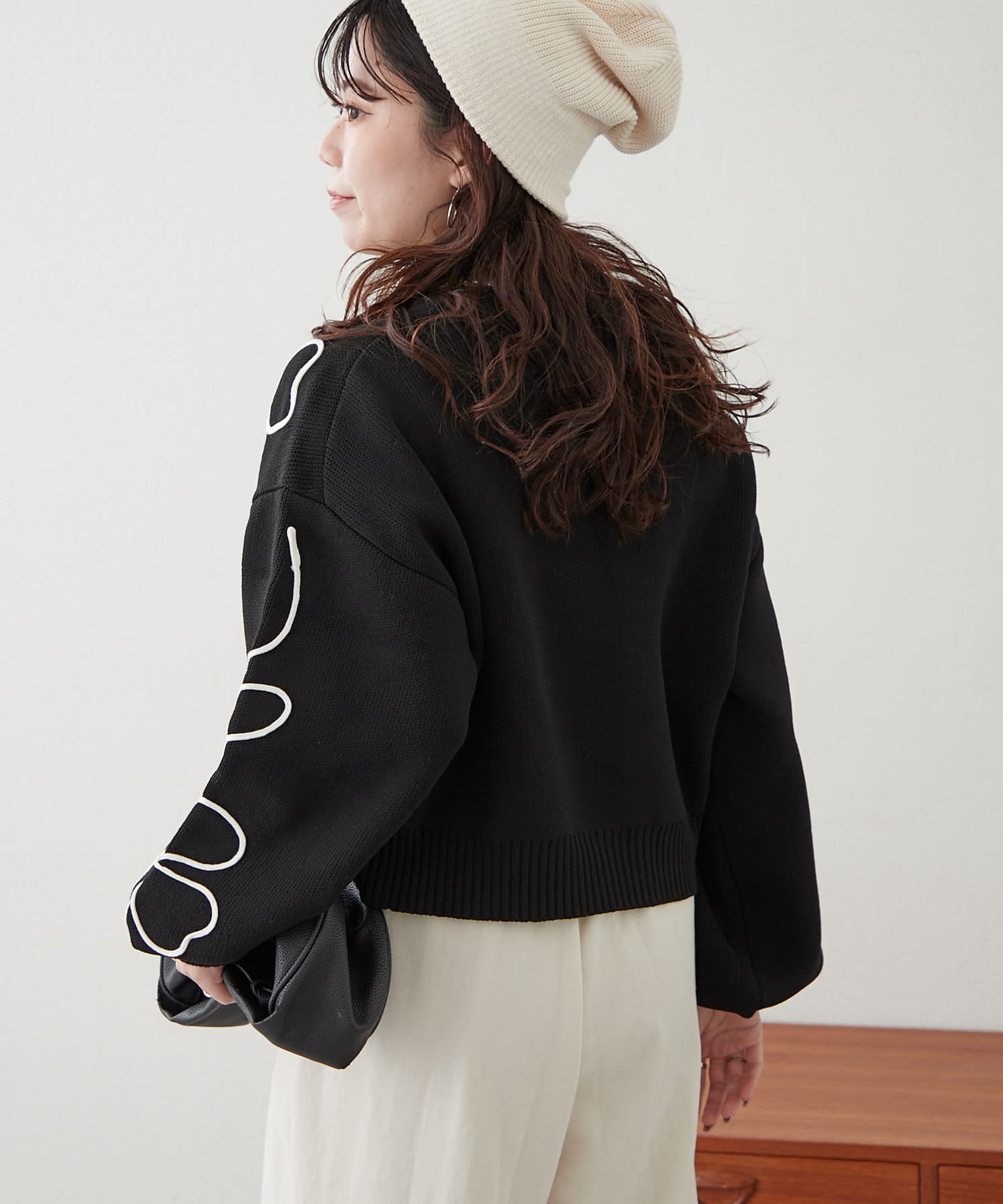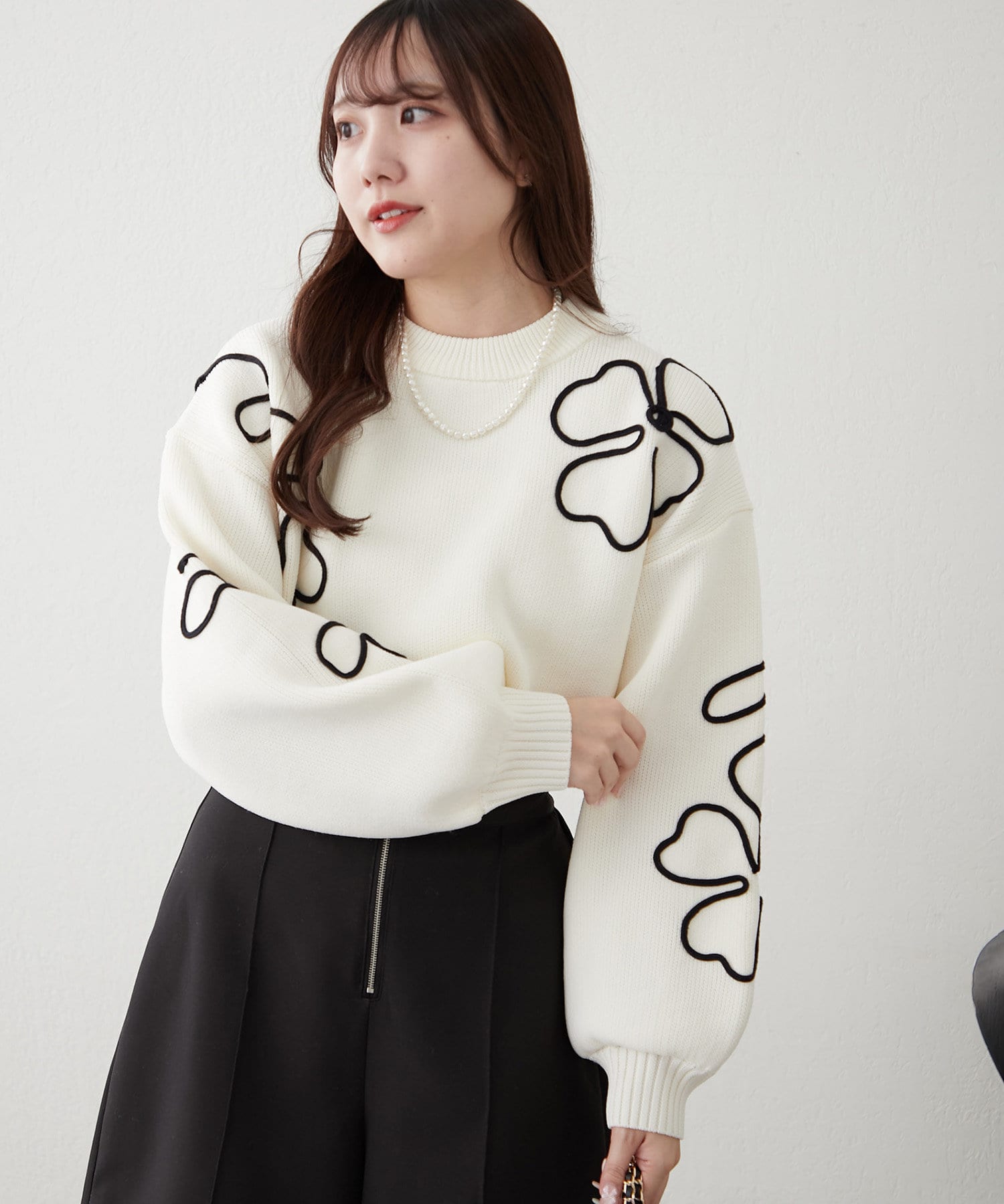 春に映えるライン刺繍ニット