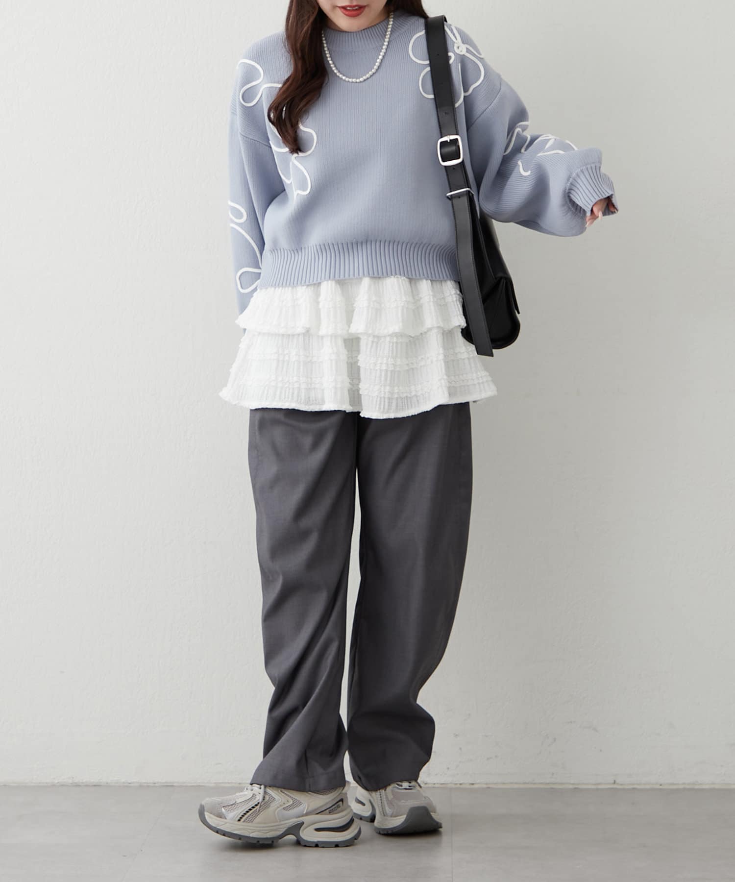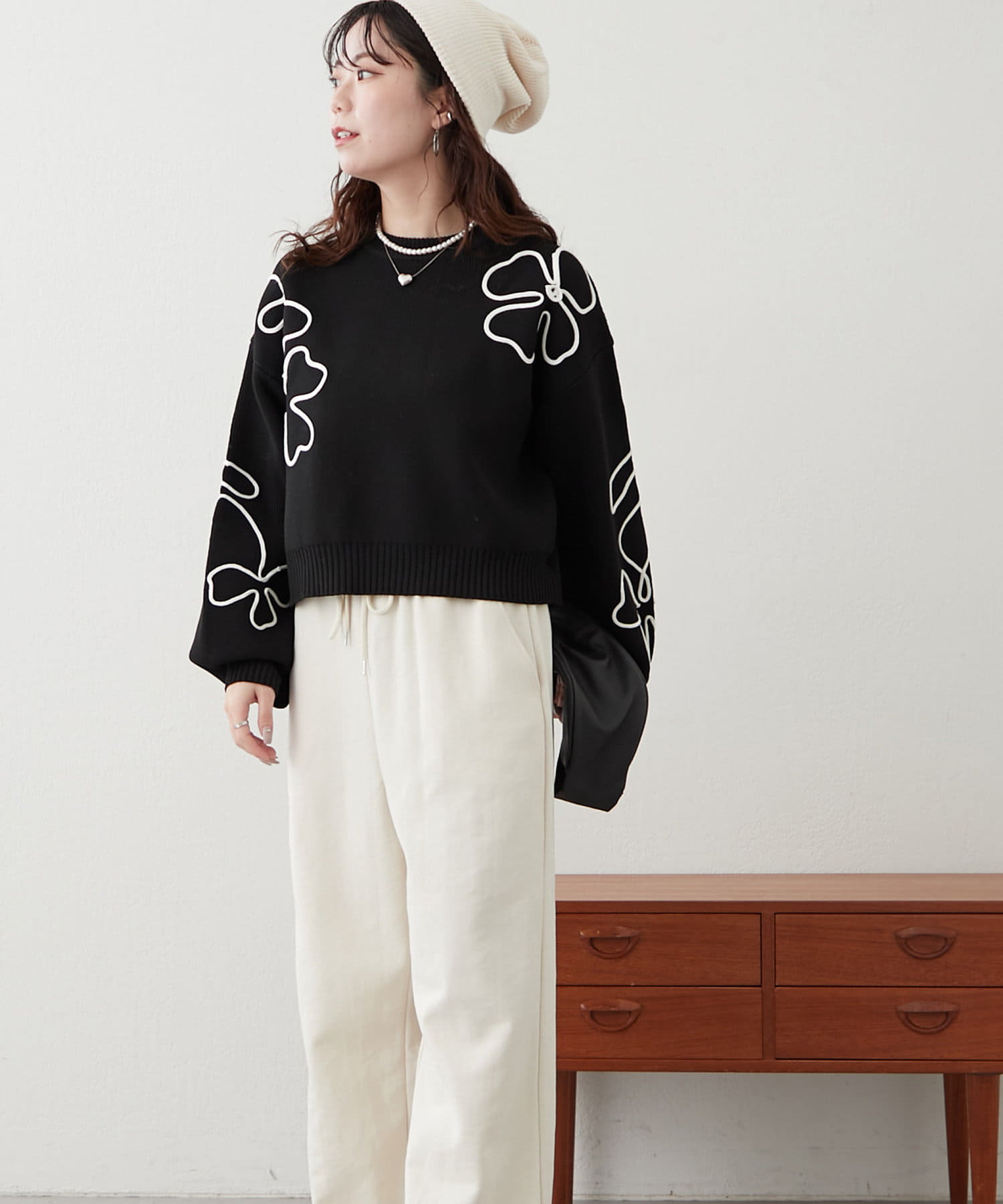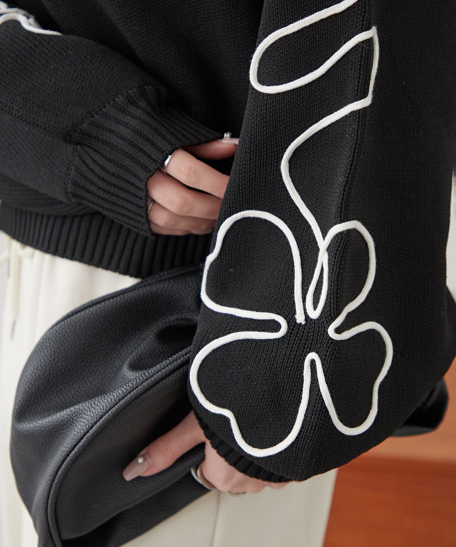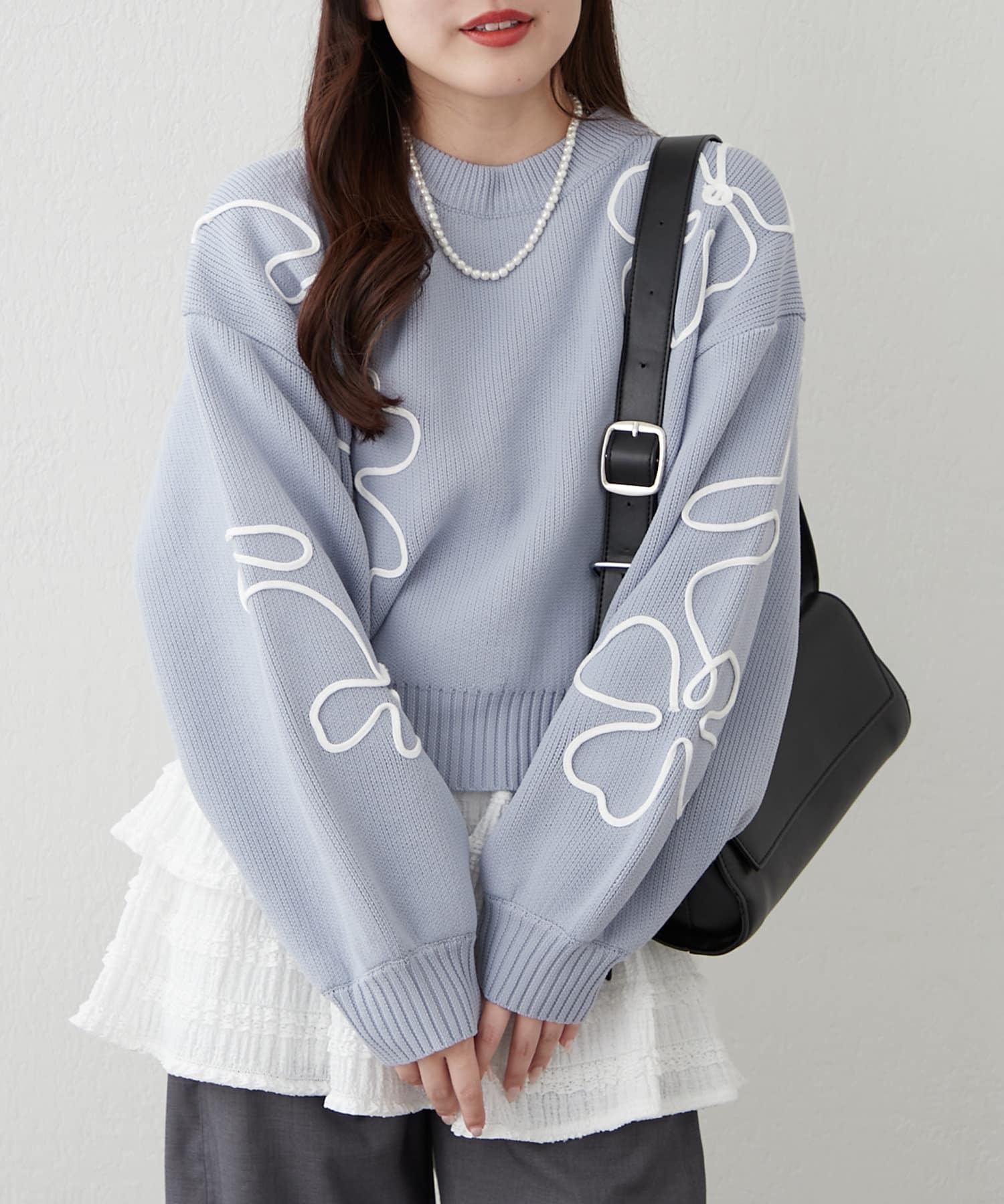 春に映えるライン刺繍ニット