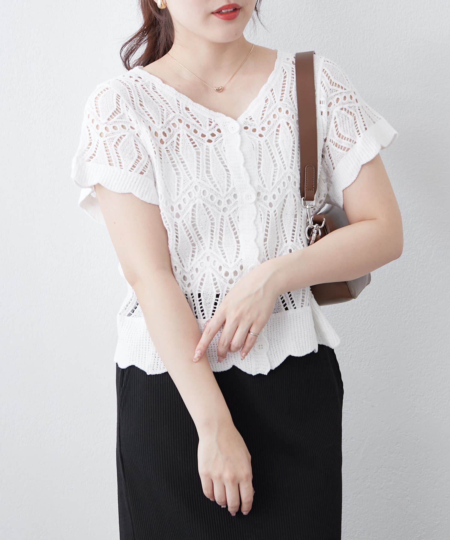 ・涼しげ感漂う、大人の透かし編みカーディガン。