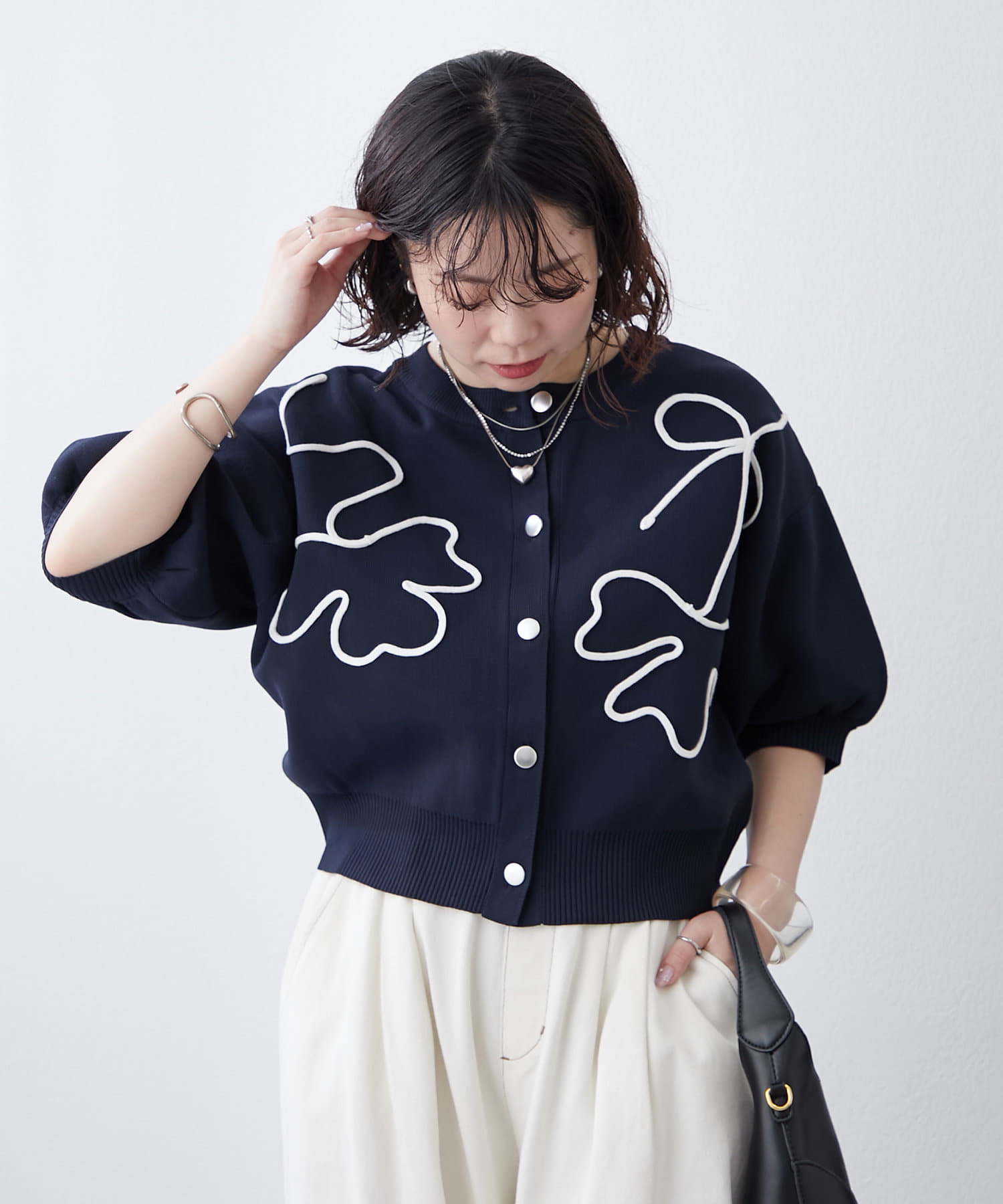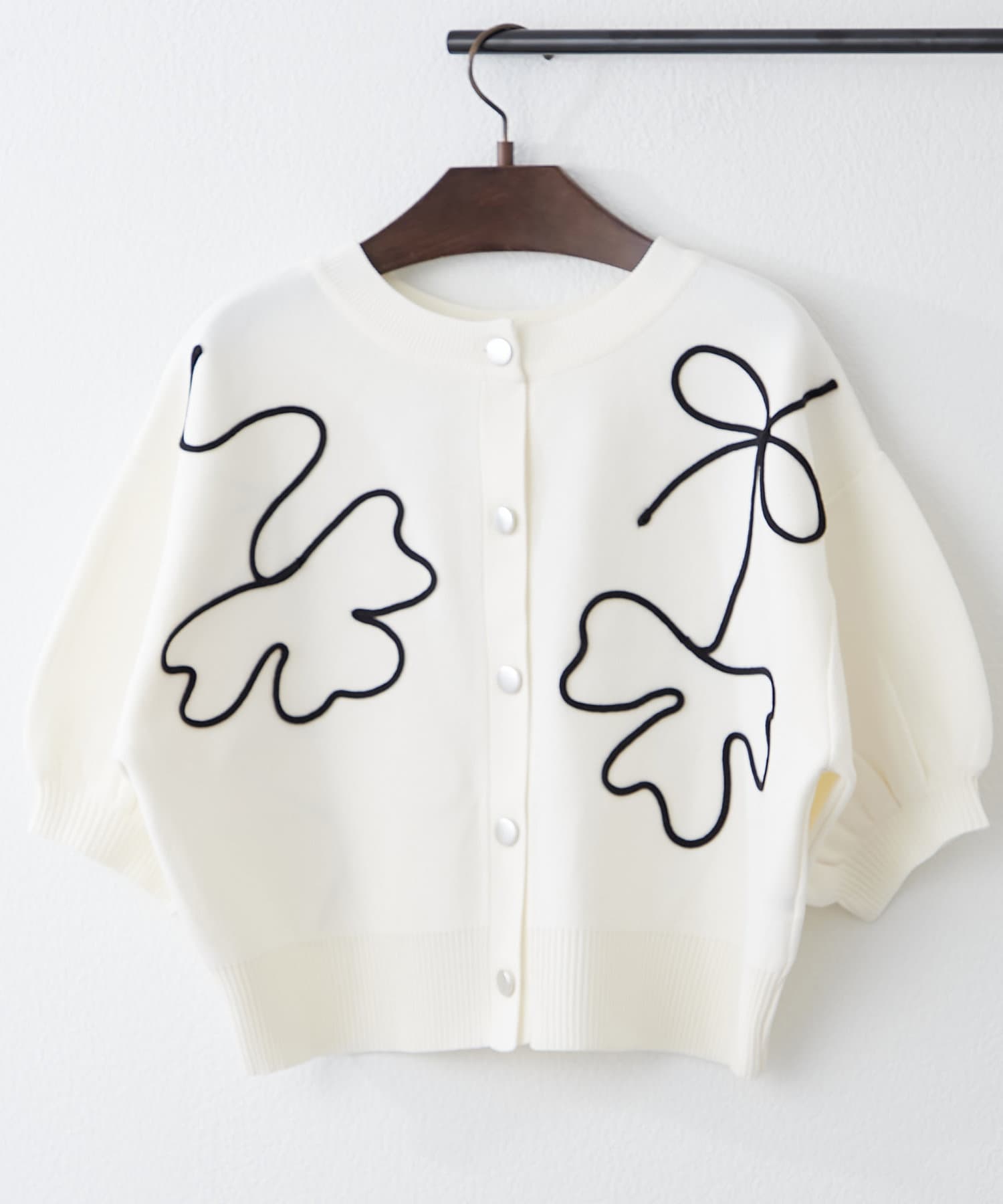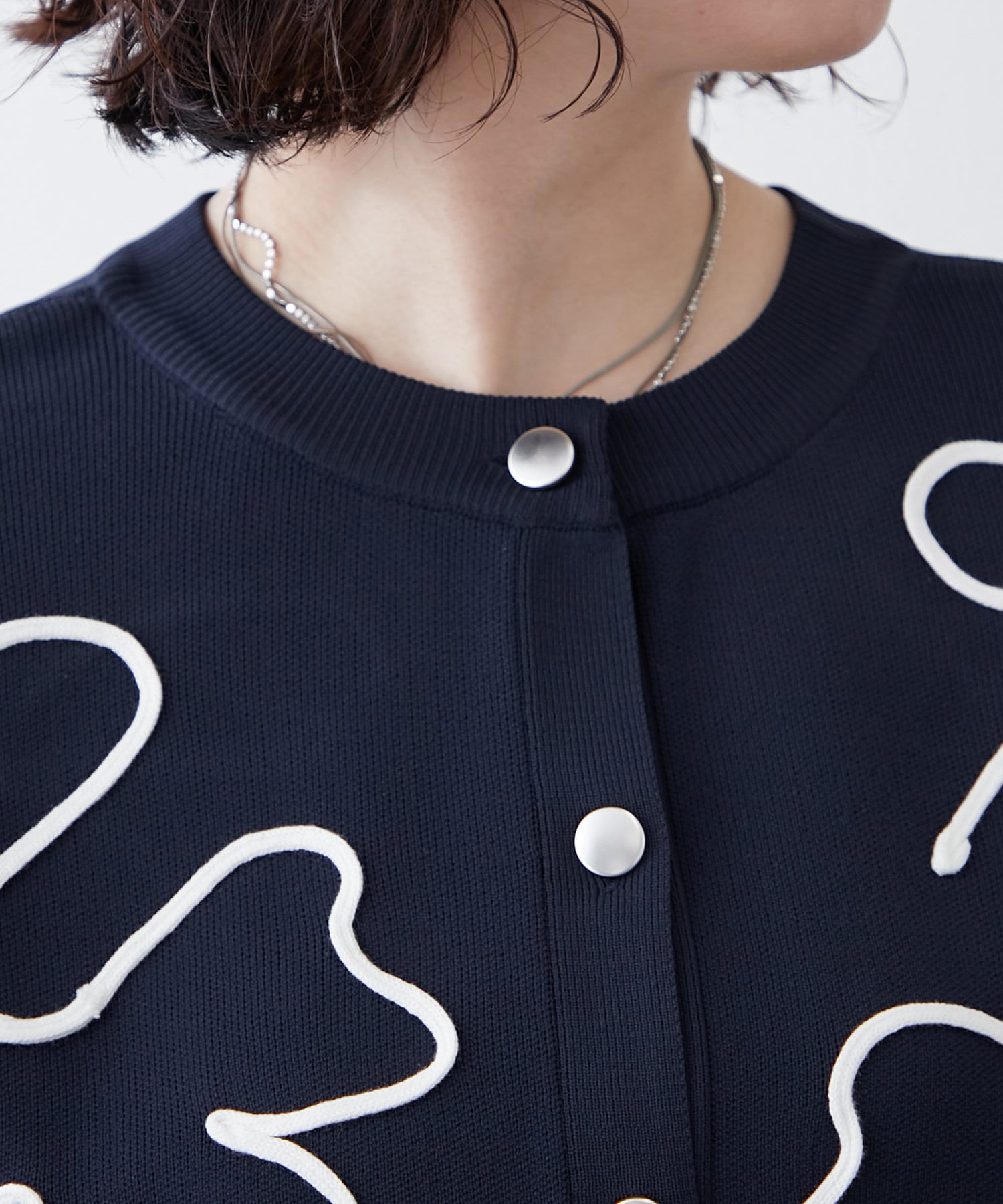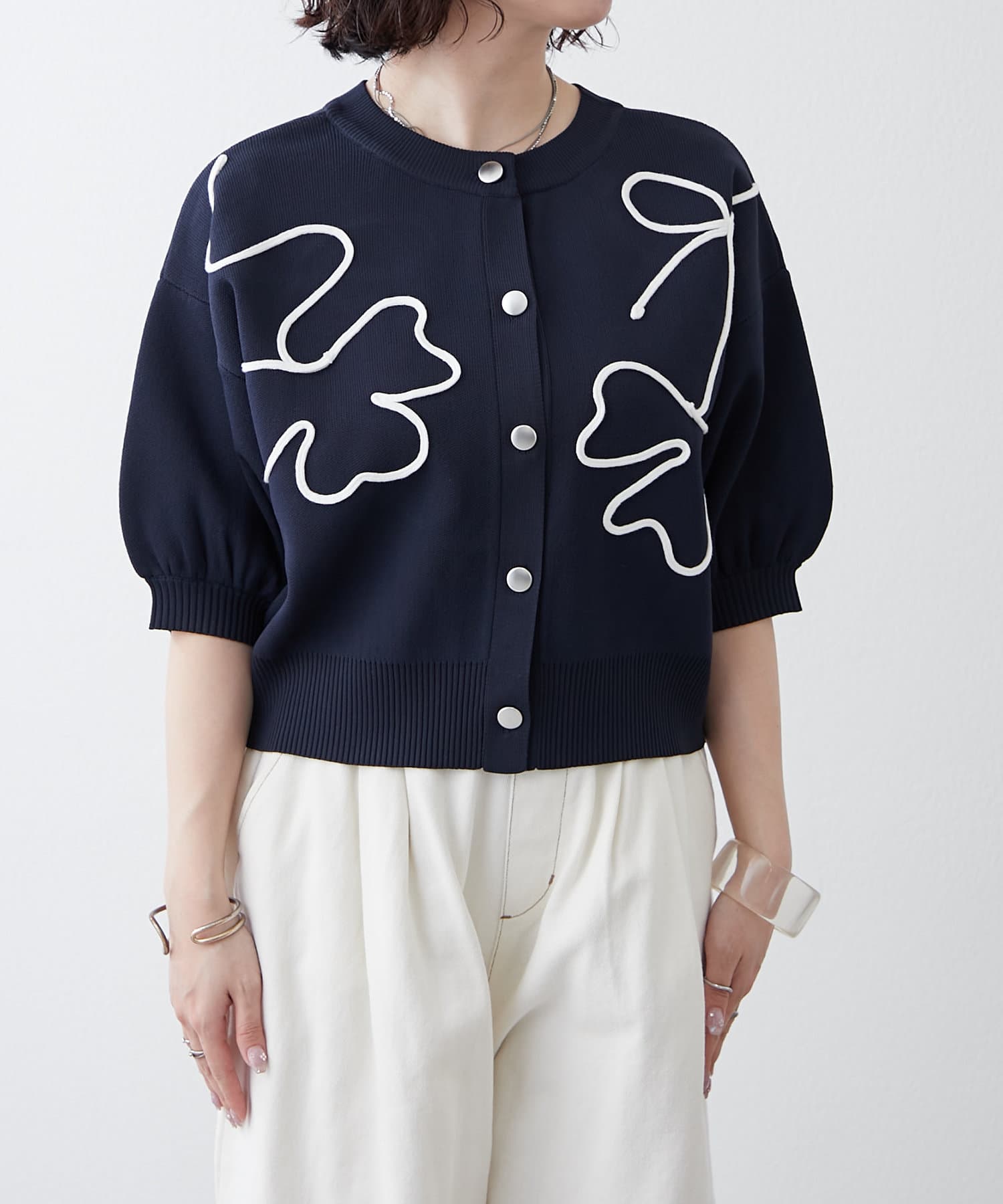 【前後2WAY】コード刺繍クルーカーディガン