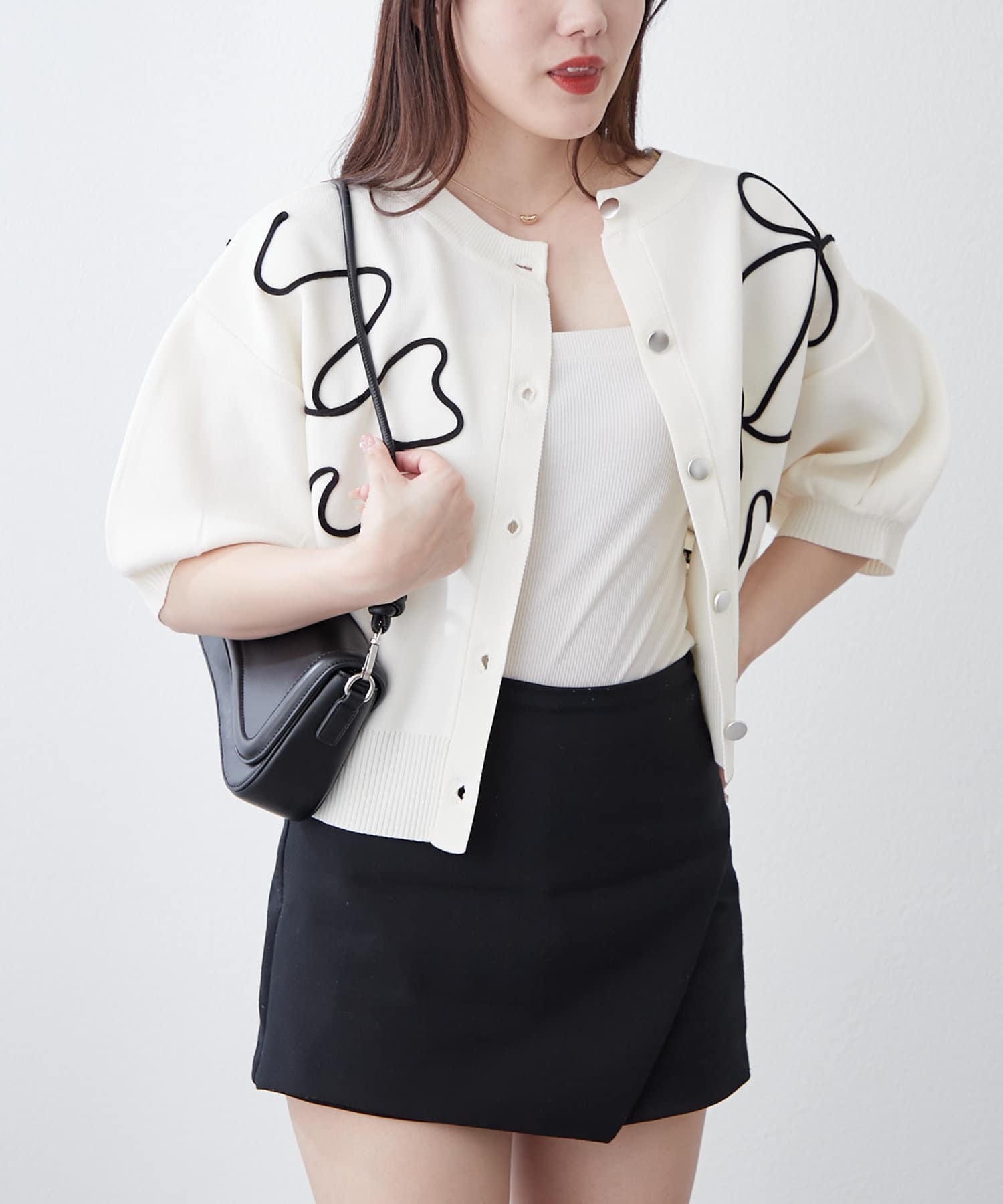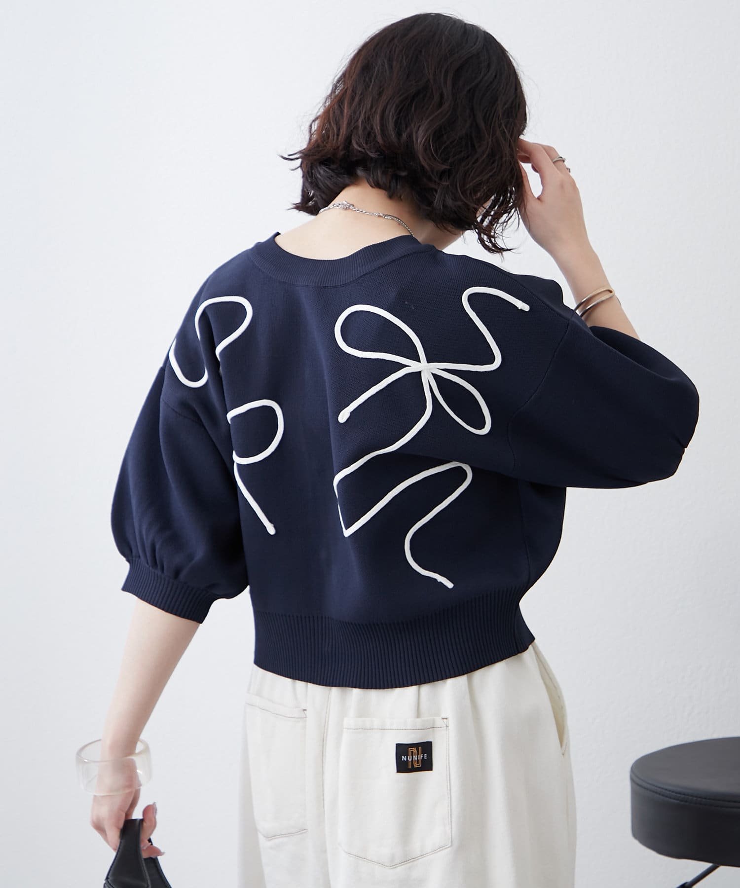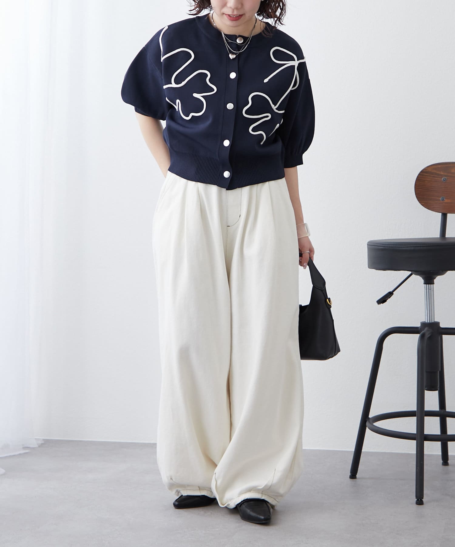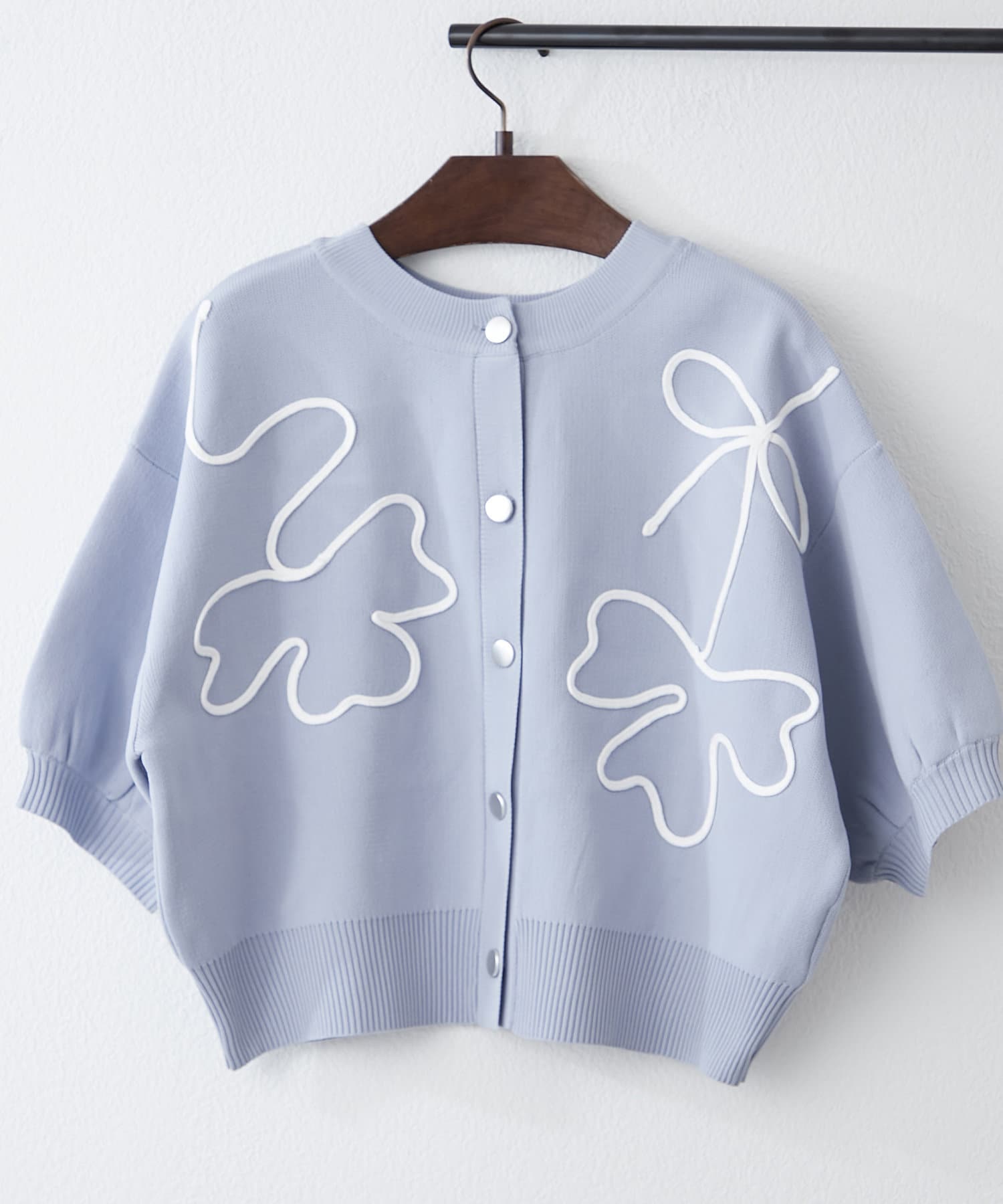 【前後2WAY】コード刺繍クルーカーディガン