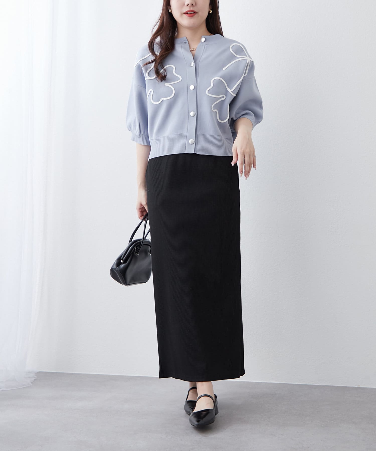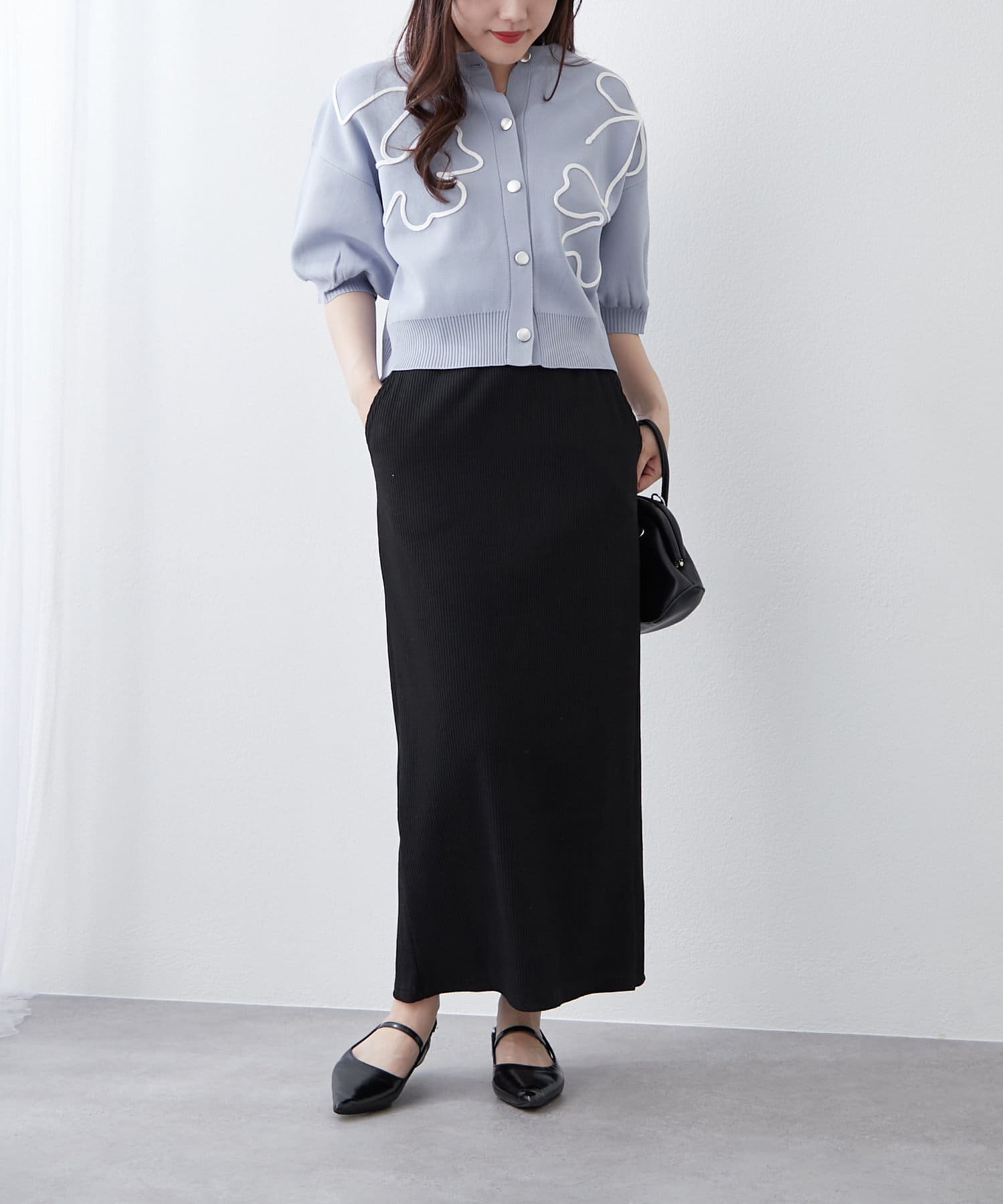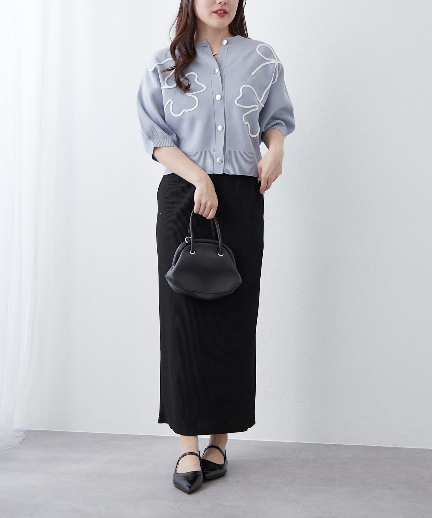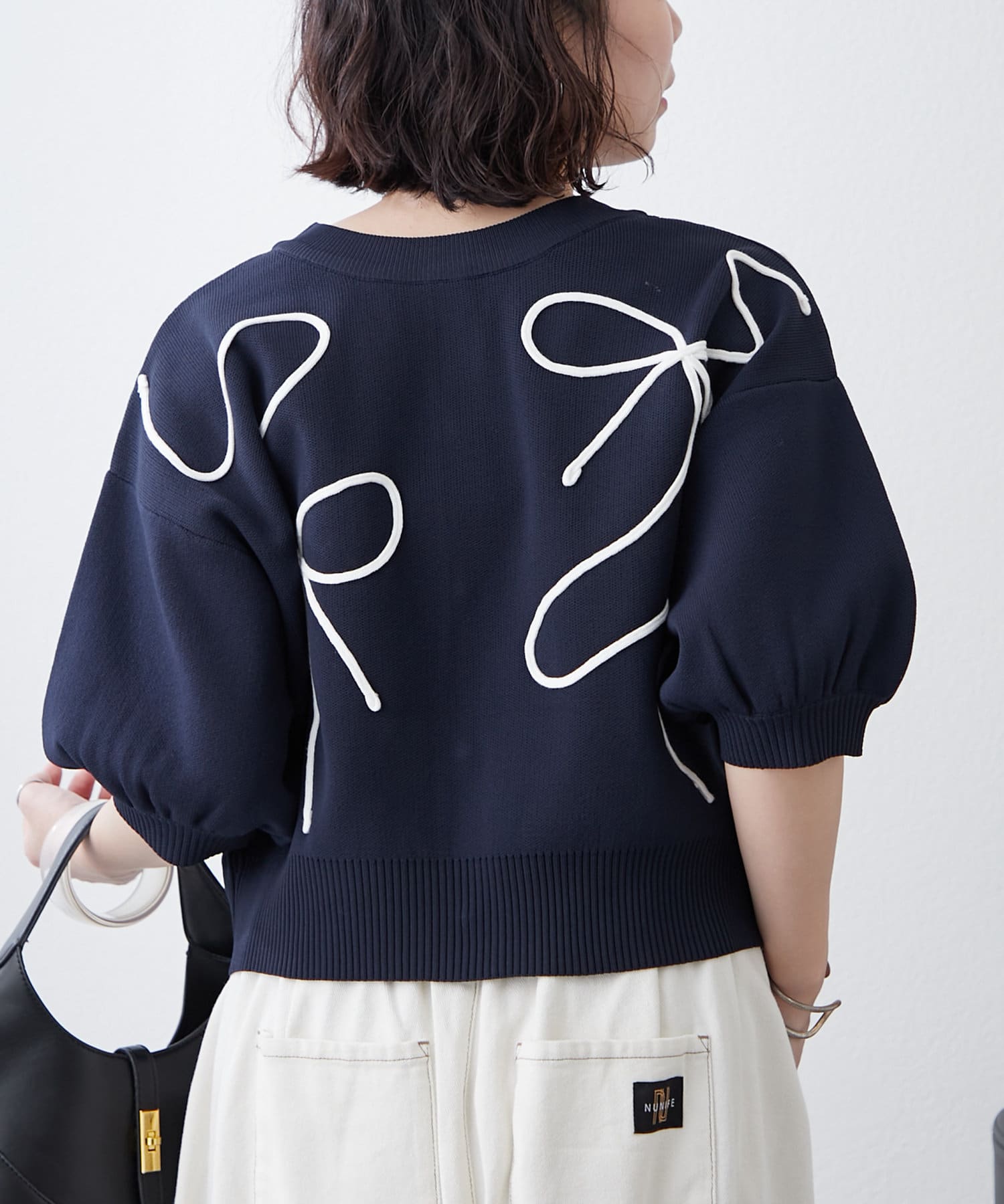【前後2WAY】コード刺繍クルーカーディガン