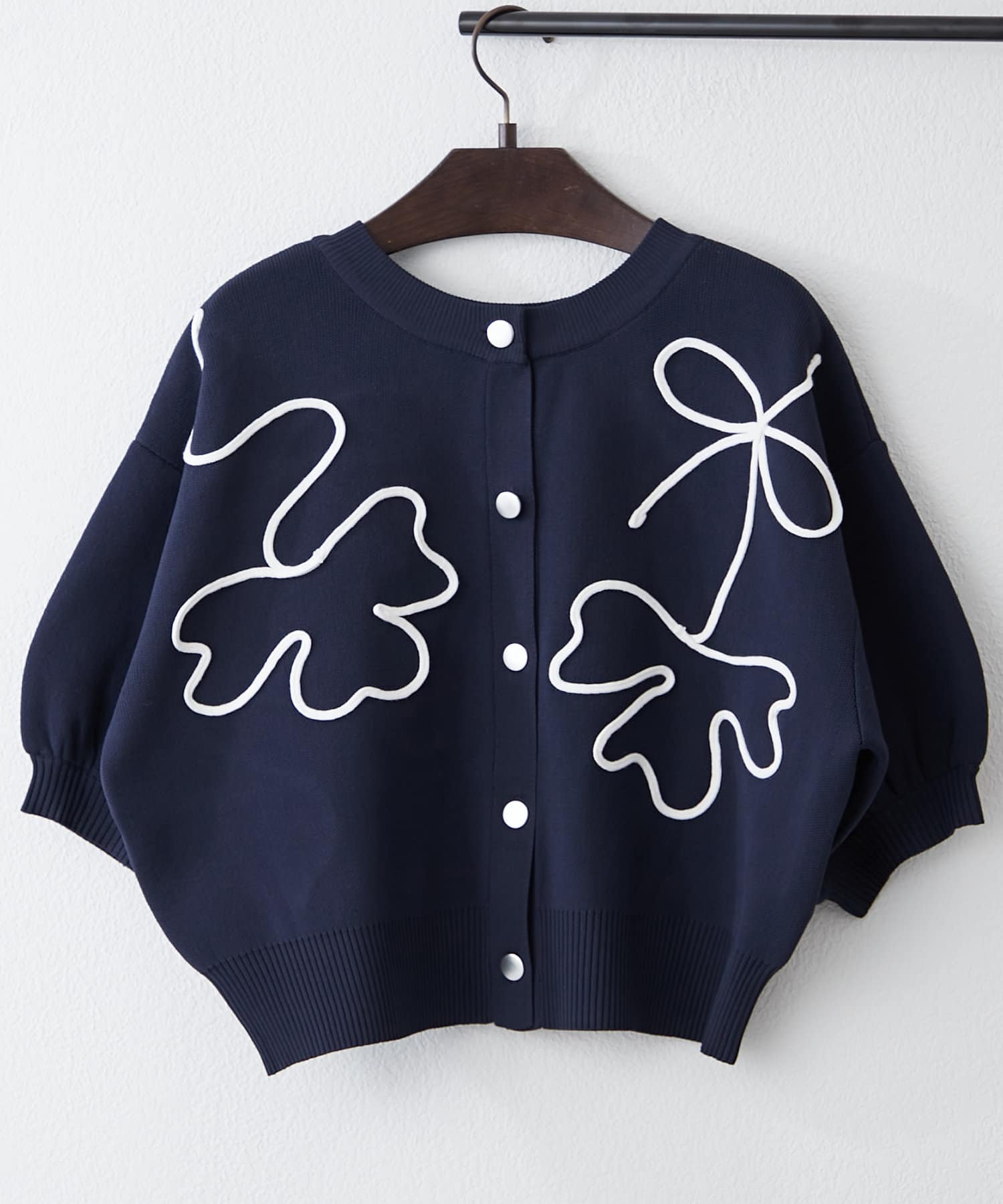 今季大注目のコード刺繍デザインのカーディガンに五分袖タイプが登場