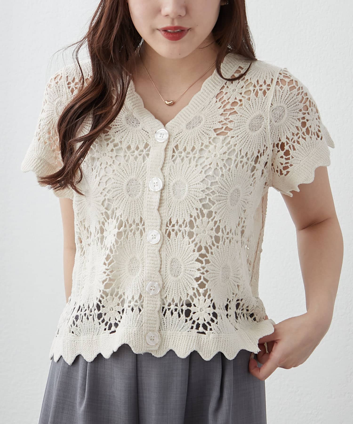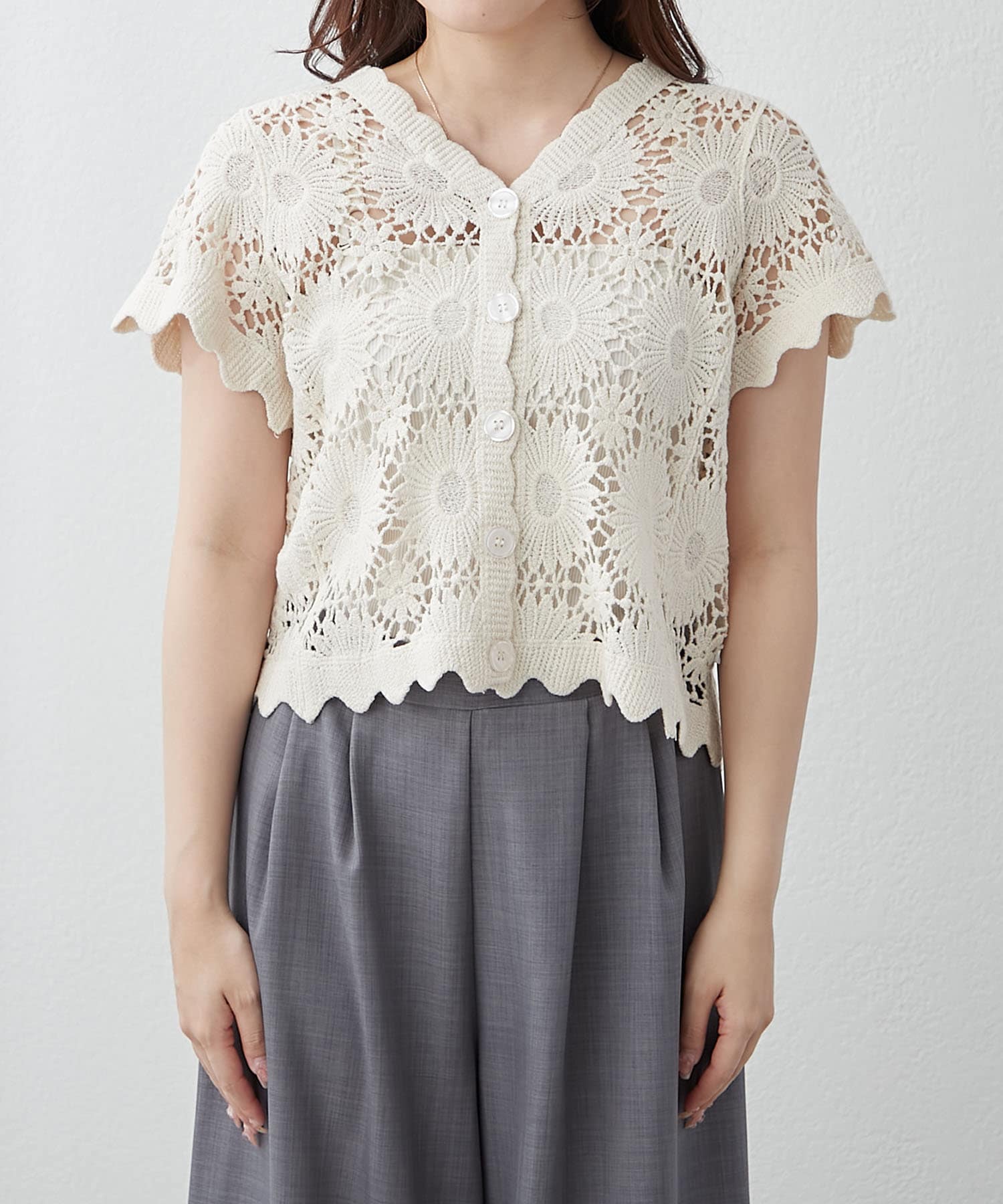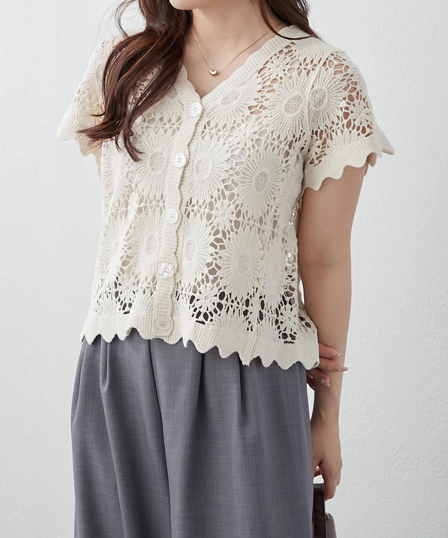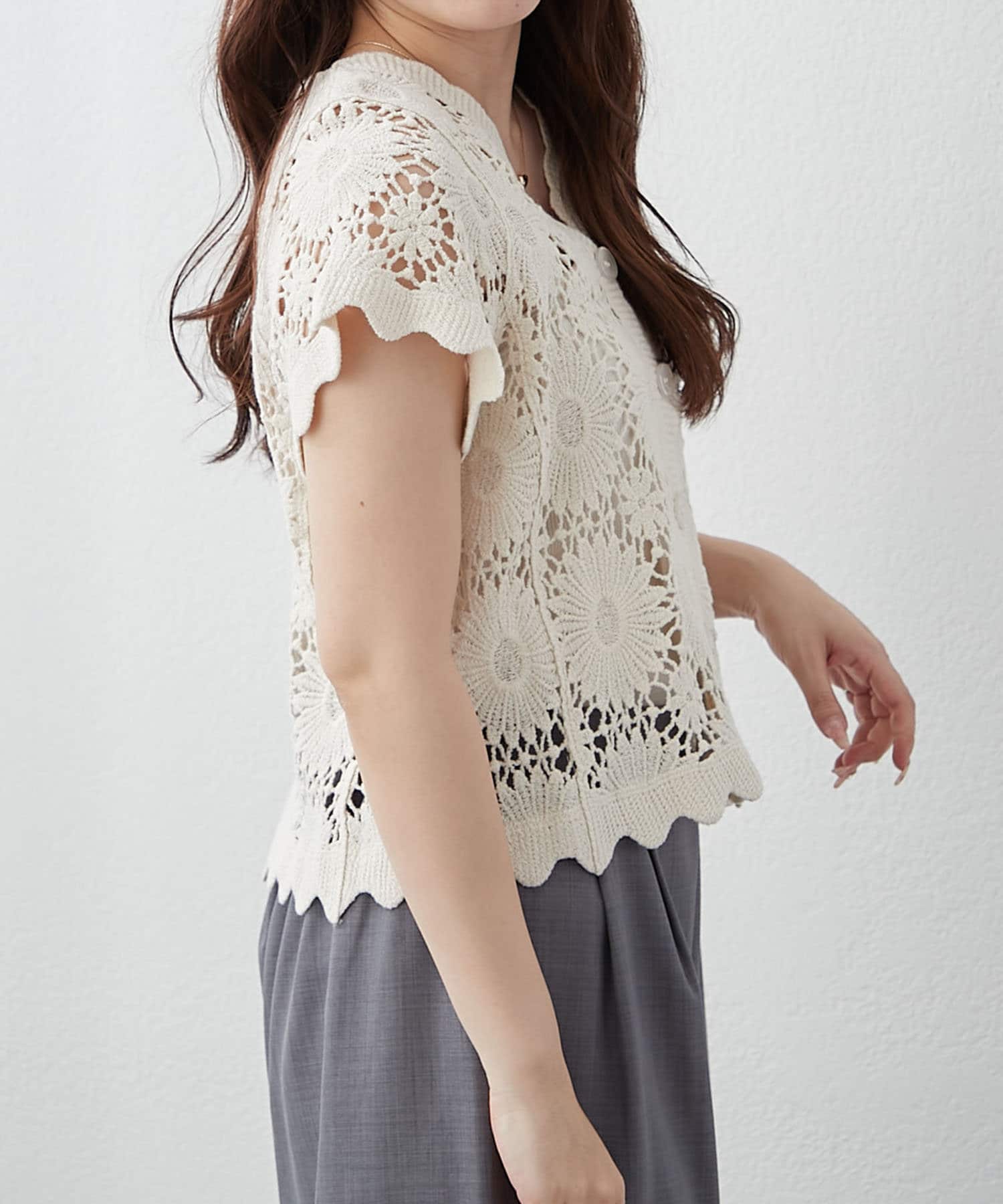 涼し気レース編み【RMAF】かぎ針半袖カーディガン
