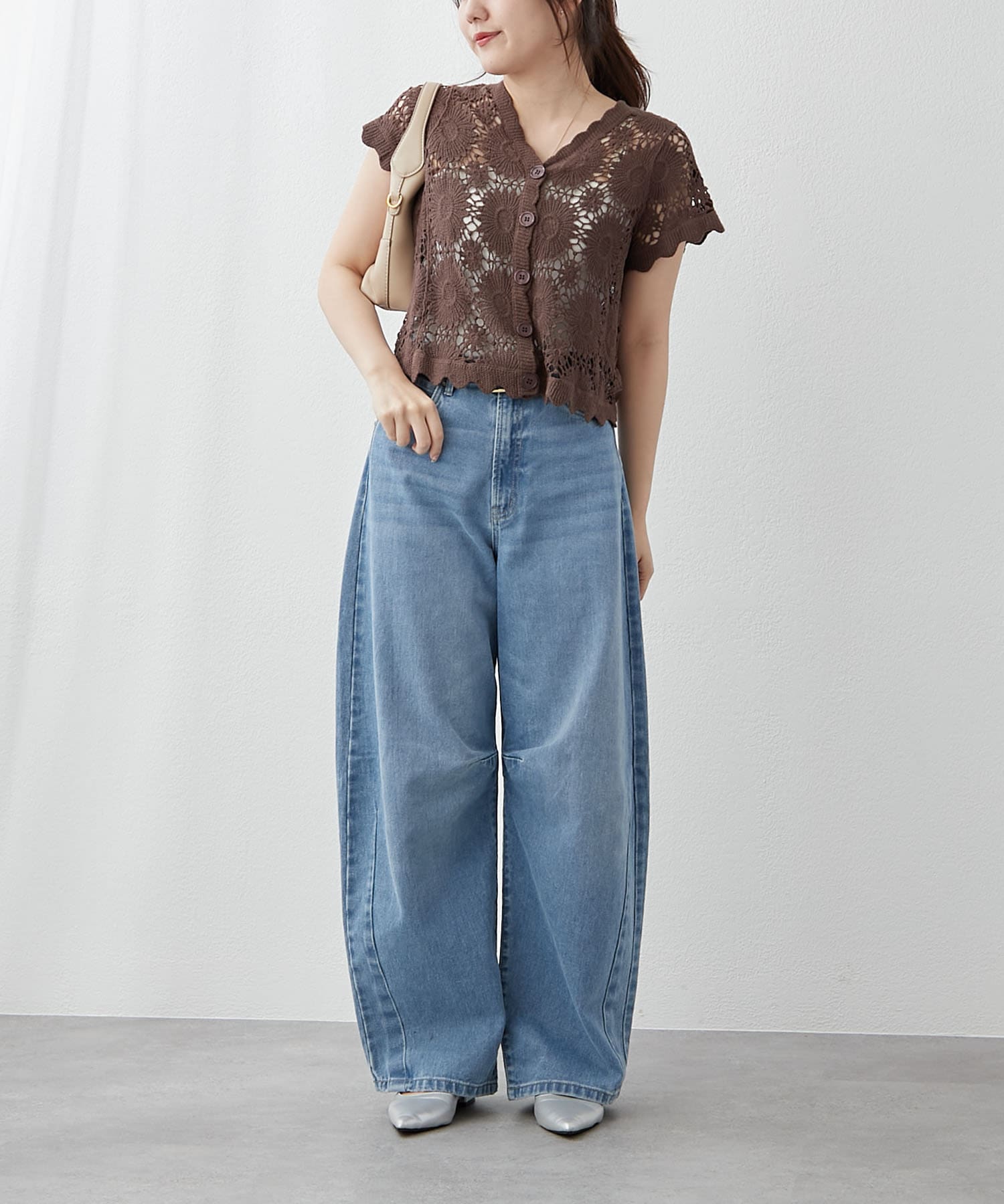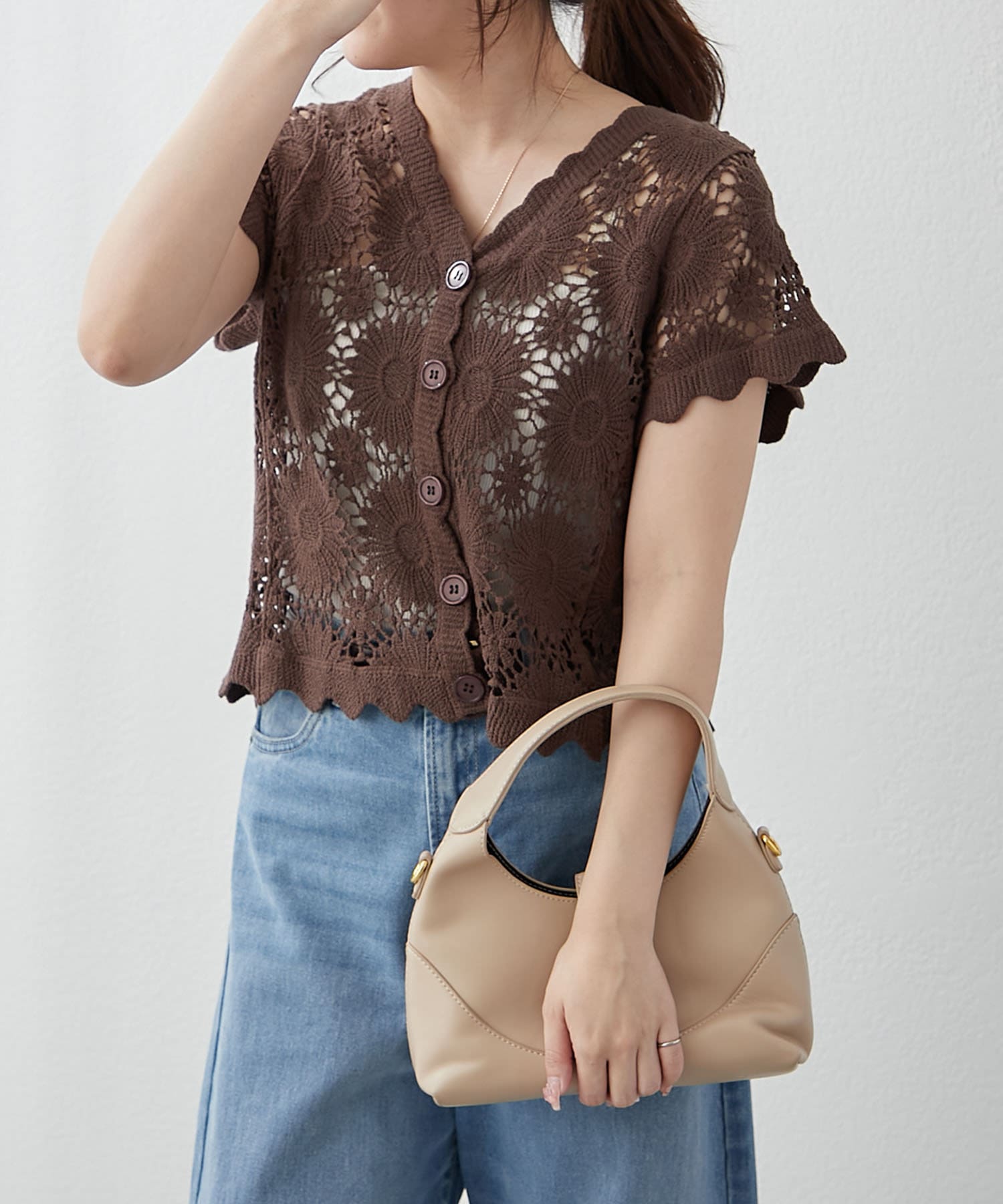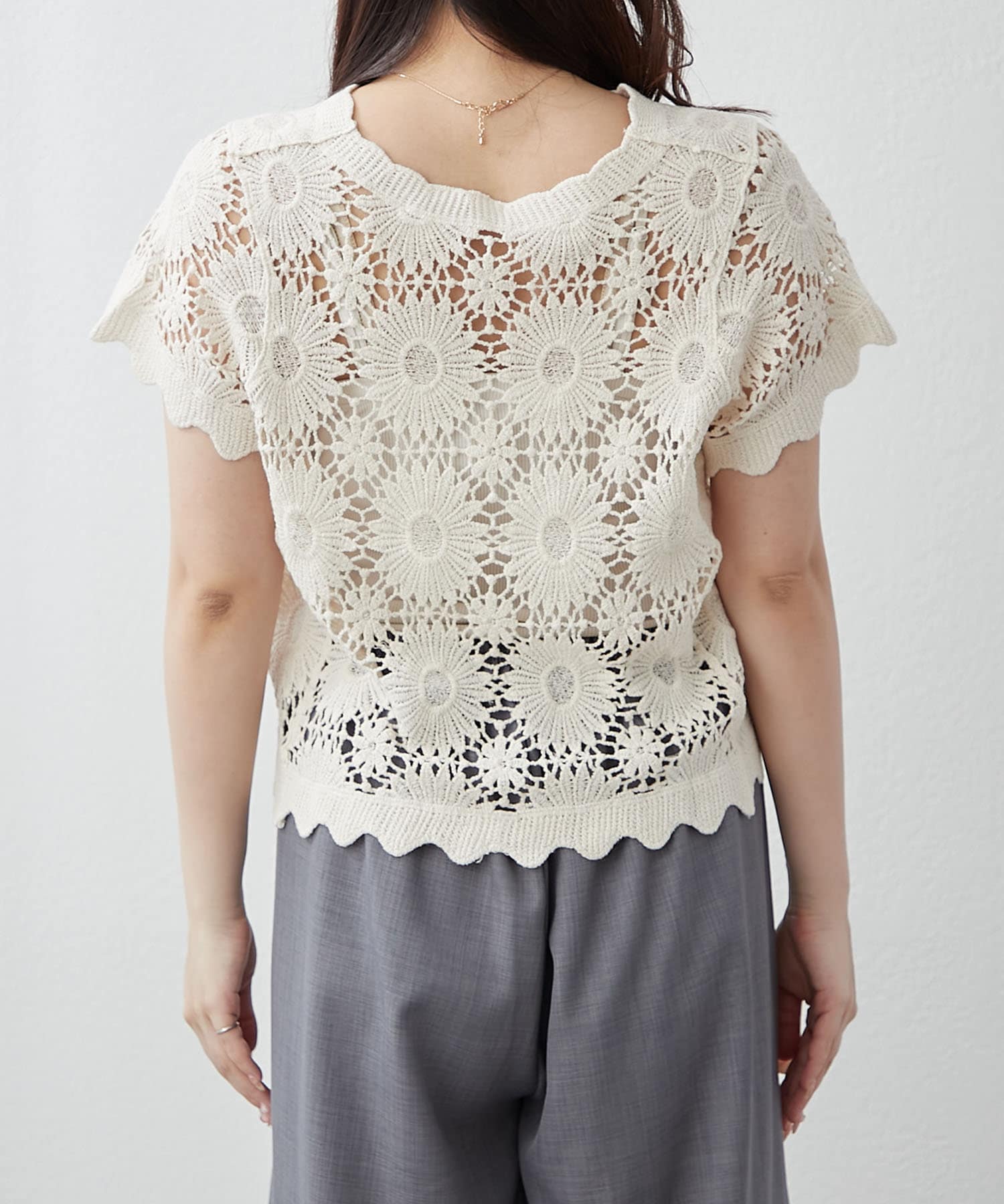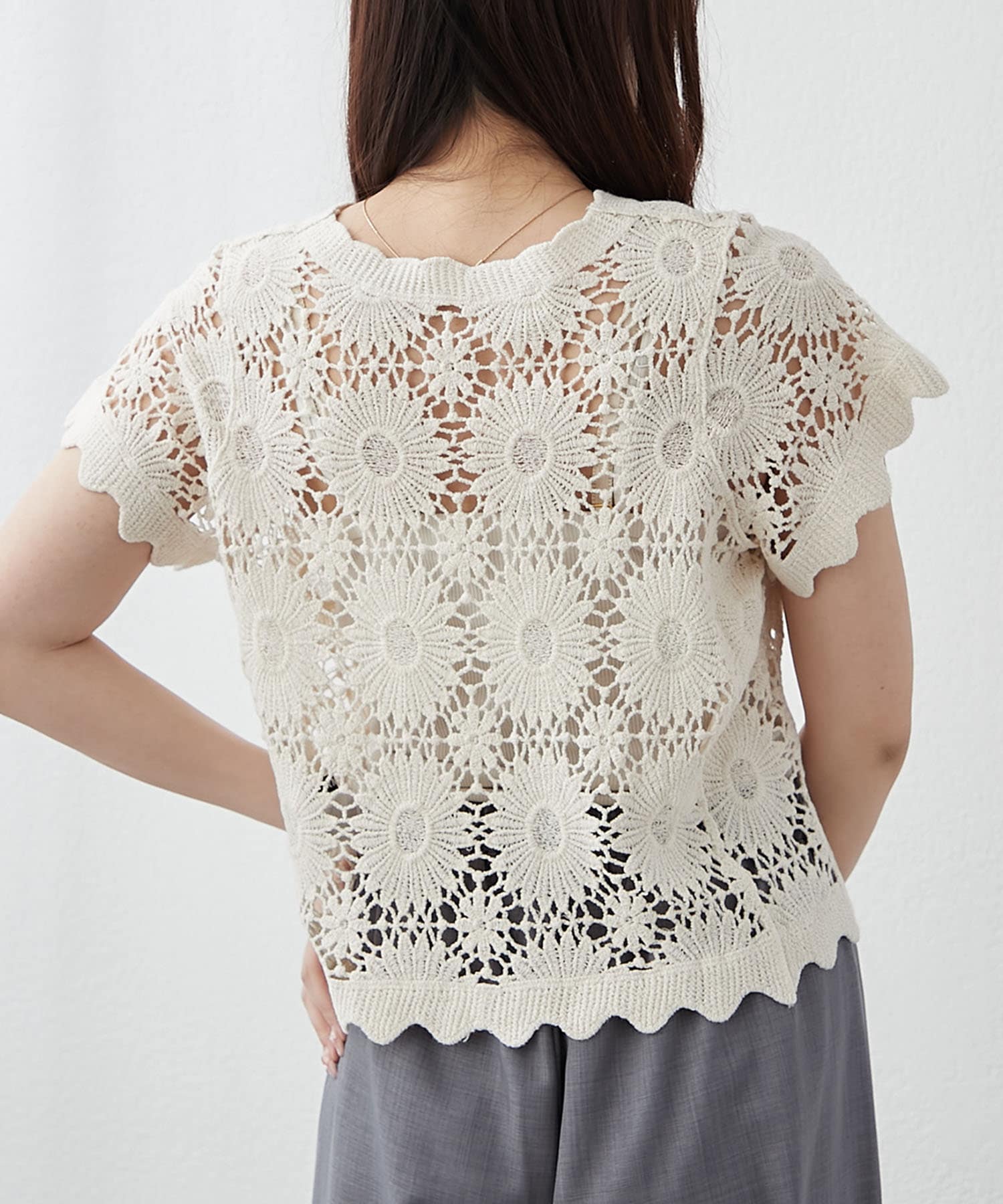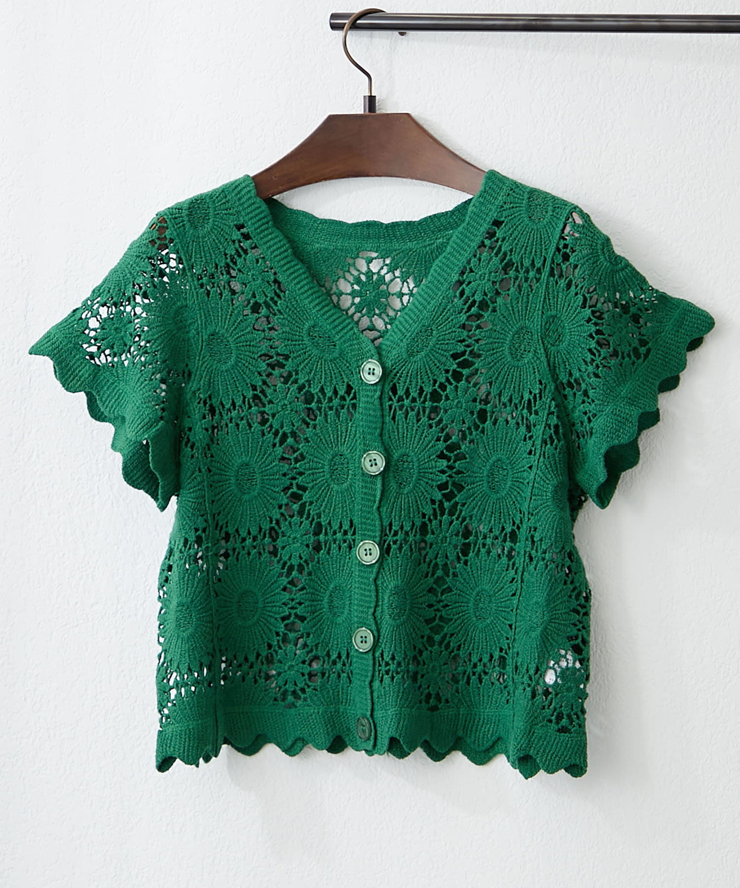 涼し気レース編み【RMAF】かぎ針半袖カーディガン