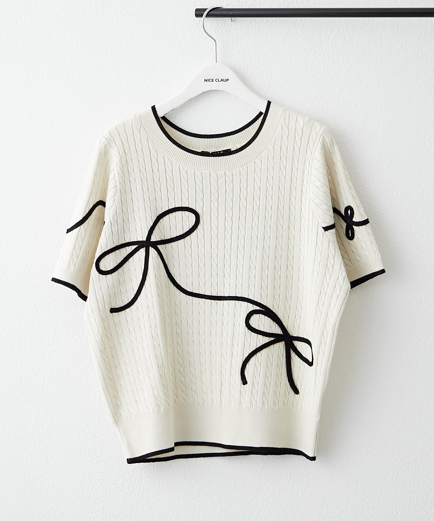 ・コード刺繡がポイントの半袖サマーニットトップス。