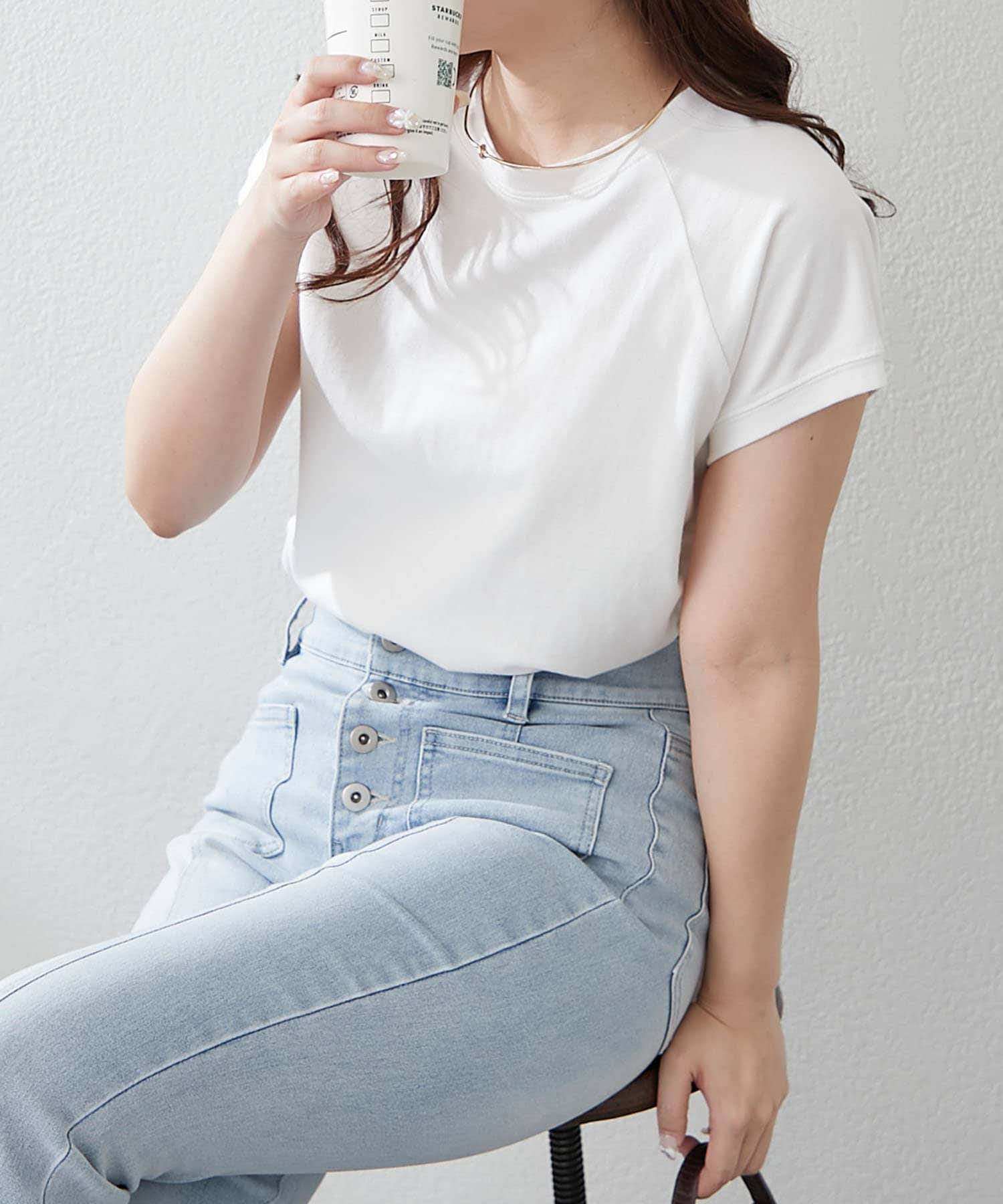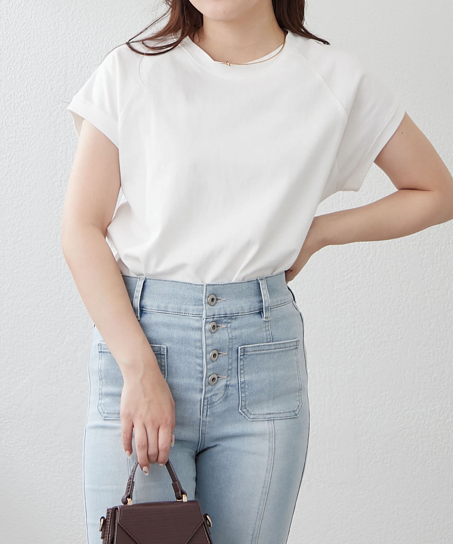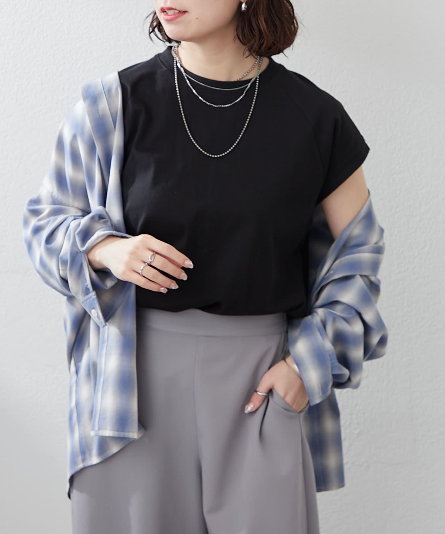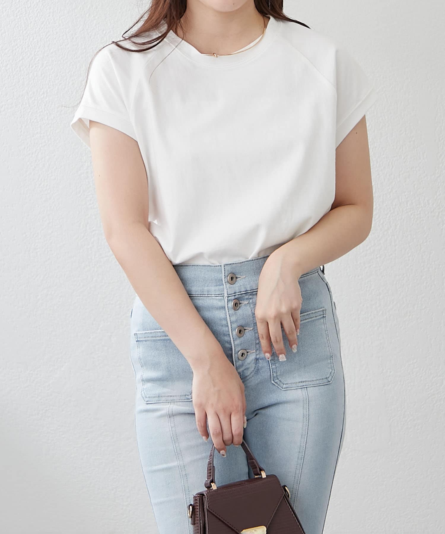 【8色展開!】オーガニック素材、華奢見えフレンチTシャツ