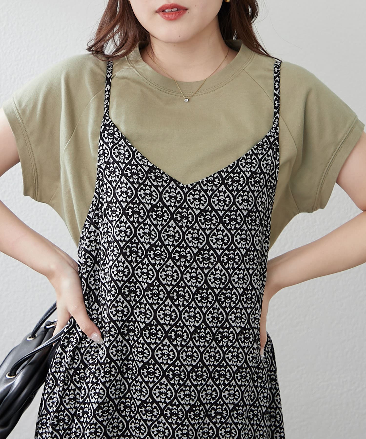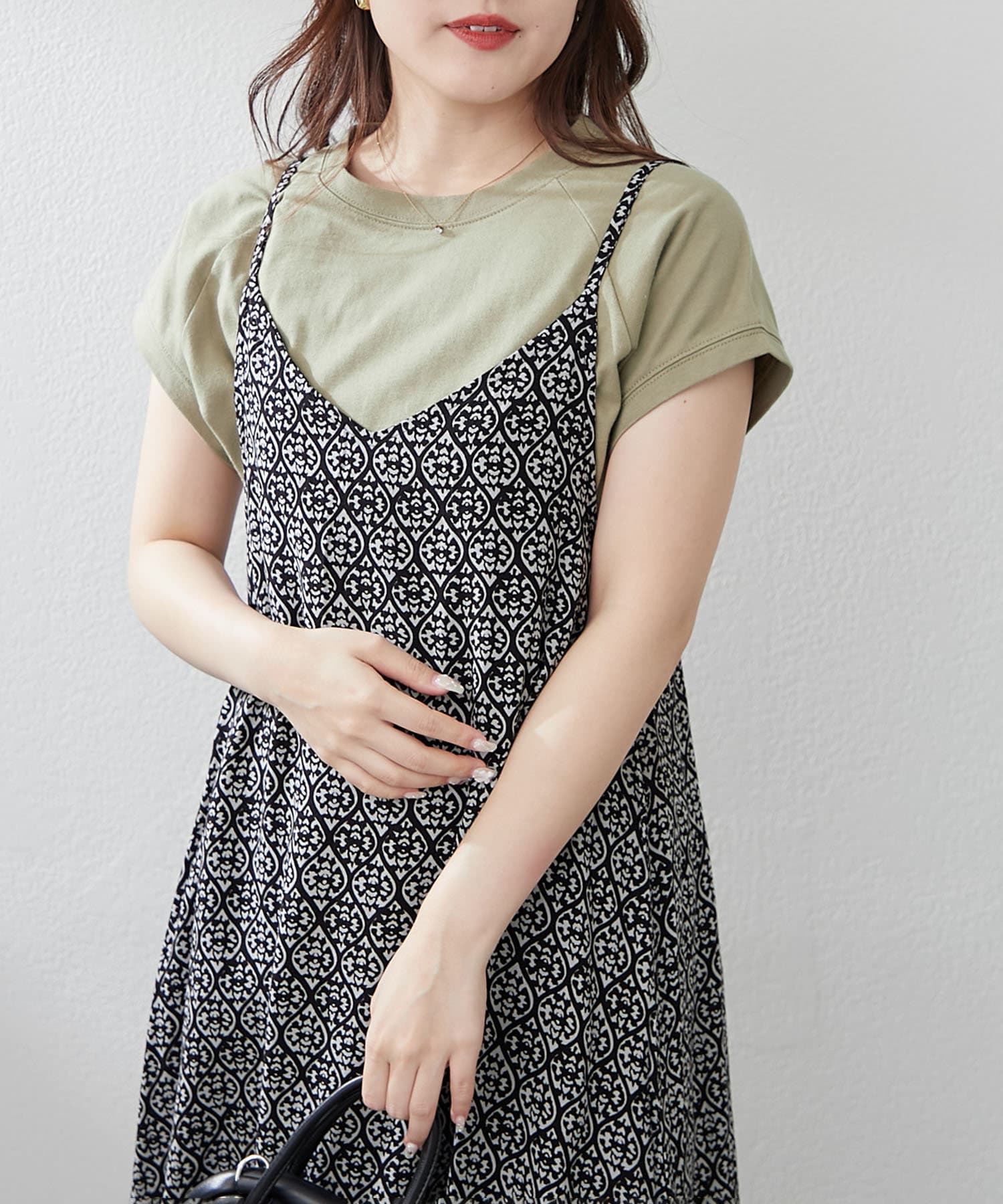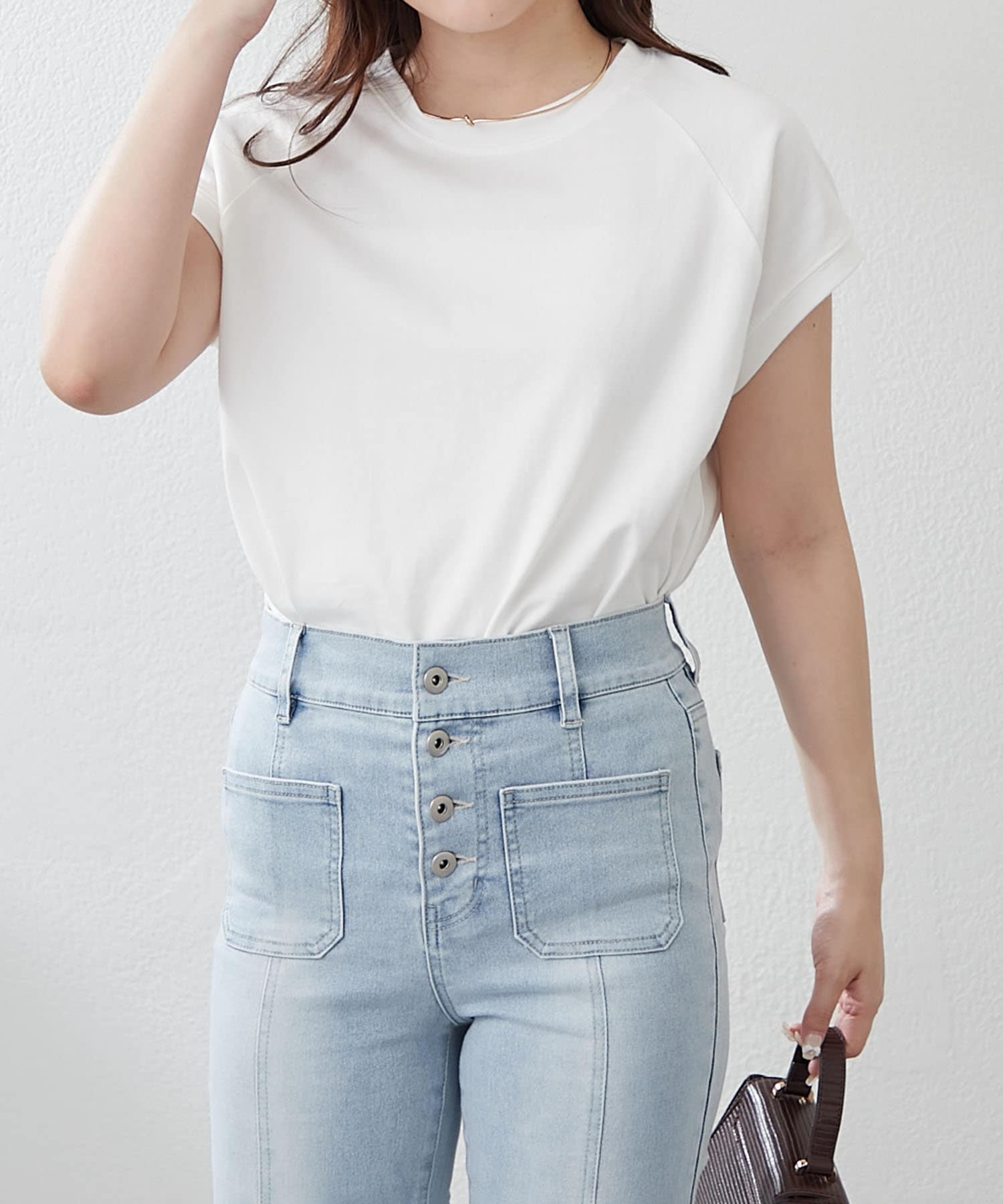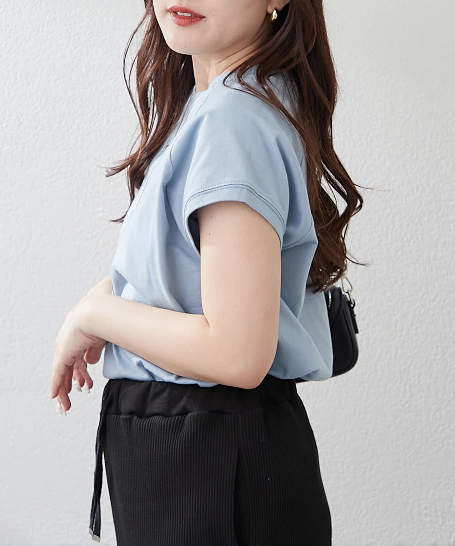 ・肩に入った切替ラインとフレンチスリーブの丈感で、気になる二の腕もすっきり華奢見え。