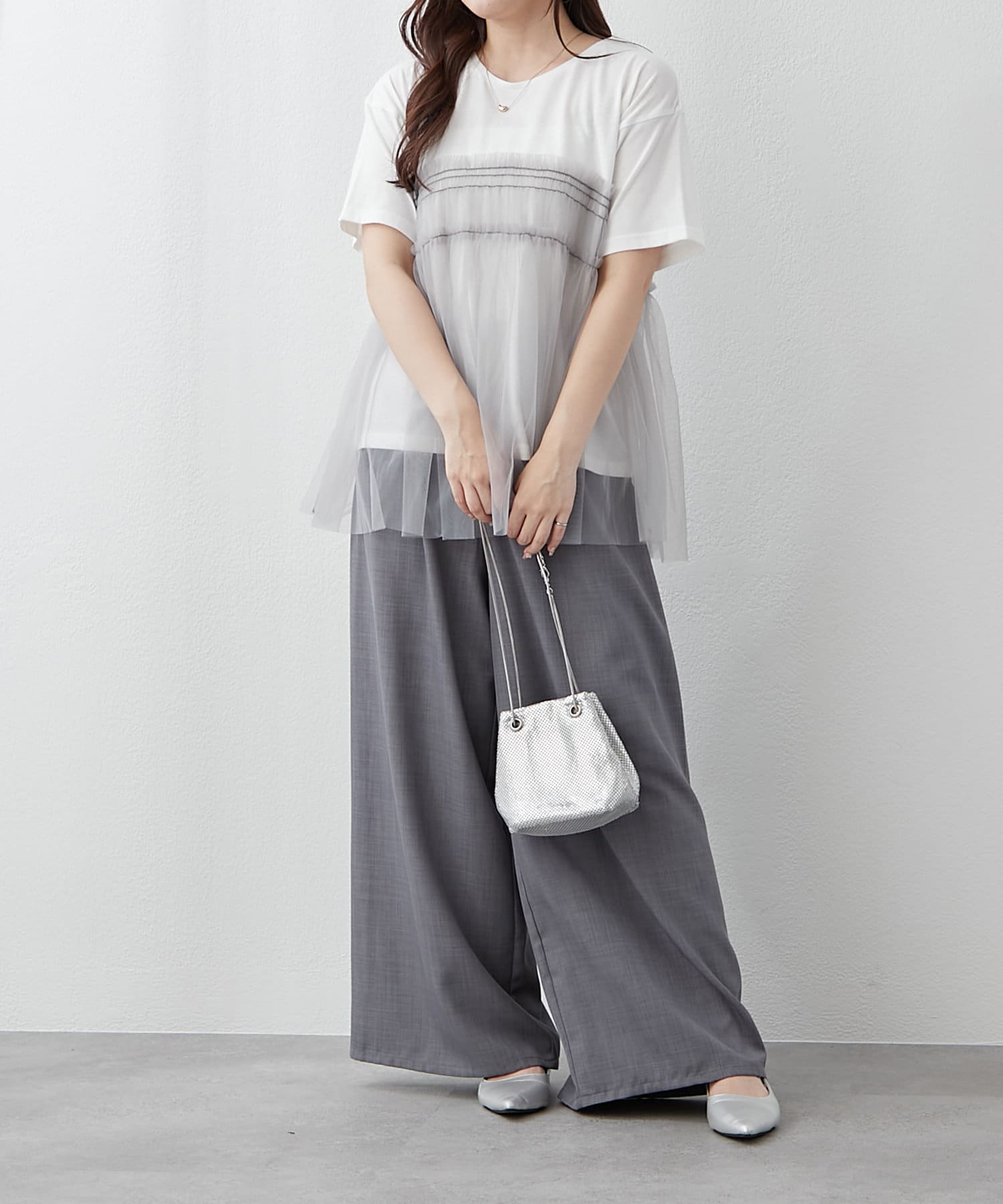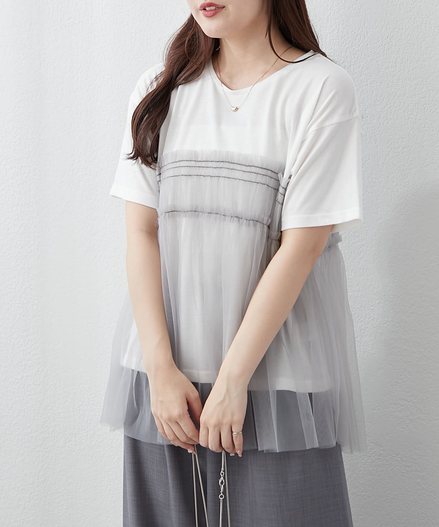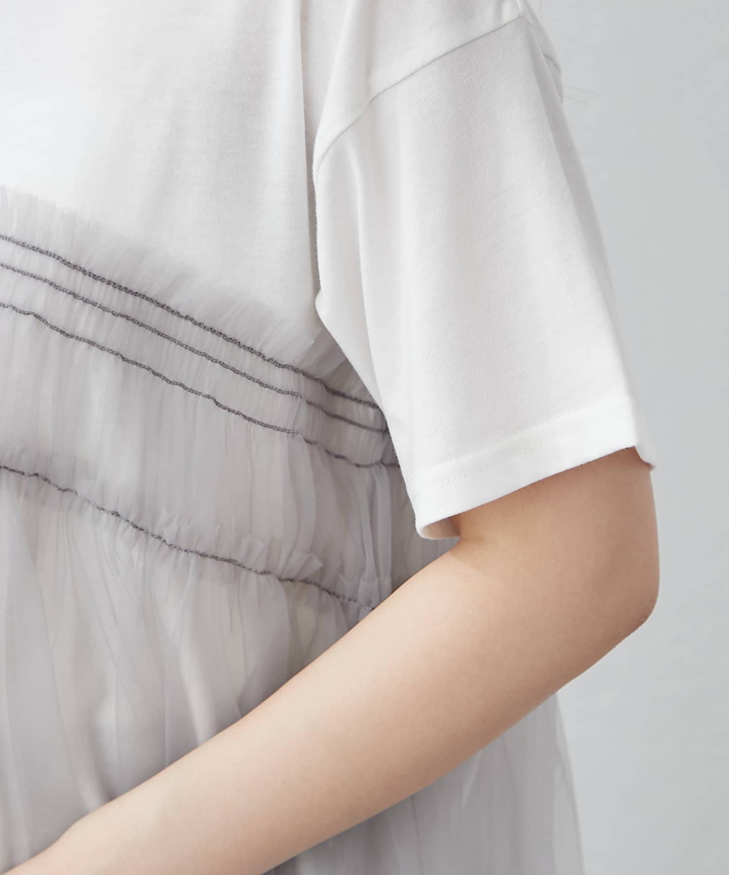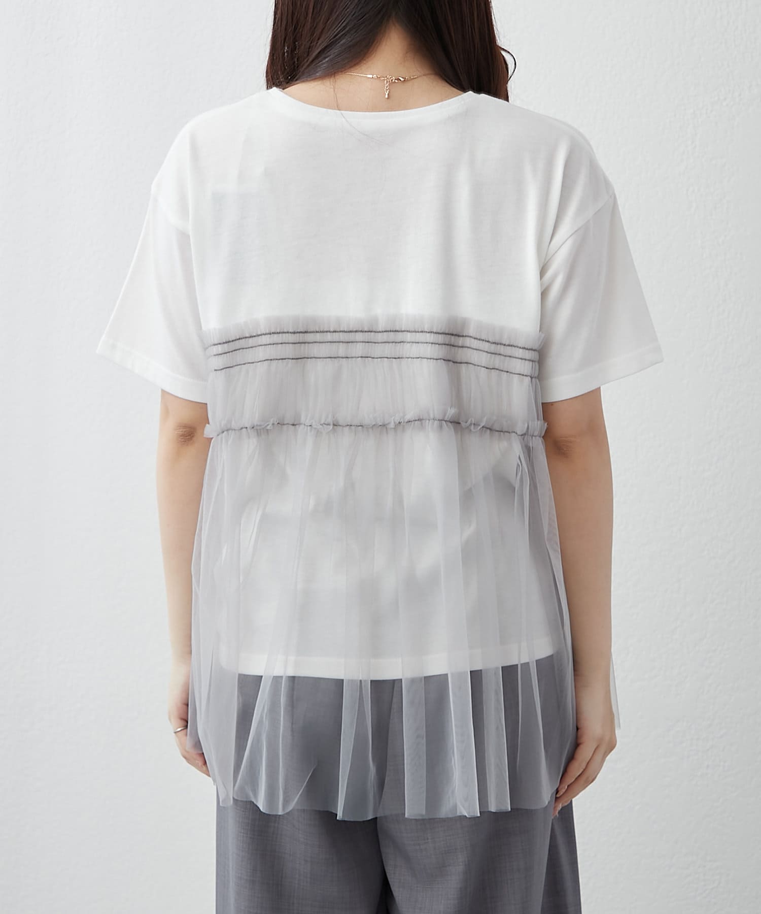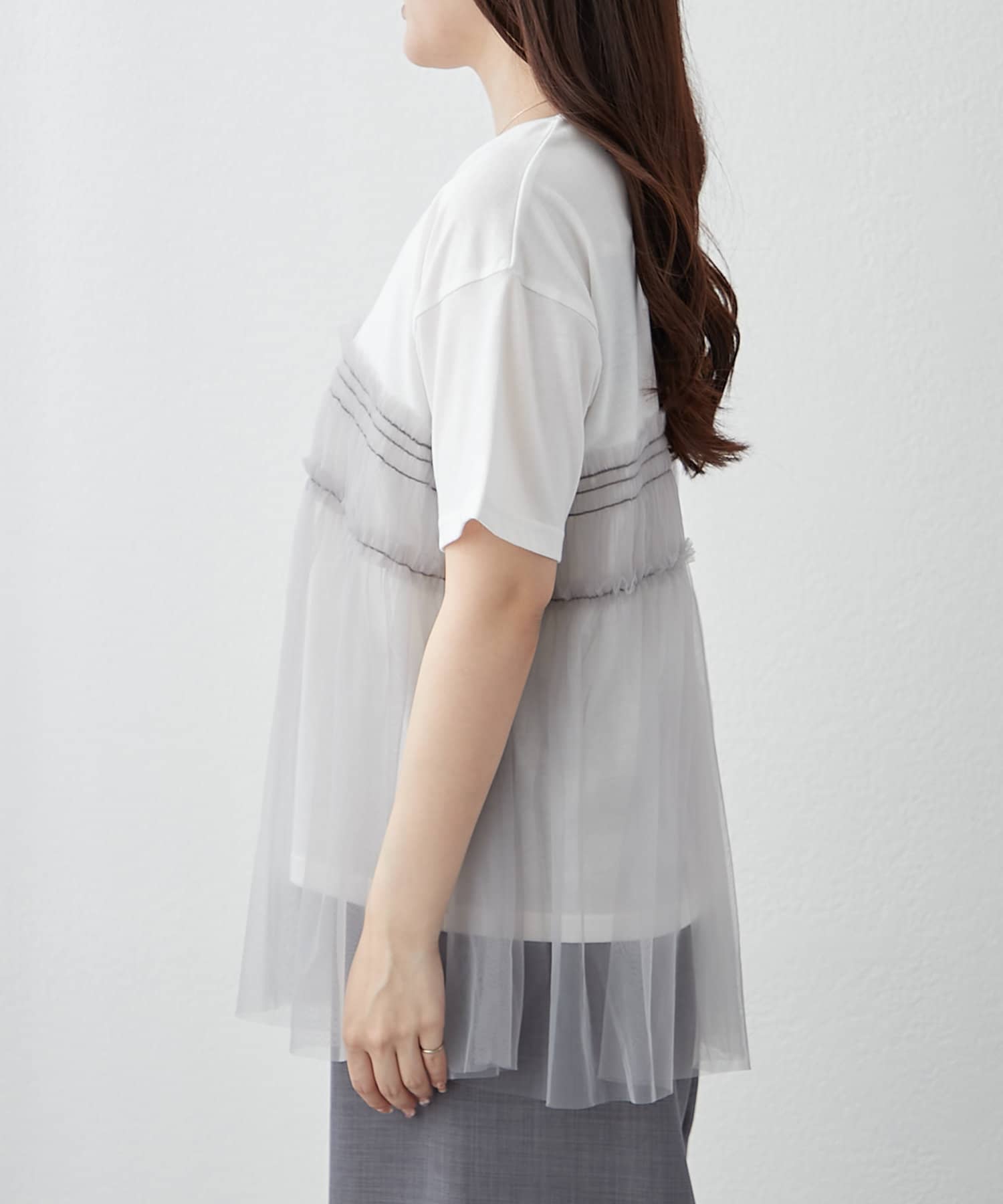 ・春夏らしいチュール素材を組み合わせたレイヤード風Tシャツ