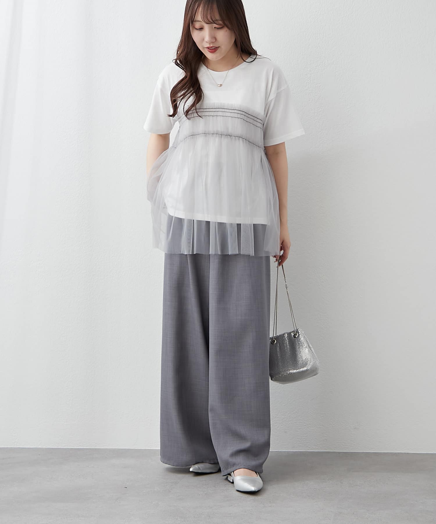 体型カバーにも◎、チュールドッキングTシャツ