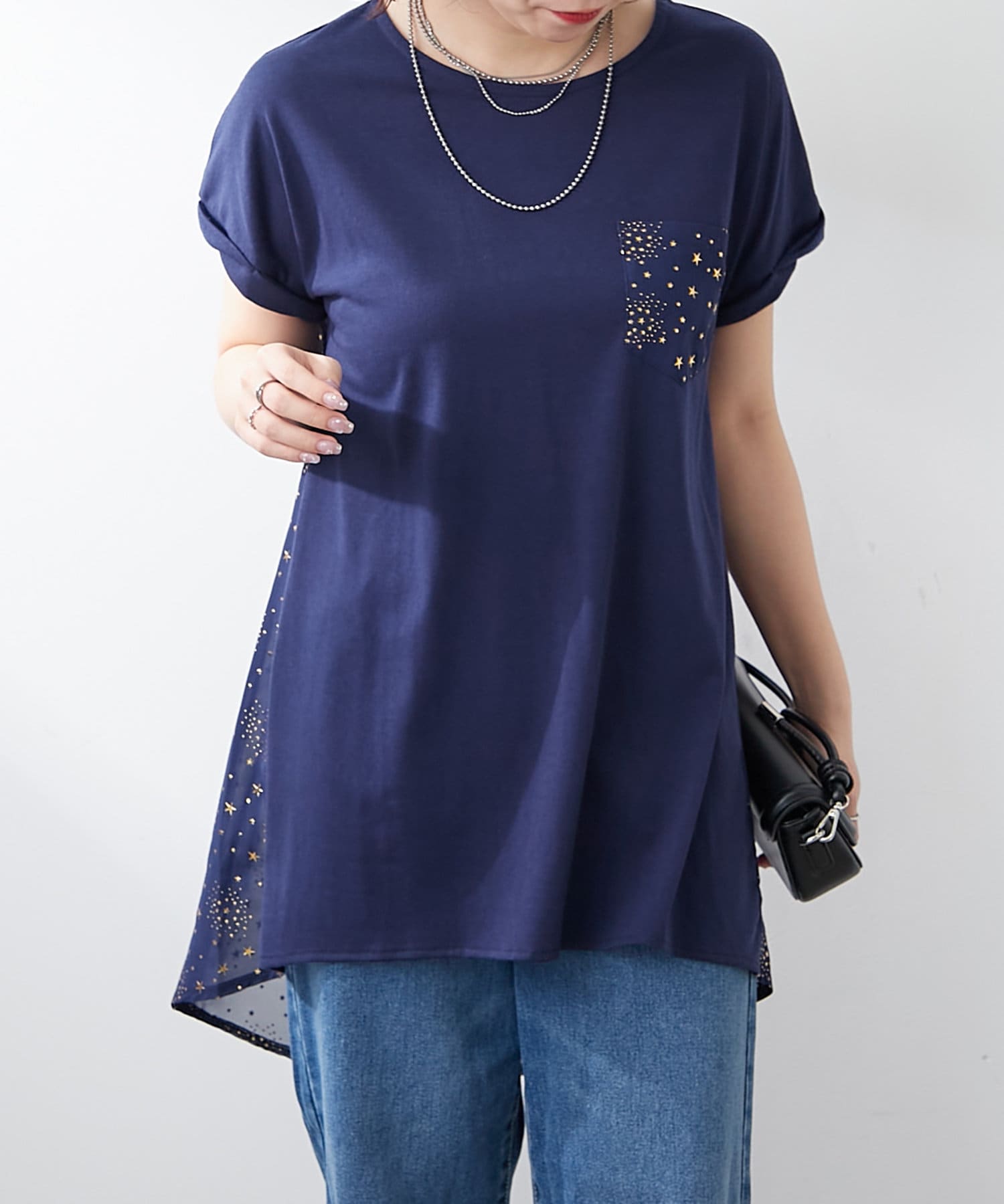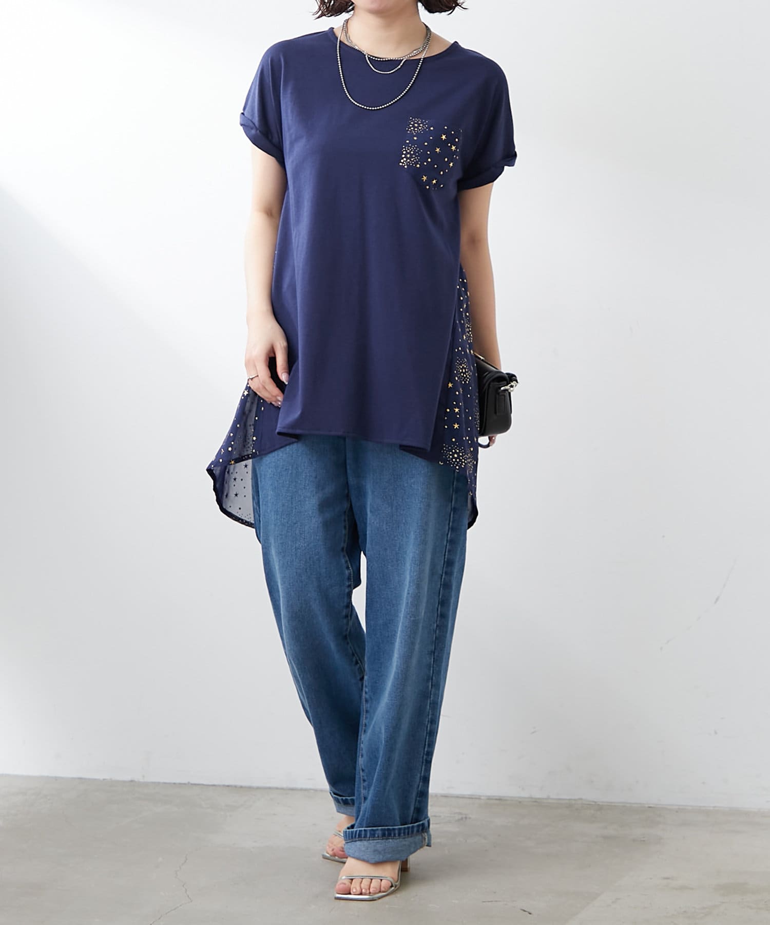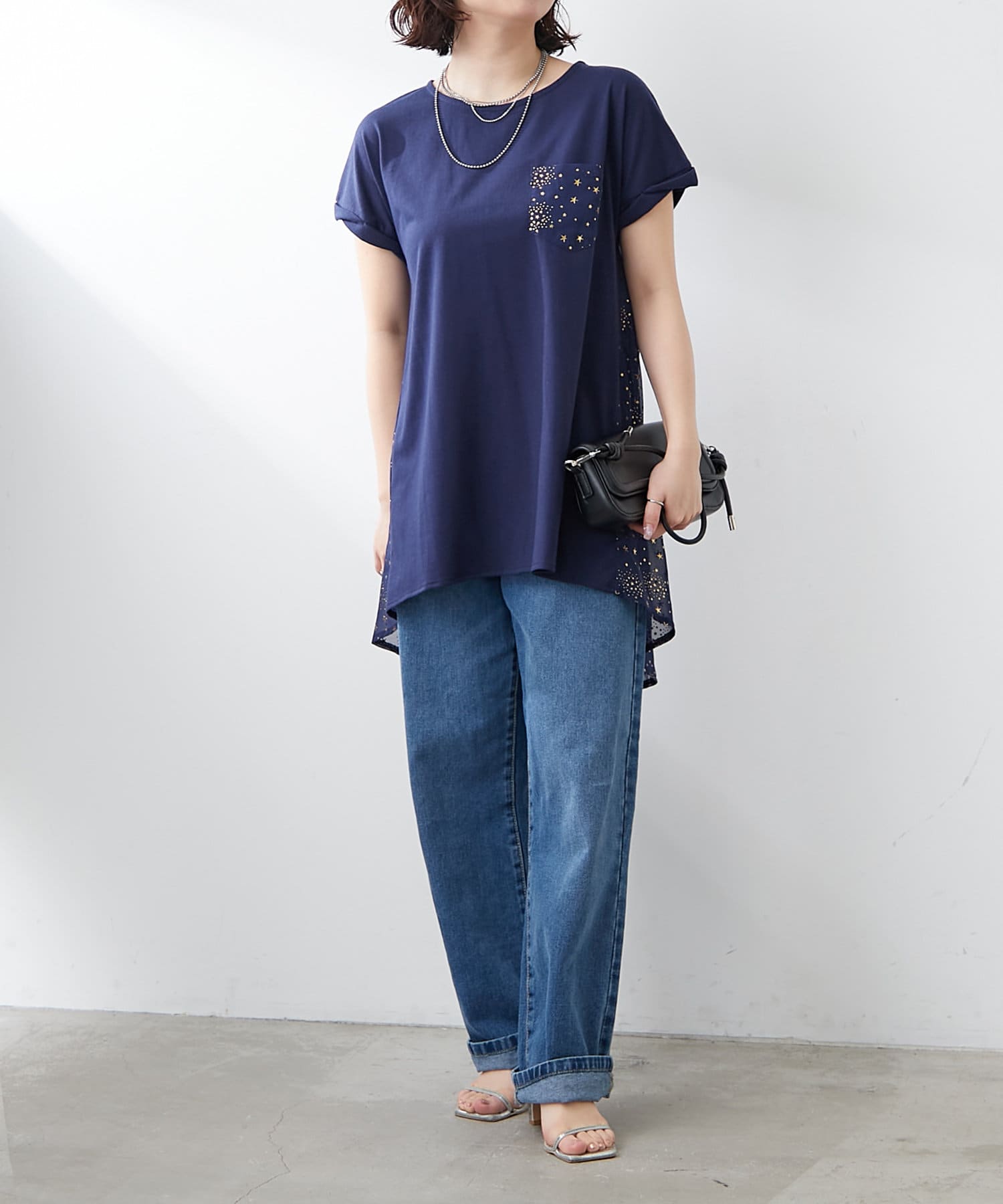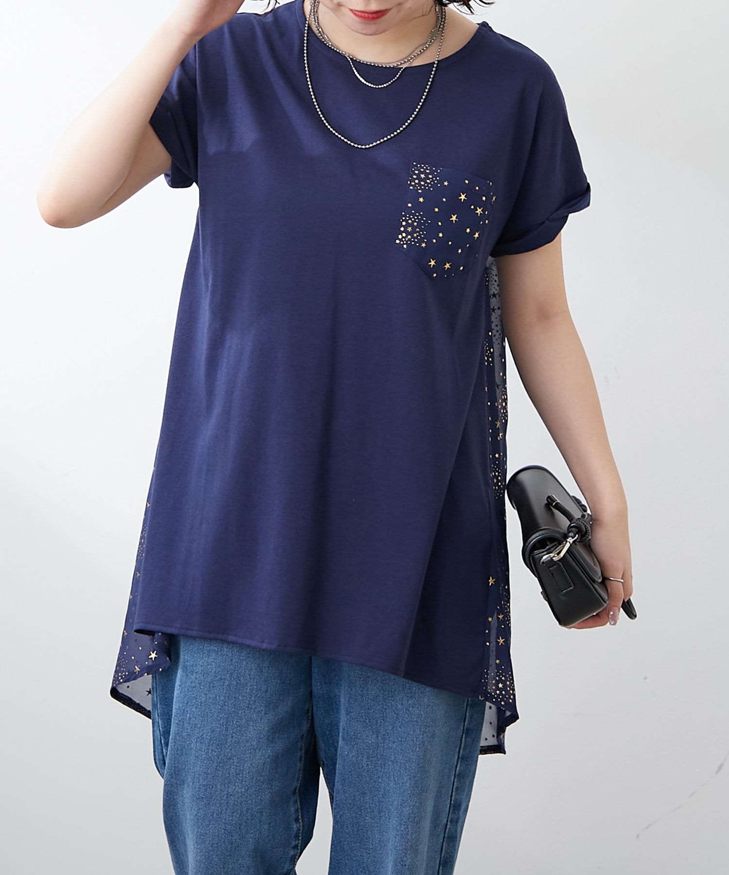 ・星柄のシアー素材の切替がポイント